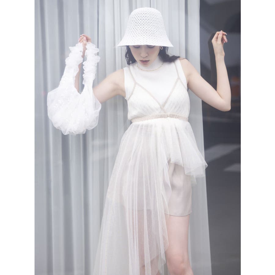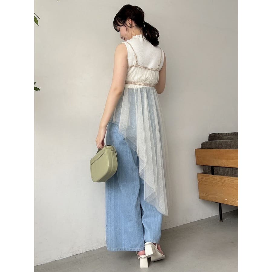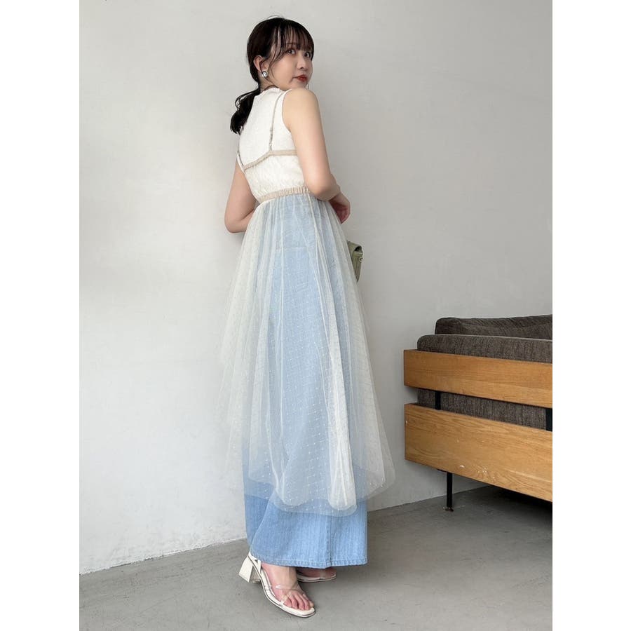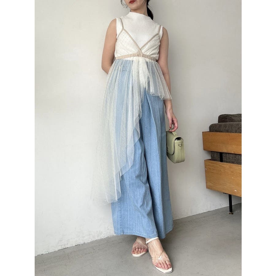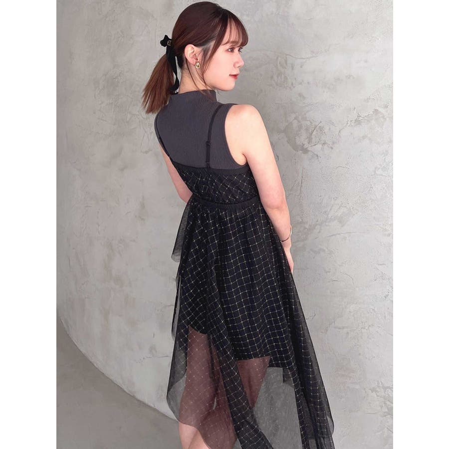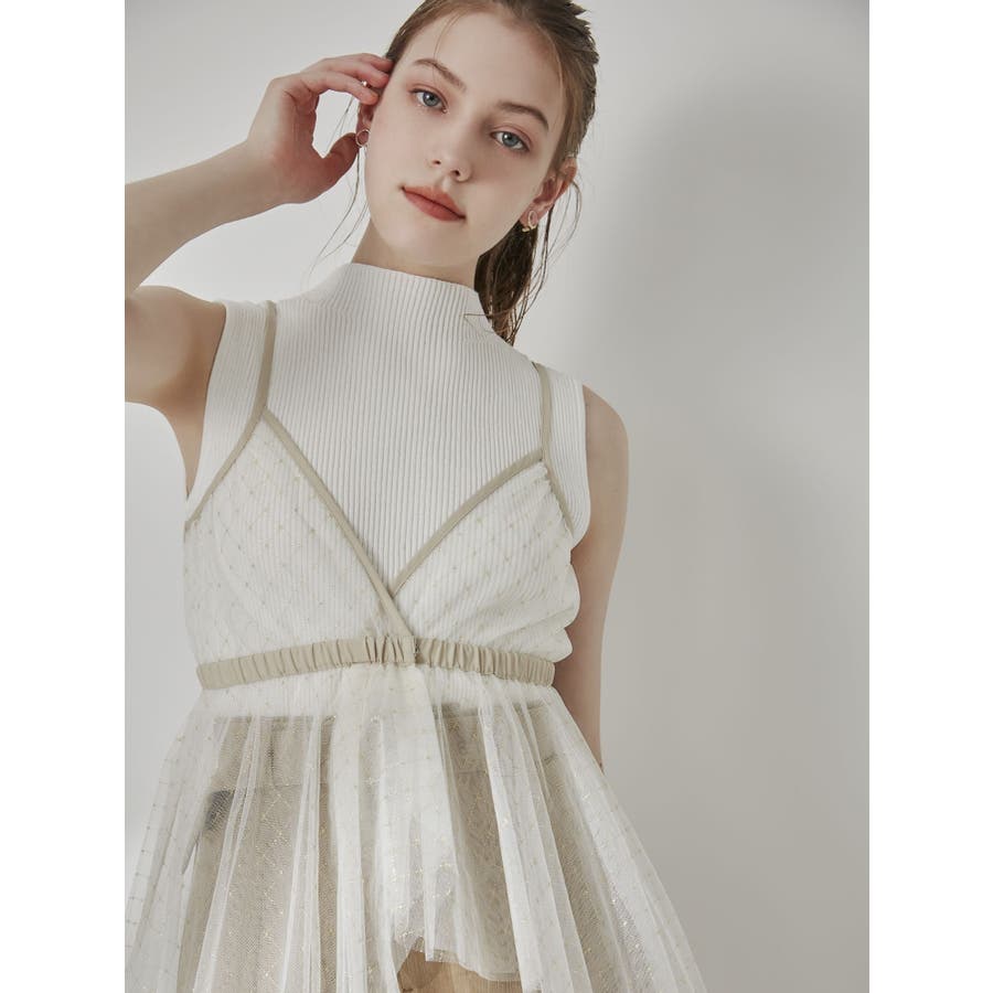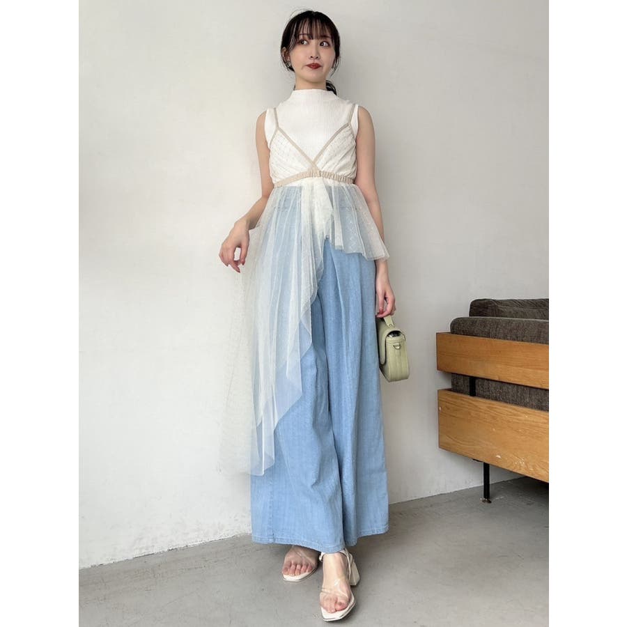 チュール刺繍アシメロングキャミ
