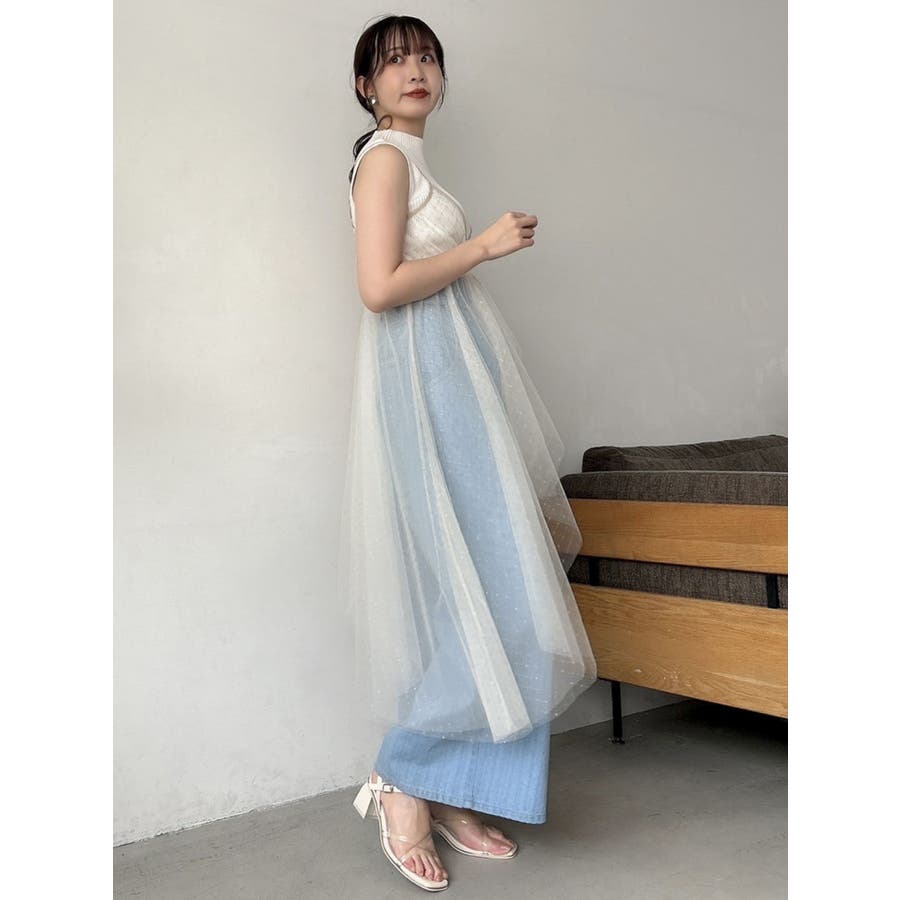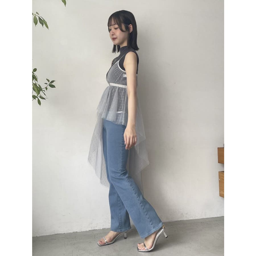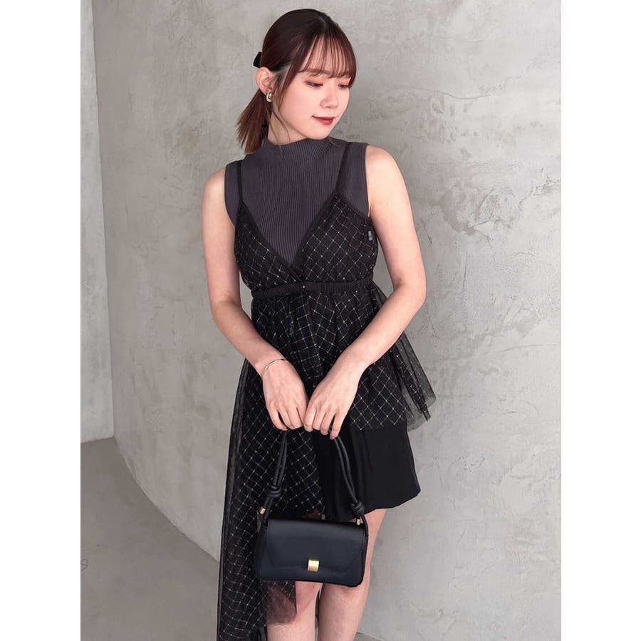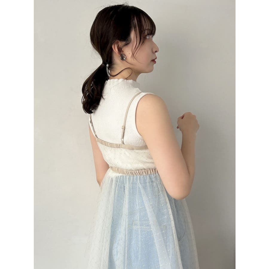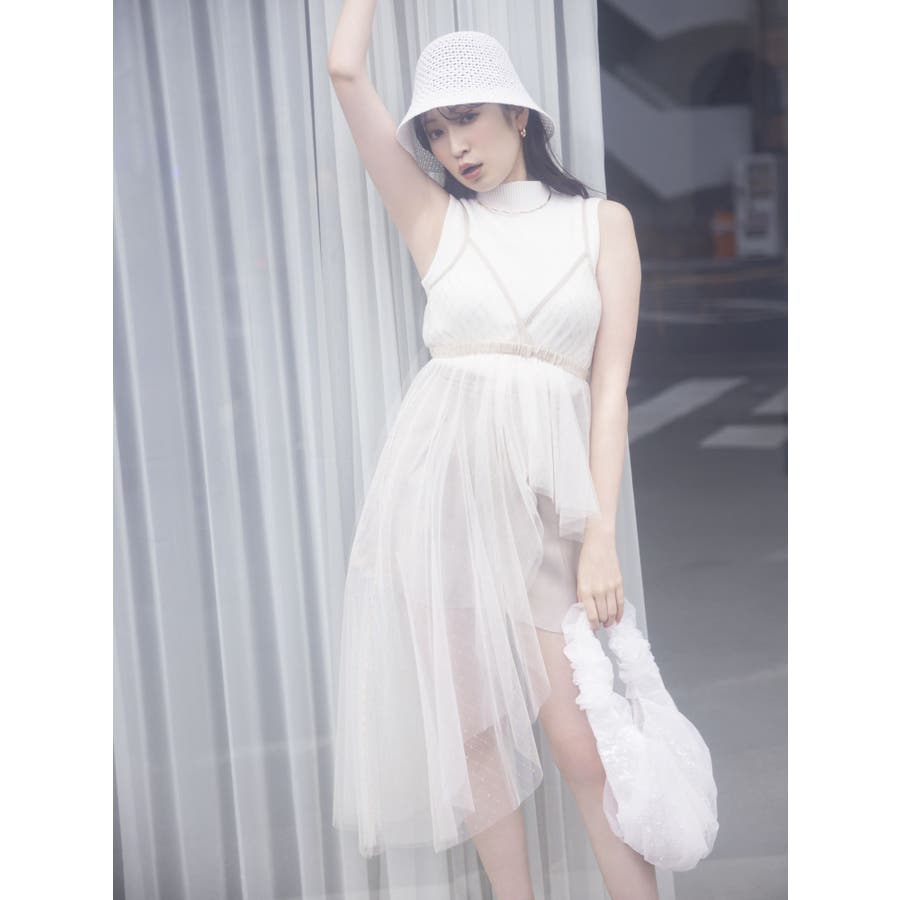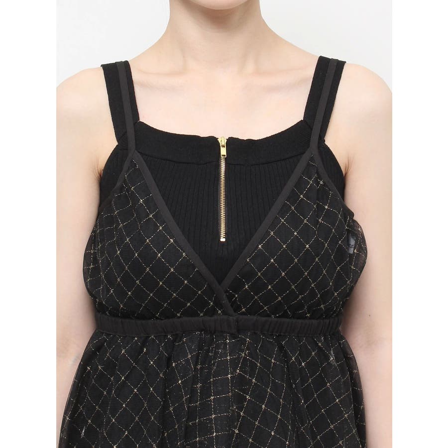 チュール刺繍アシメロングキャミ