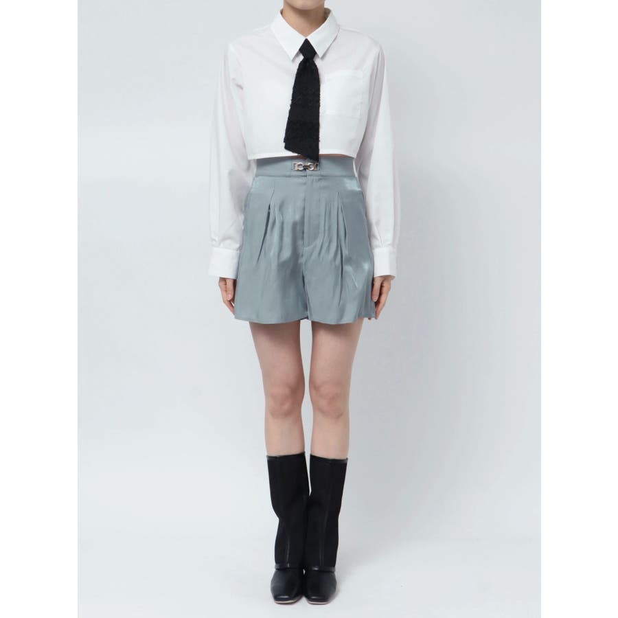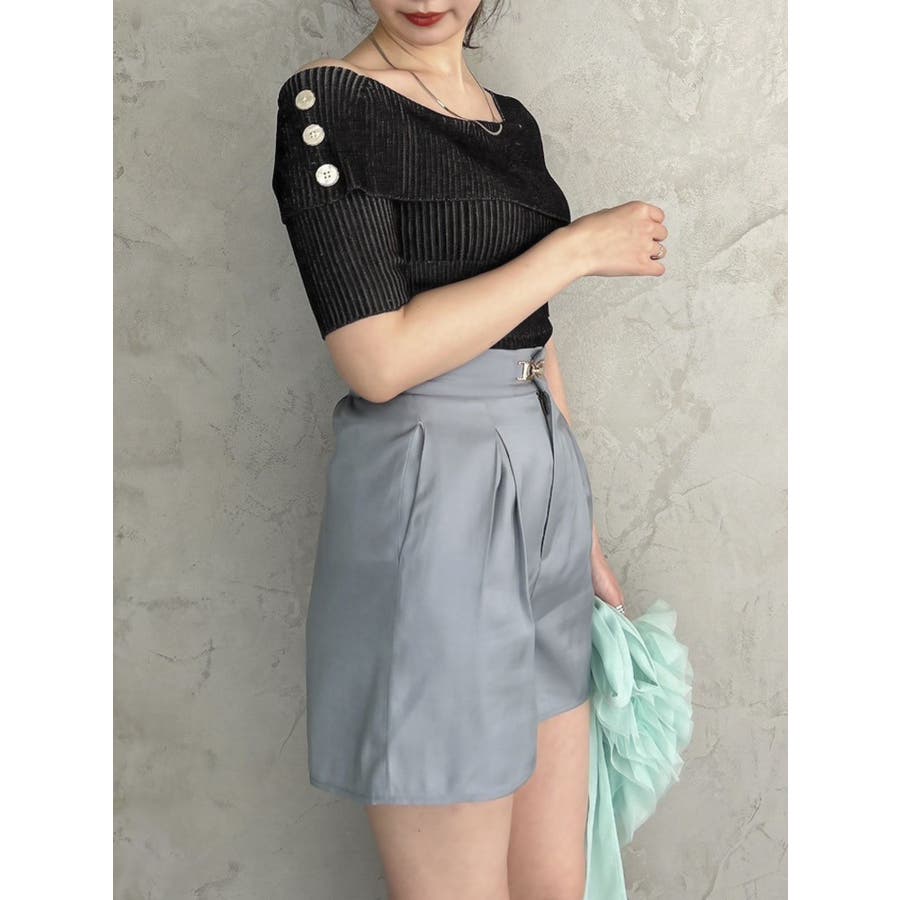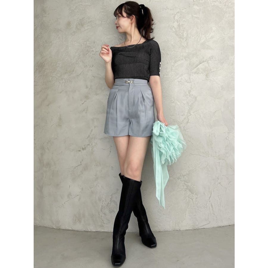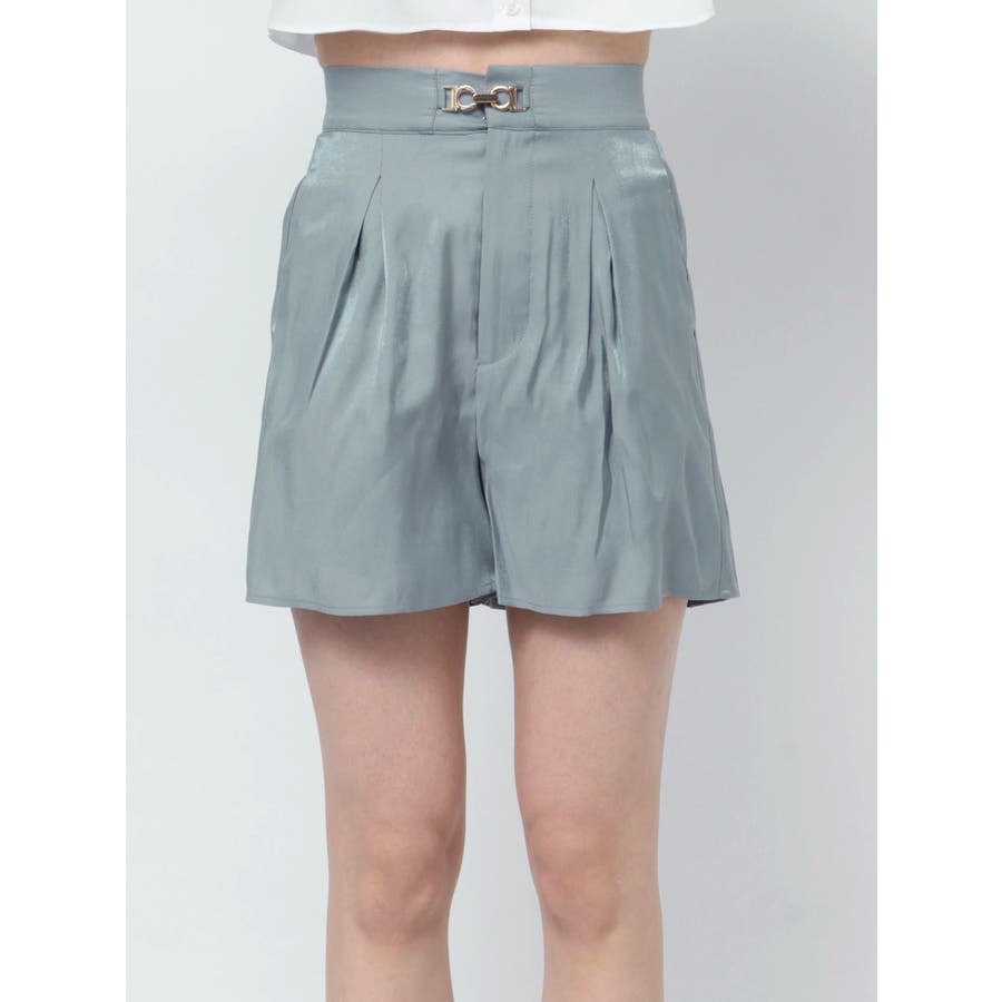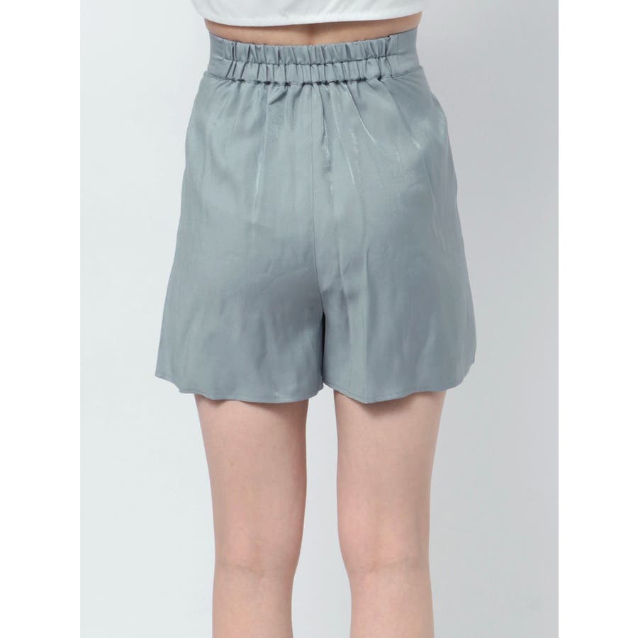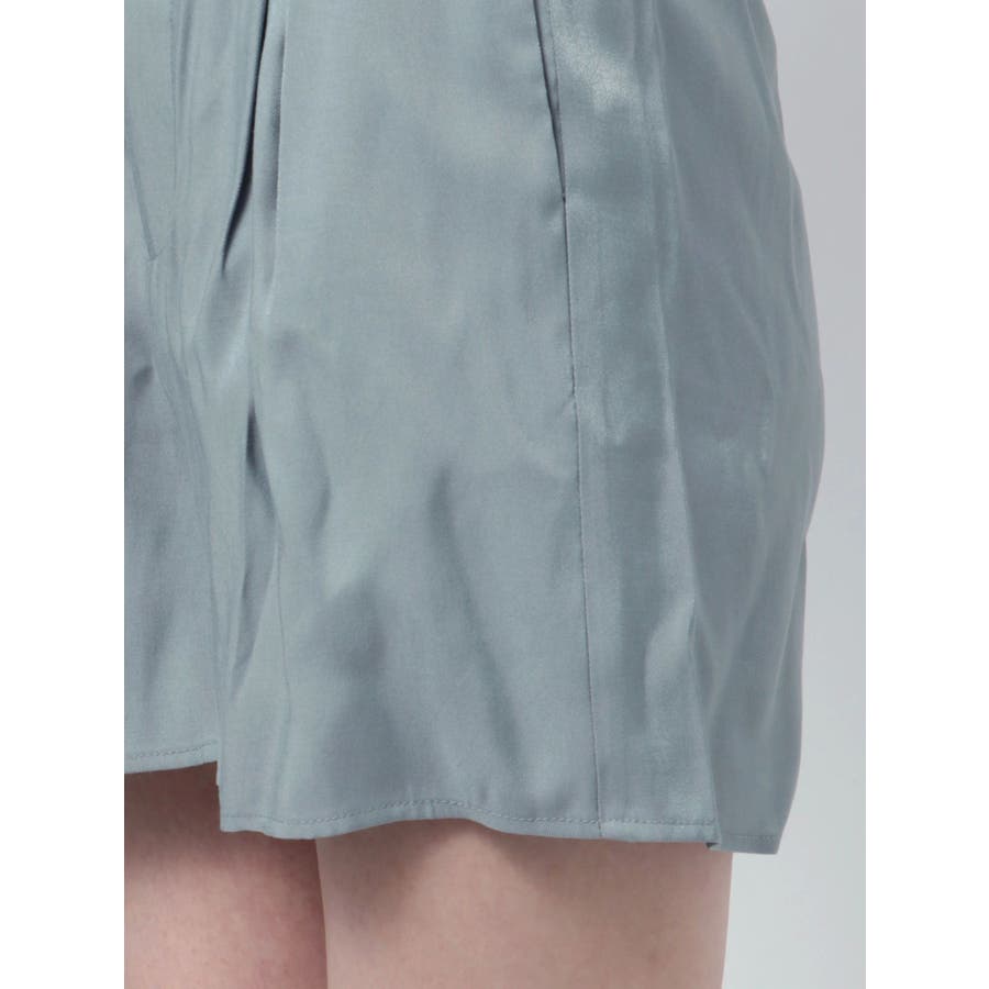 艶やかに光沢を放つ生地感が初夏らしさを生み出すショートボトム。今季トレンドでマストアイテムな存在です。裾にかけてふわっと広がりがある為、もも周りも圧迫せずスカートの様なシルエットで足細効果抜群です。【スタイリング】コーディネートが幅広く楽しめるようにビットパーツを取り入れています。INスタイルはもちろんですが、チュニック類とのOUTスタイルも楽しめるのでマルチに活躍します。