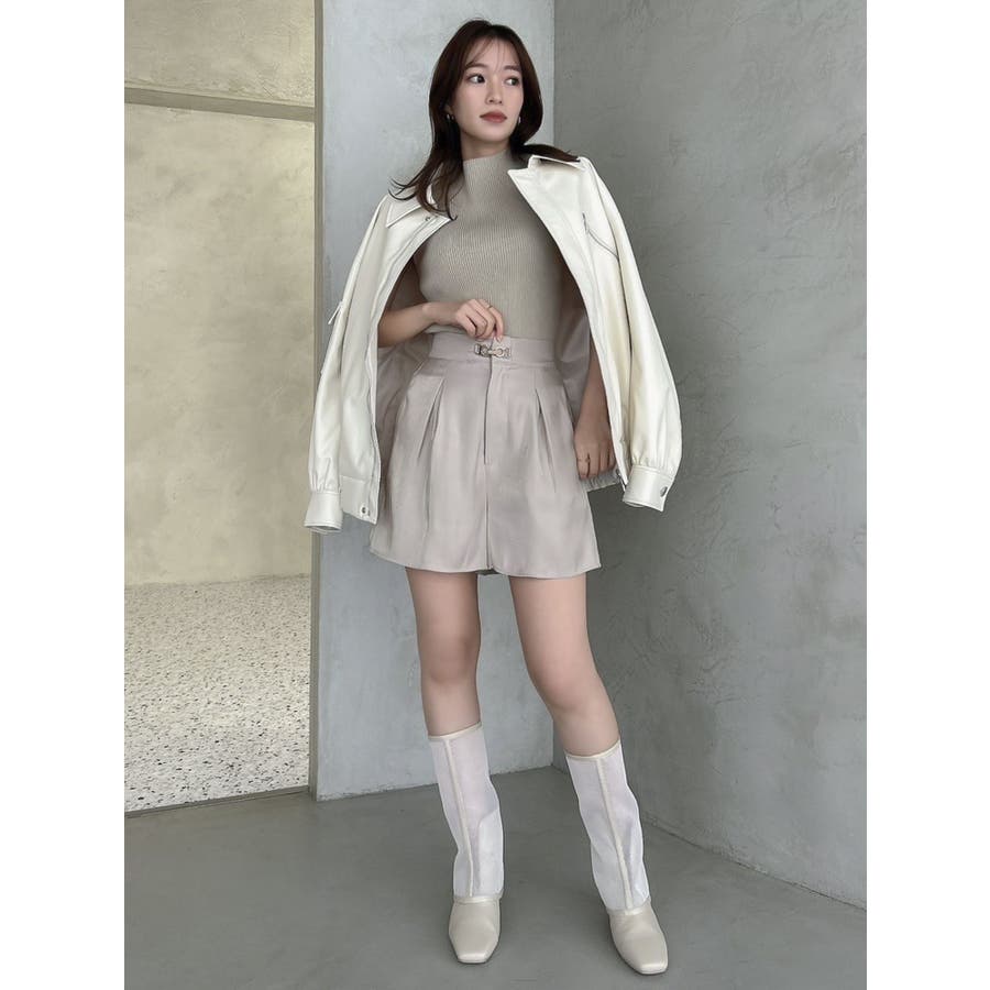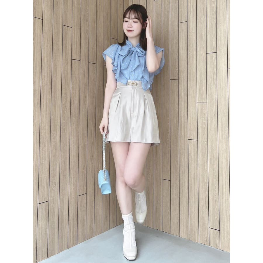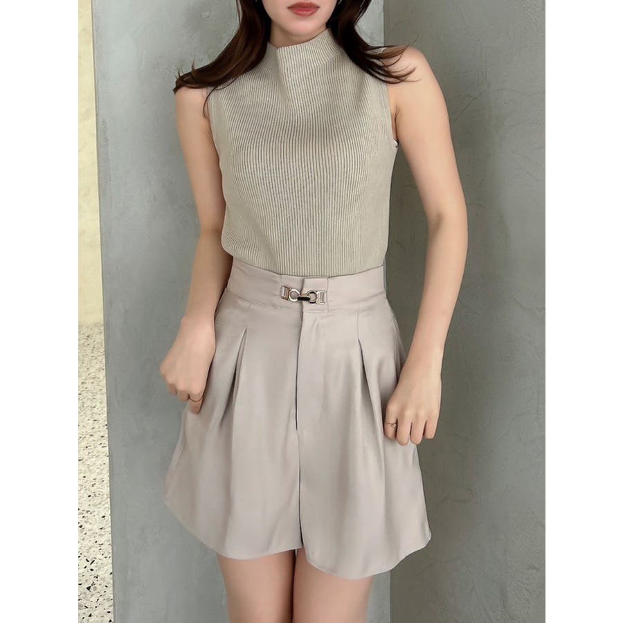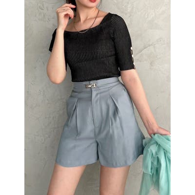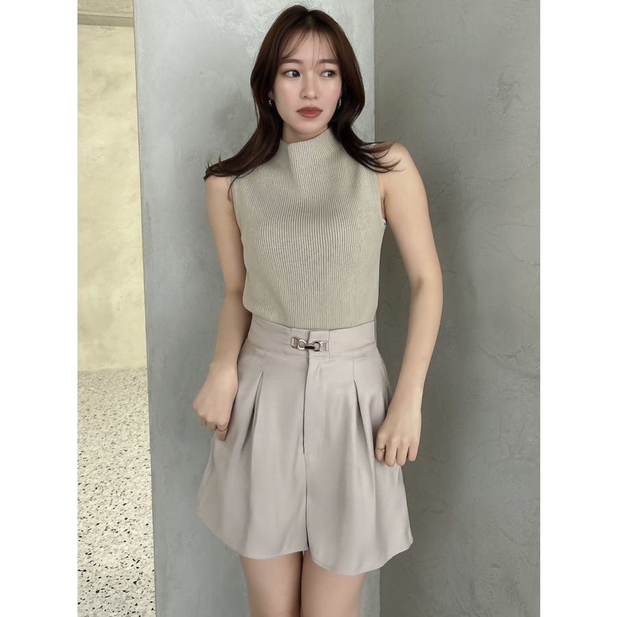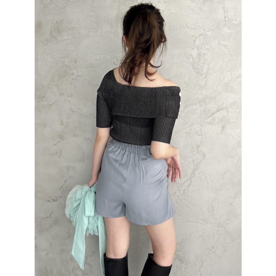艶やかに光沢を放つ生地感が初夏らしさを生み出すショートボトム。今季トレンドでマストアイテムな存在です。裾にかけてふわっと広がりがある為、もも周りも圧迫せずスカートの様なシルエットで足細効果抜群です。【スタイリング】コーディネートが幅広く楽しめるようにビットパーツを取り入れています。INスタイルはもちろんですが、チュニック類とのOUTスタイルも楽しめるのでマルチに活躍します。