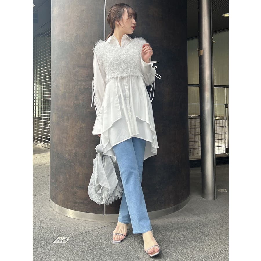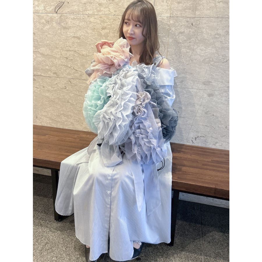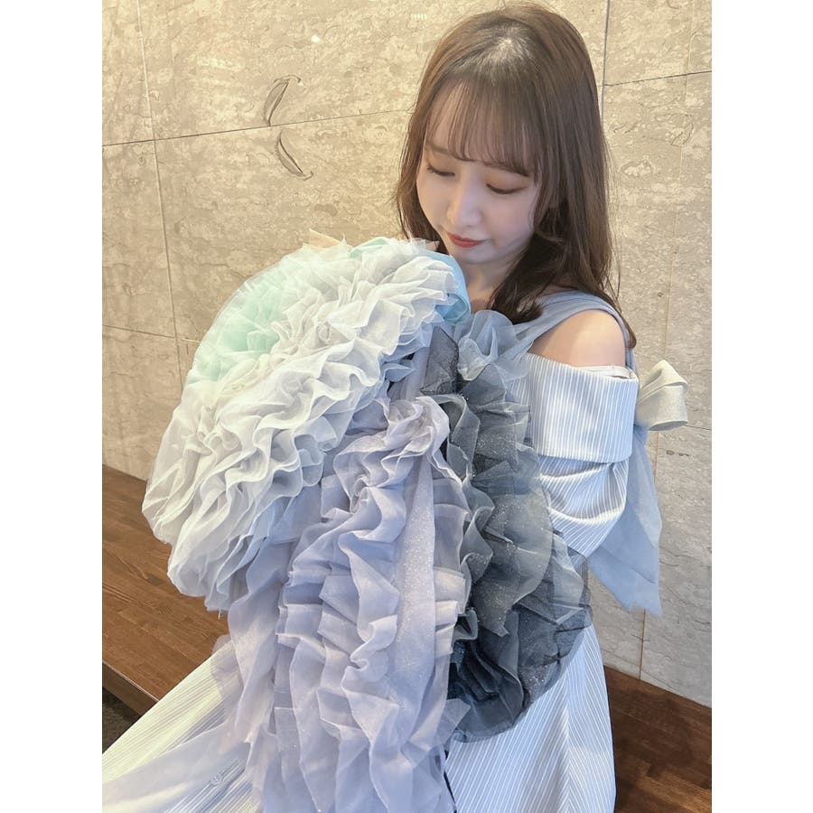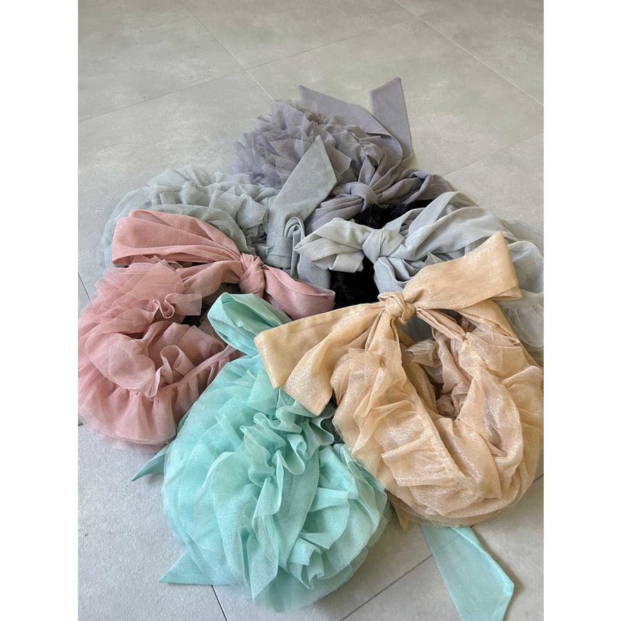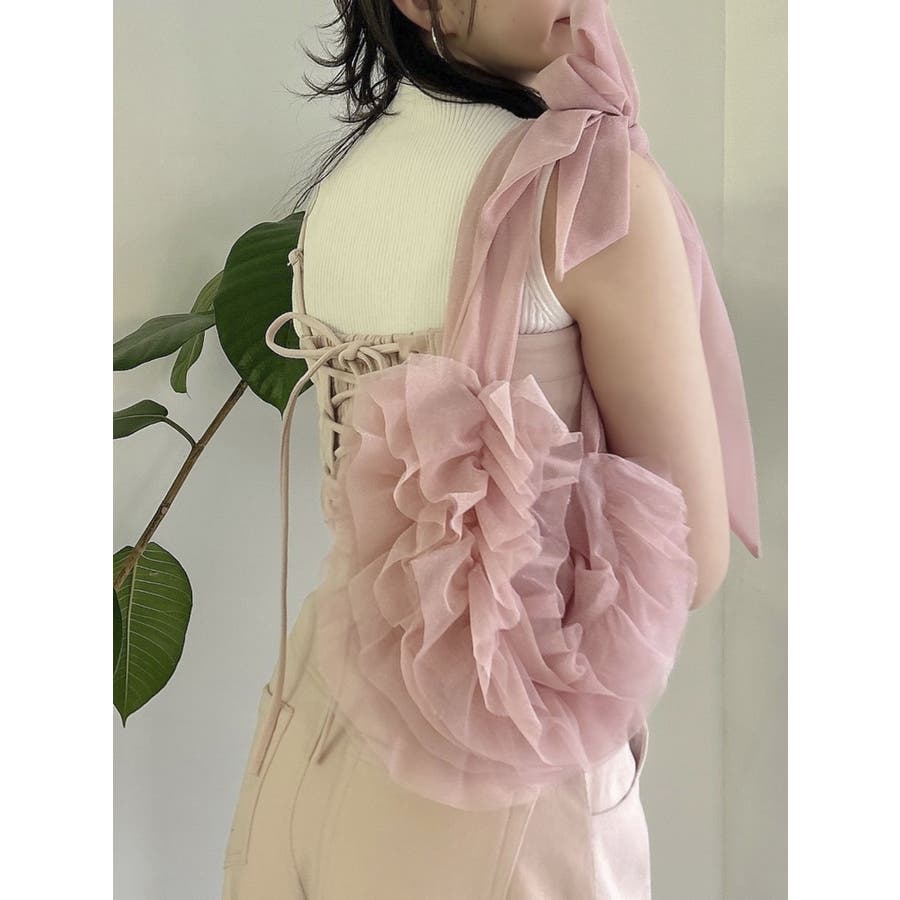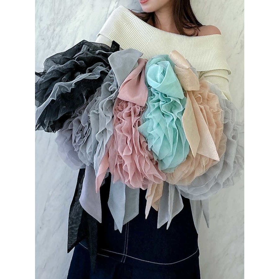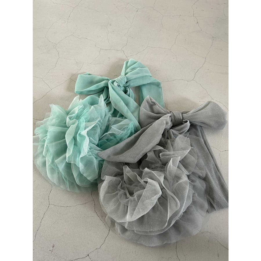 バックなので紐探すけど笑笑、めちゃくちゃ可愛いです。ミックスなので落ち着いていると思います。今年はレースチュールっていう気分なので飽きるまで使いたいと思います。