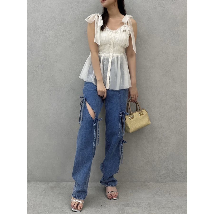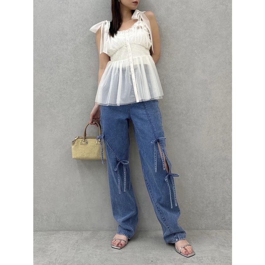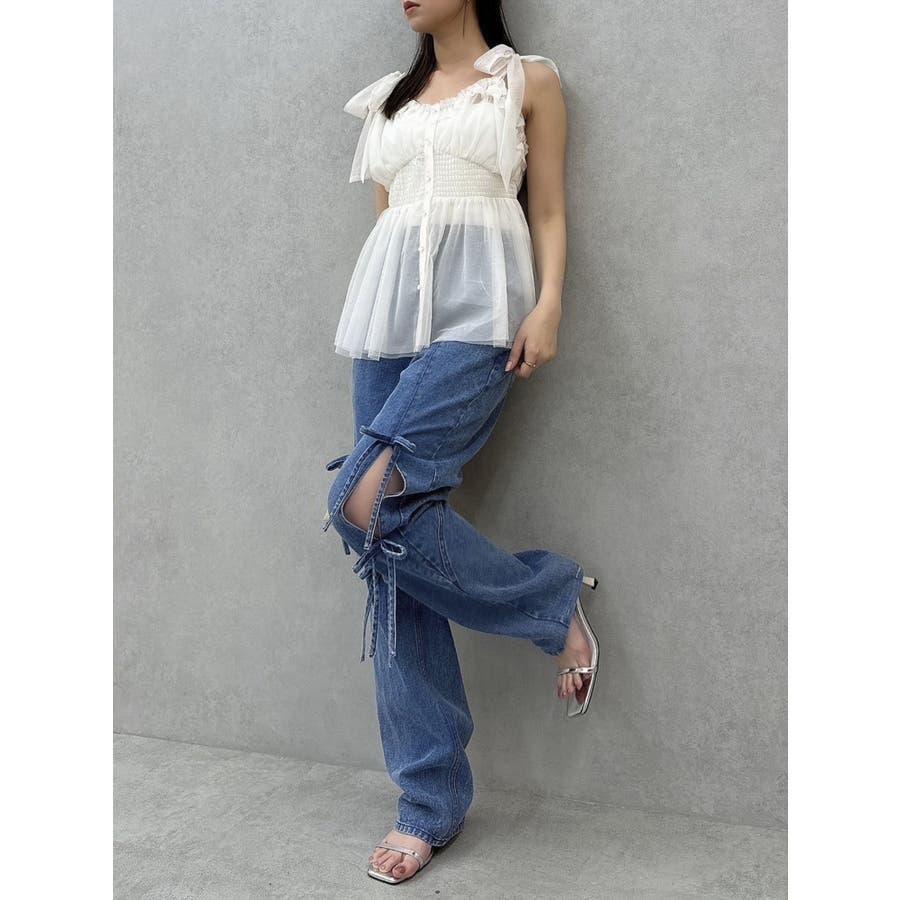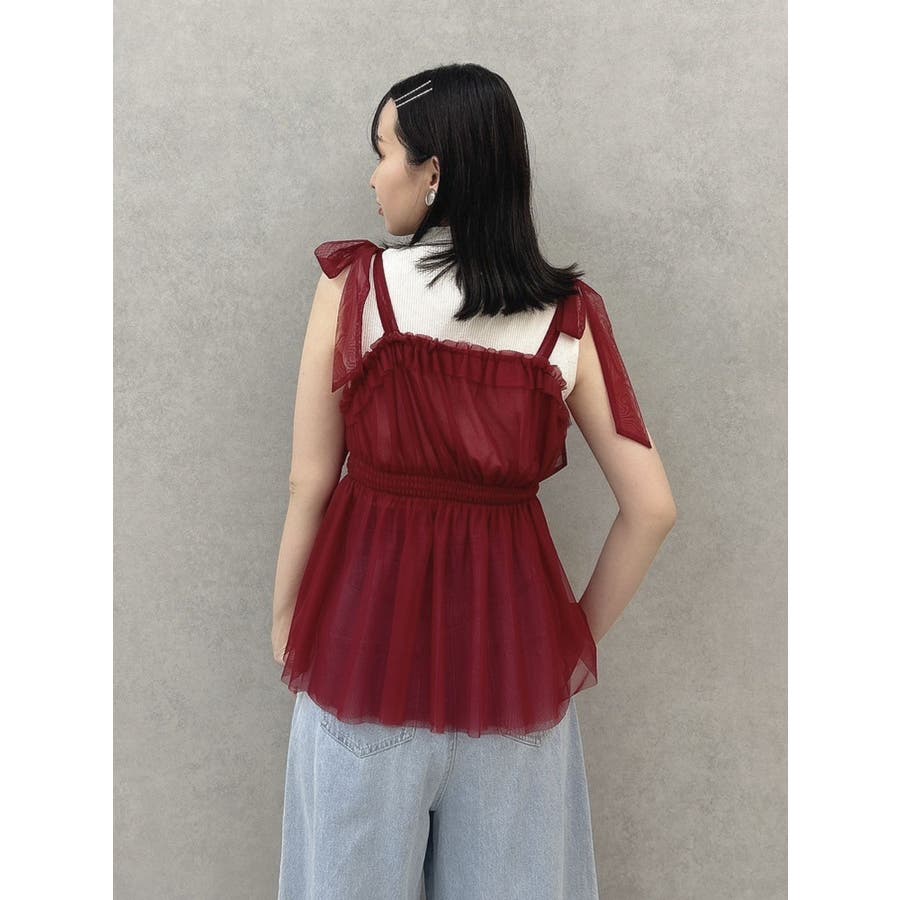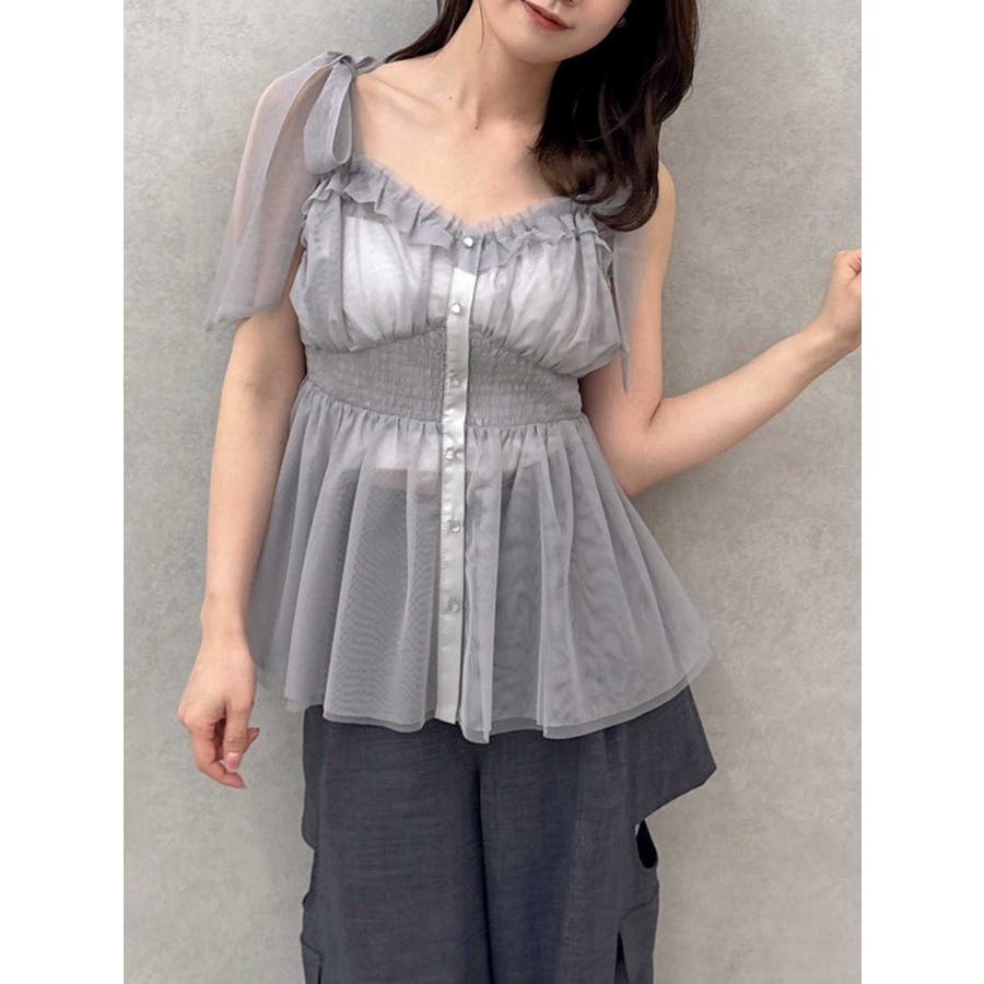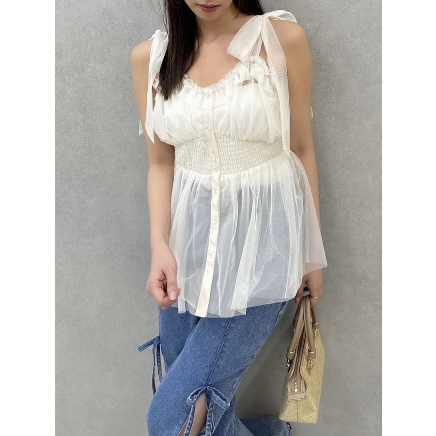 ショルダーリボンチュールペプラムビスチェ