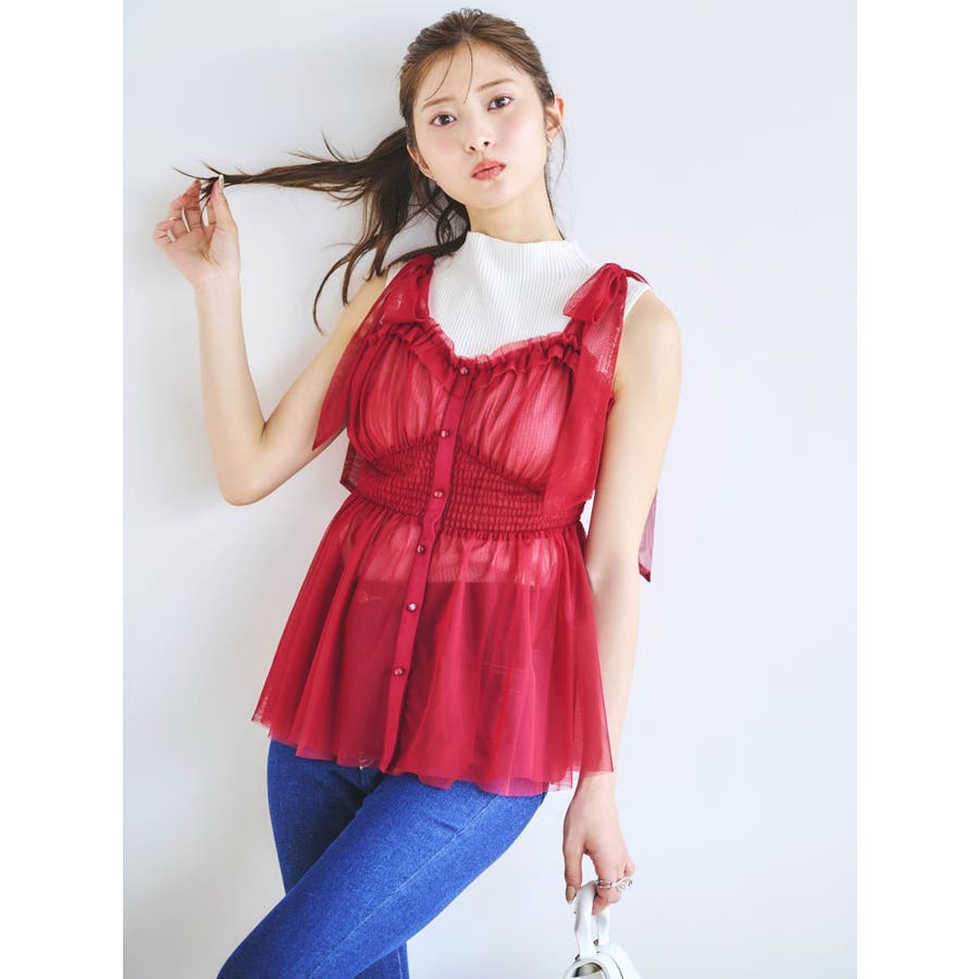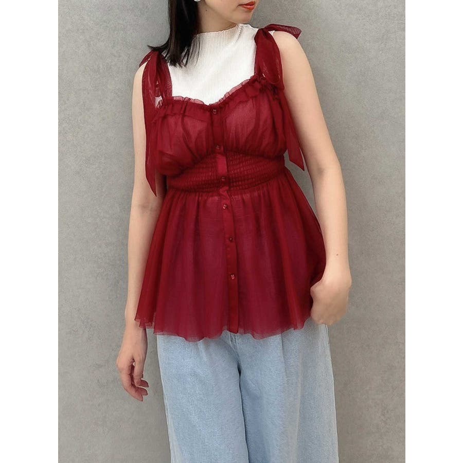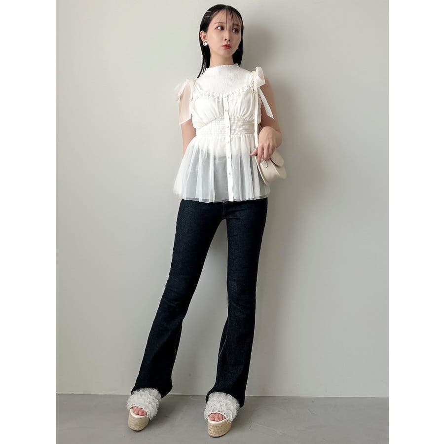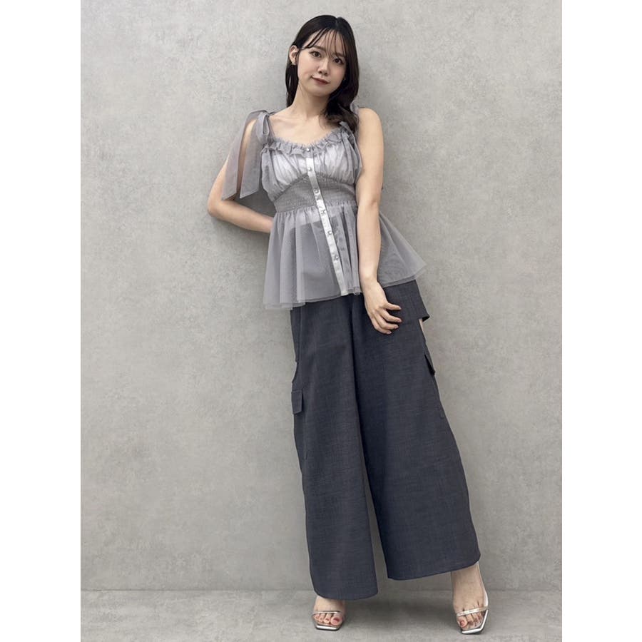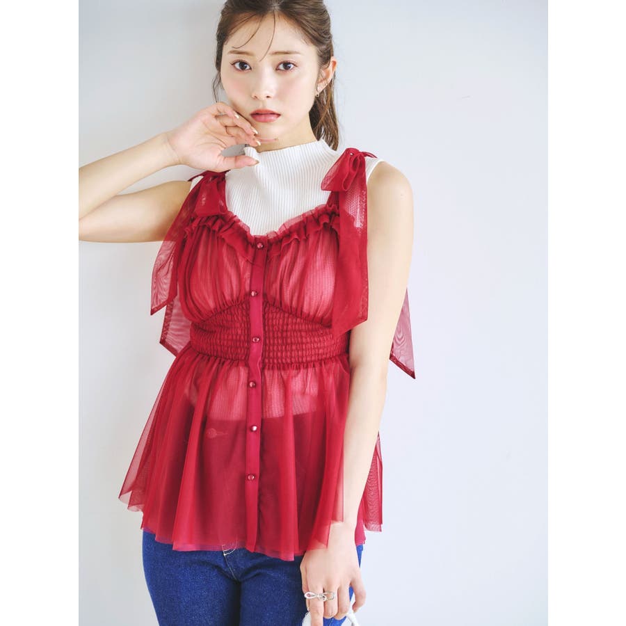 ショルダーリボンチュールペプラムビスチェ