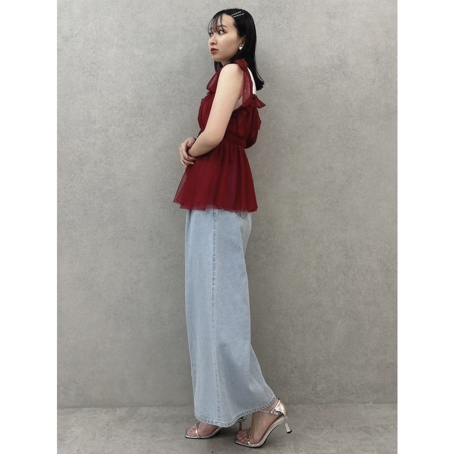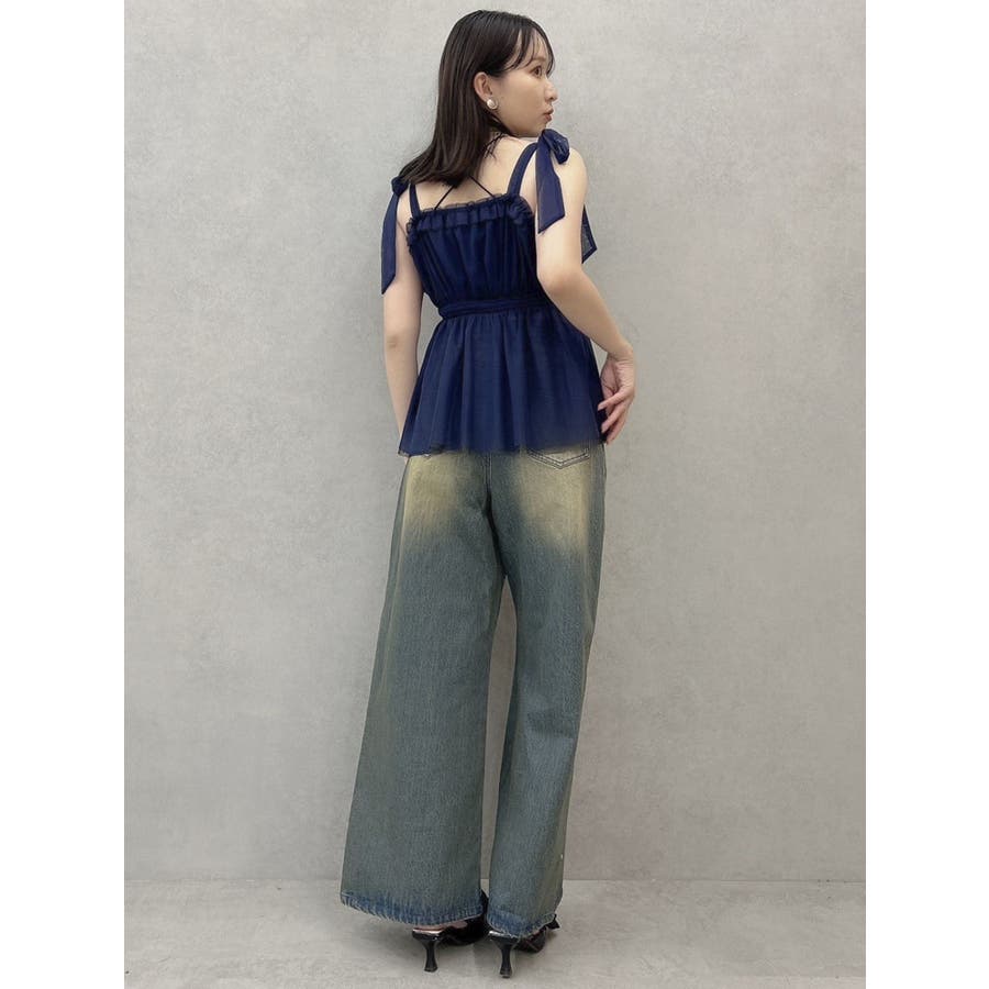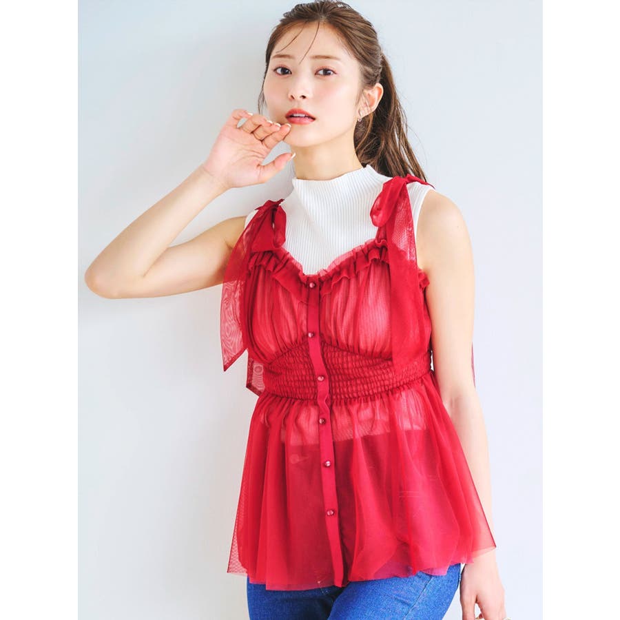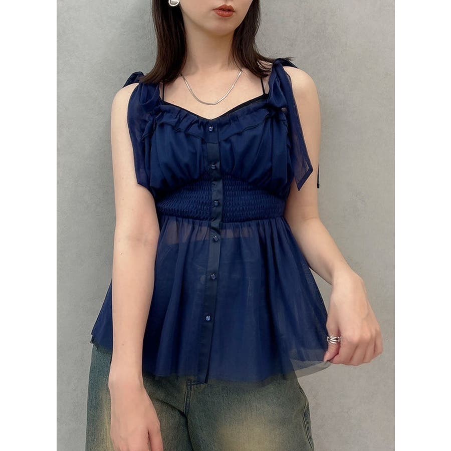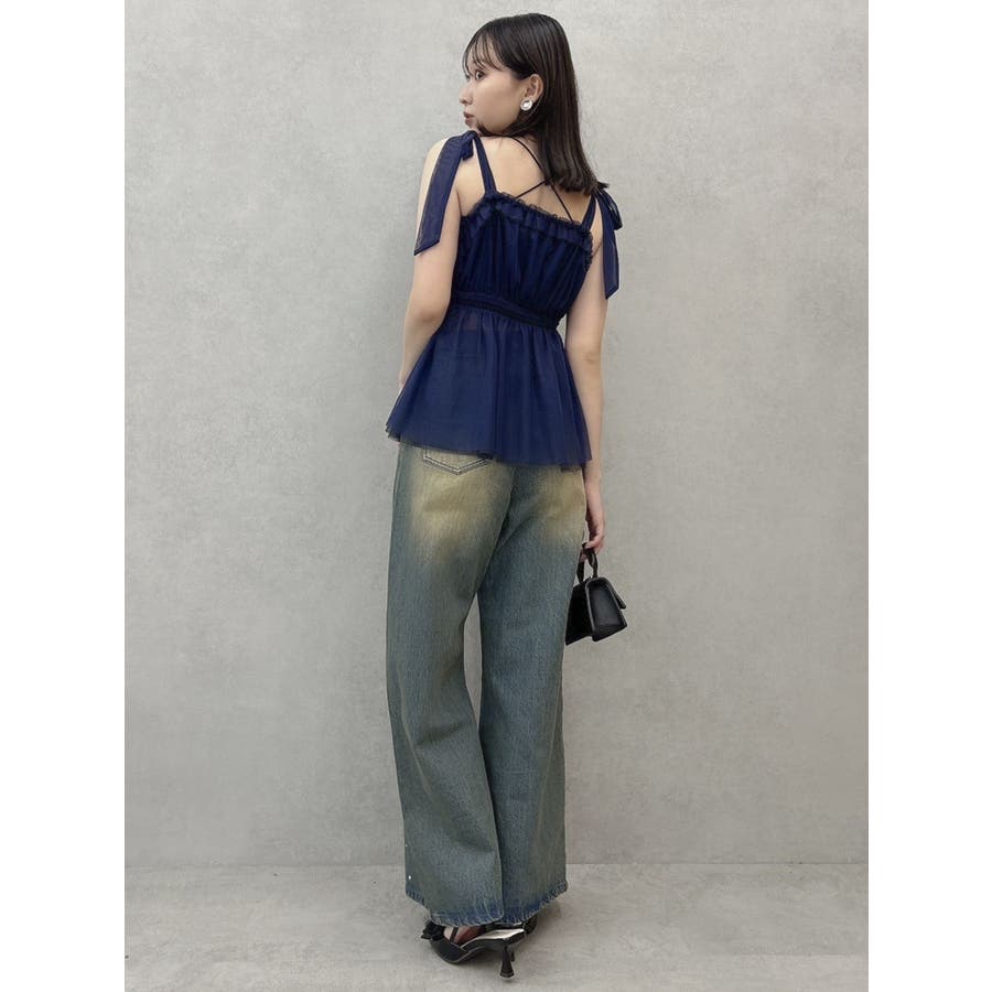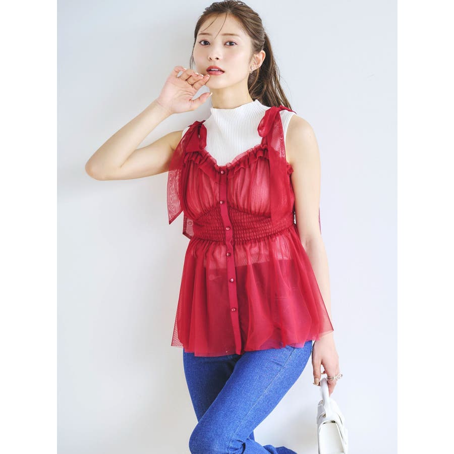 ショルダーリボンチュールペプラムビスチェ