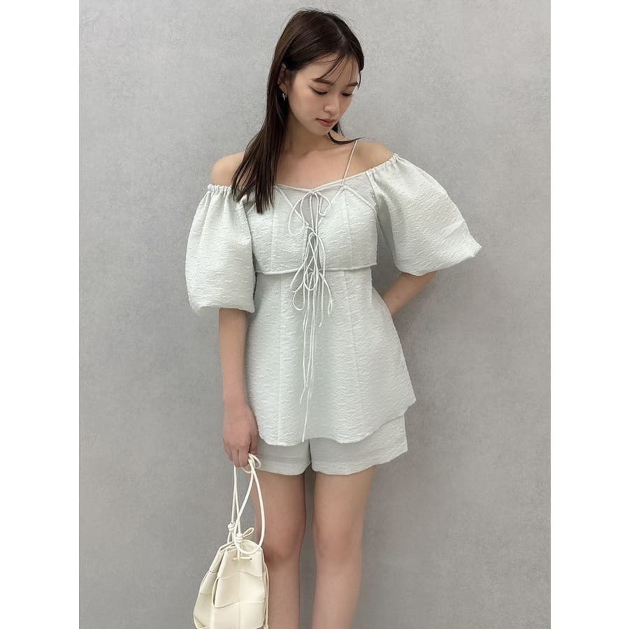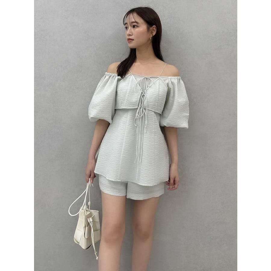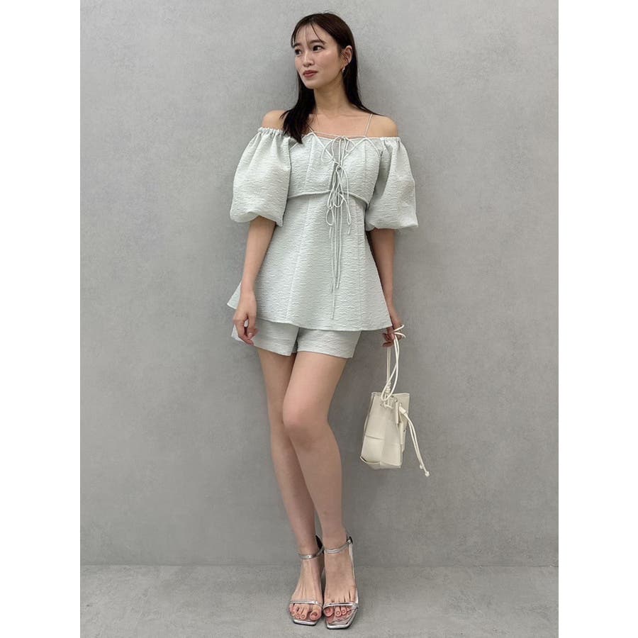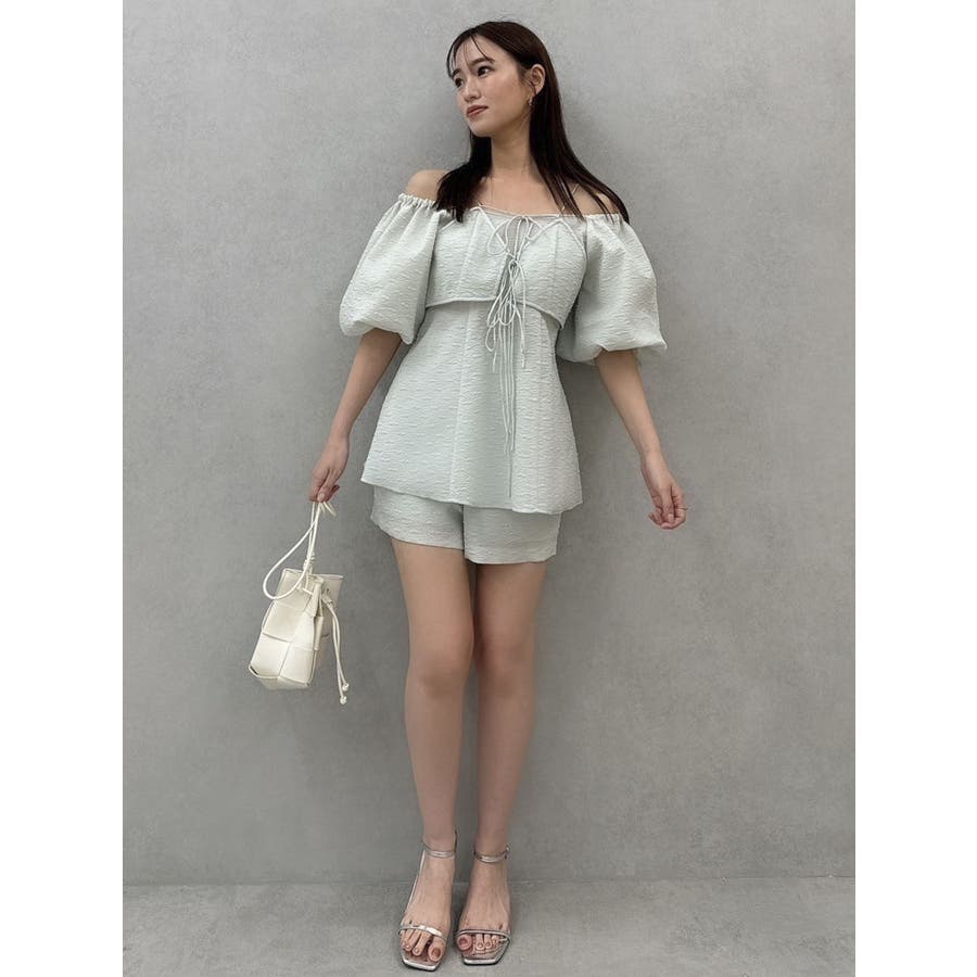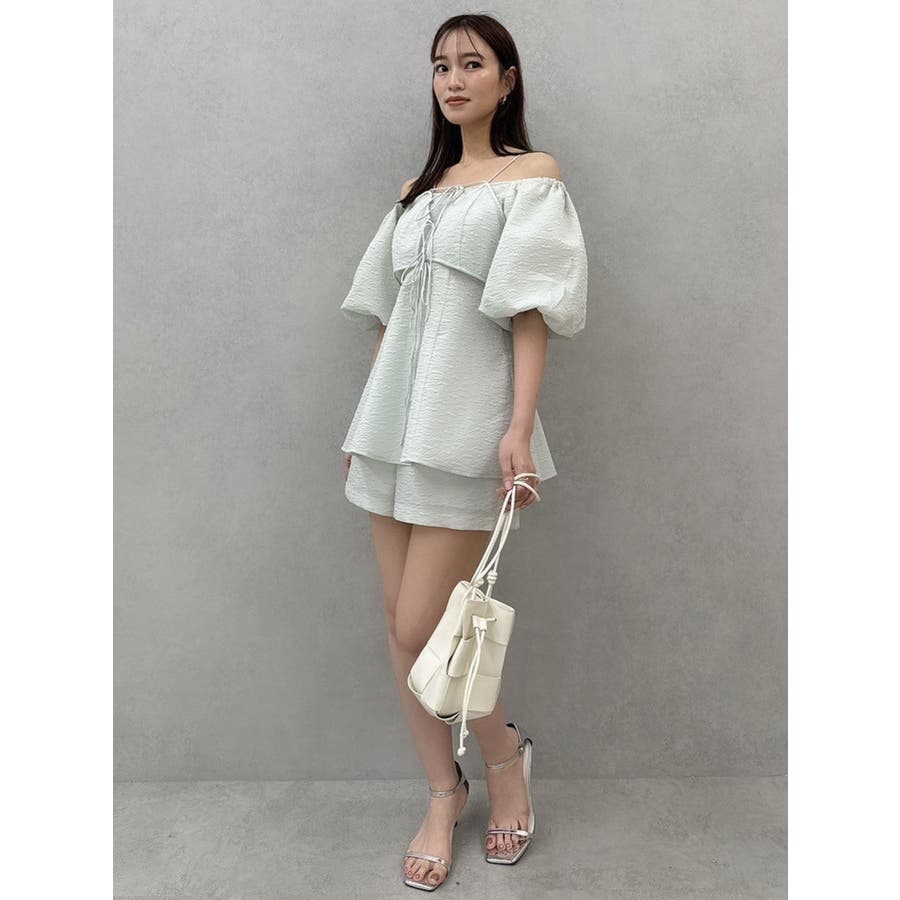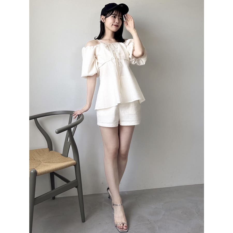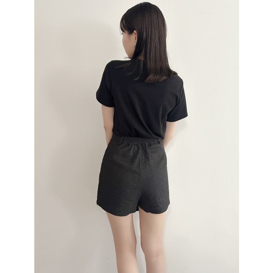 今期らしいシアージャガード素材を使用したコンパクトショートパンツ。ミニマムシルエットの中にも、ウエストのタックや裾幅にはやや広がりを持たせることで、ウエストはすっきりと、太ももを細く見せてくれる効果も期待できます。【スタイリング】同素材のペプラムブラウスと合わせた今期らしいセットアップコーデや、Tシャツを合わせてカジュアルにコーディネートするのがおすすめです。