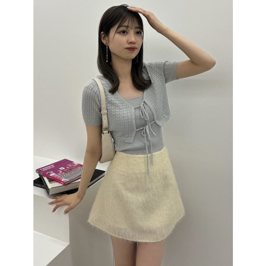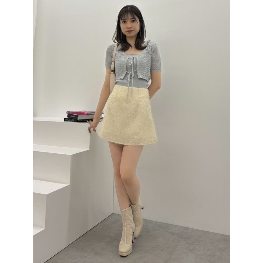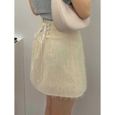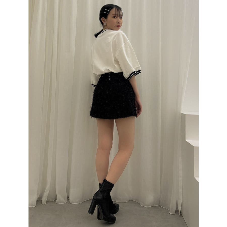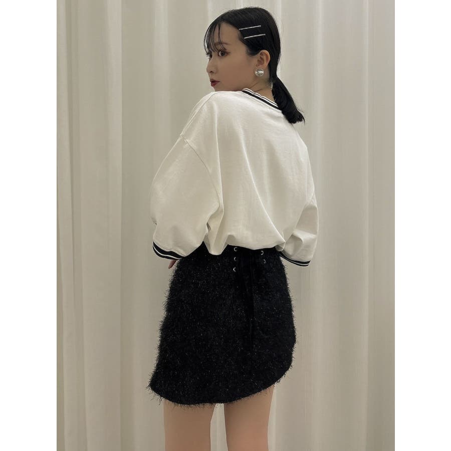 今年らしいラメシャギー素材を使用し、きらきらと揺れ動く輝きが女性らしいフェアリーな雰囲気を演出。バックはレースアップ仕様になっており、サイズ対応と共にINスタイリングも華やかに。【スタイリング】ハイゲージニットと合わせてミニマルなスタイリングに、足元にはシアーソックス×パンプスを添えて。オーバーサイズなスウェットやフーディと合わせて裾から覗かせるスタイルもおすすめです。