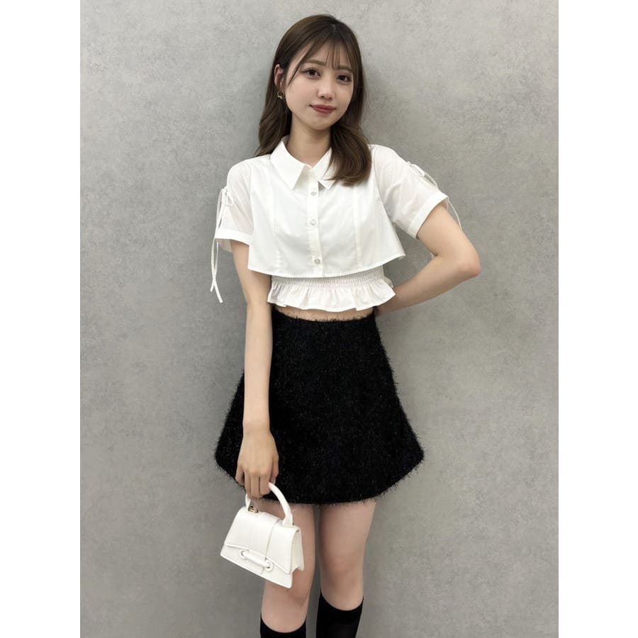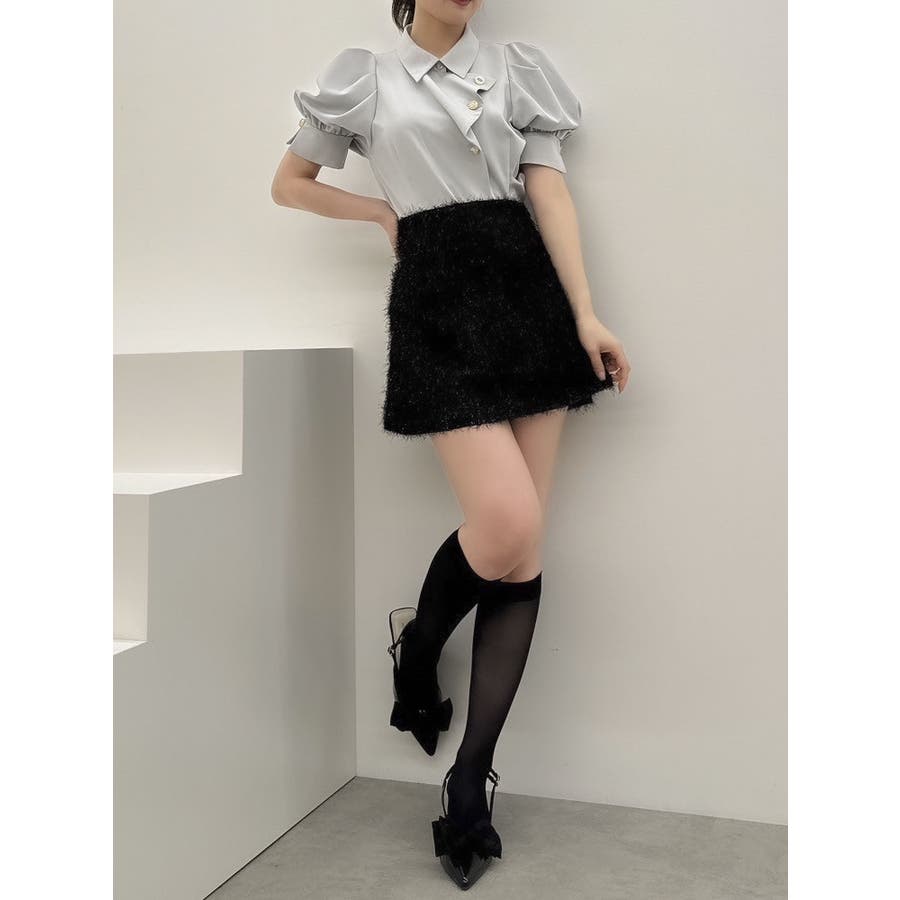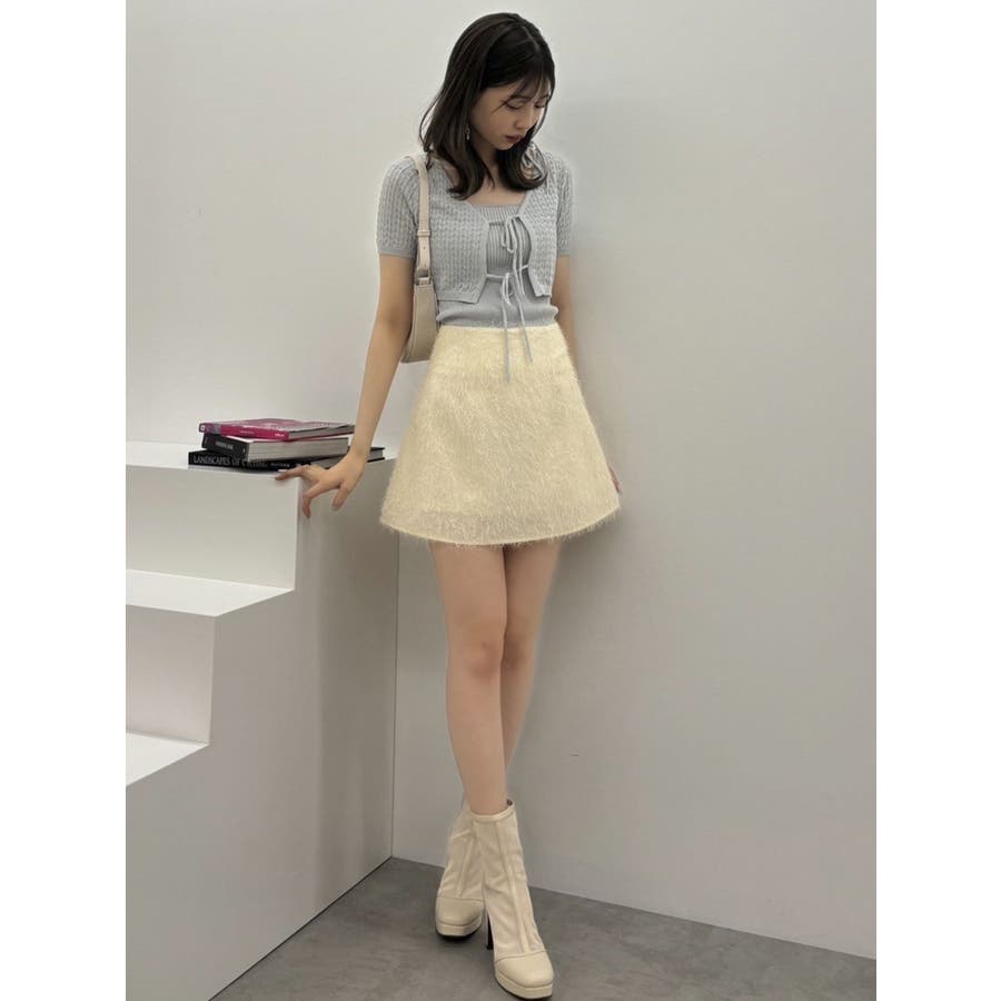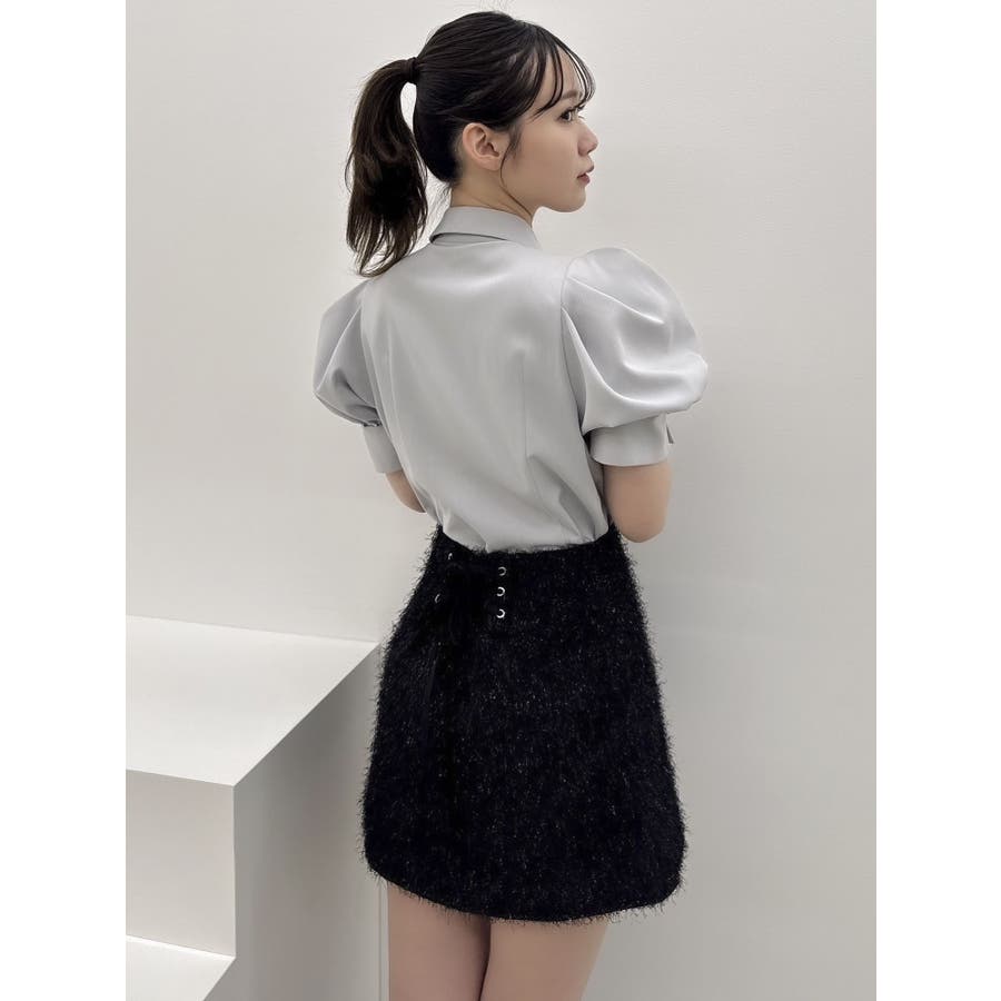 今年らしいラメシャギー素材を使用し、きらきらと揺れ動く輝きが女性らしいフェアリーな雰囲気を演出。バックはレースアップ仕様になっており、サイズ対応と共にINスタイリングも華やかに。【スタイリング】ハイゲージニットと合わせてミニマルなスタイリングに、足元にはシアーソックス×パンプスを添えて。オーバーサイズなスウェットやフーディと合わせて裾から覗かせるスタイルもおすすめです。