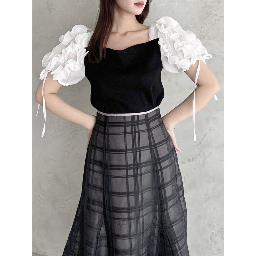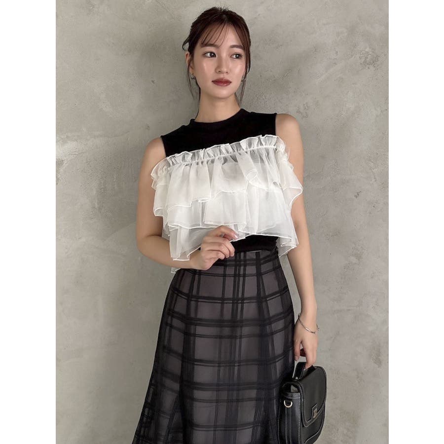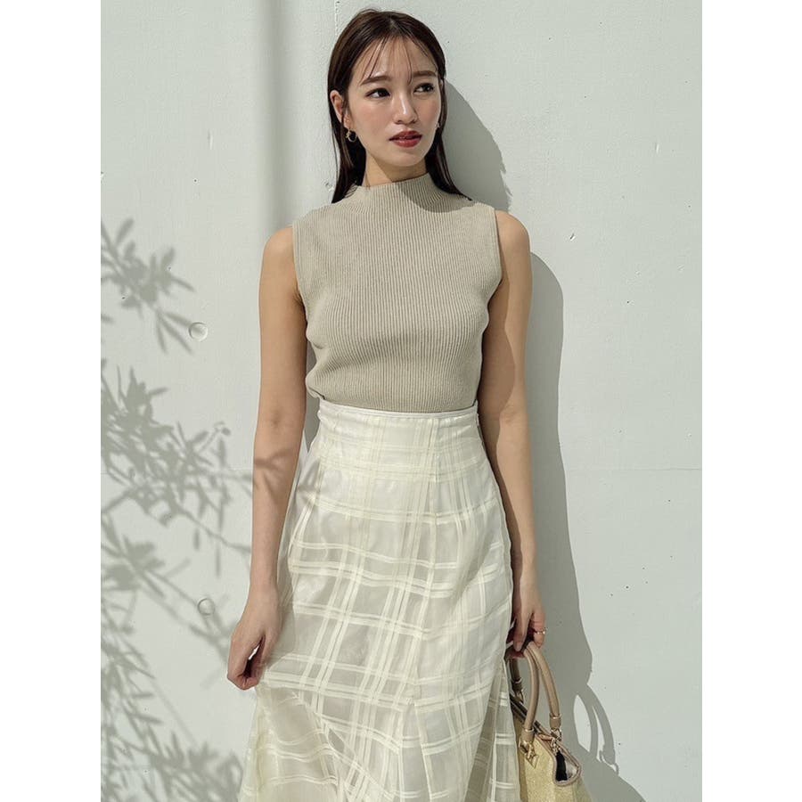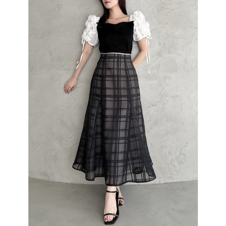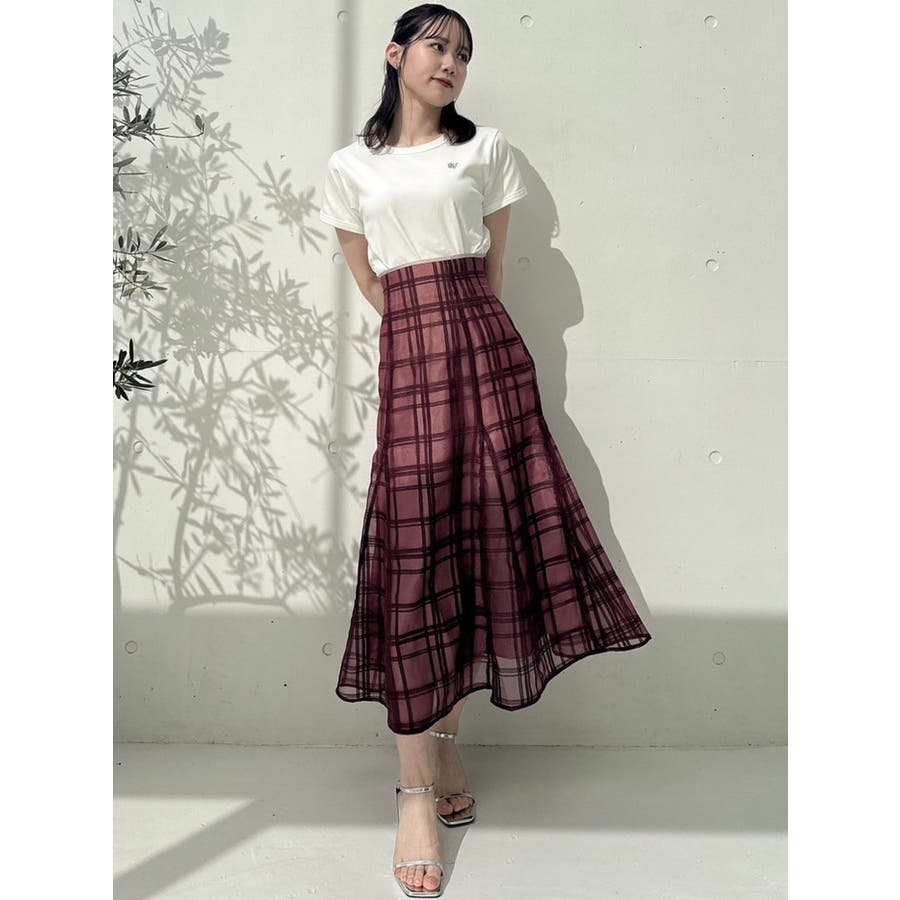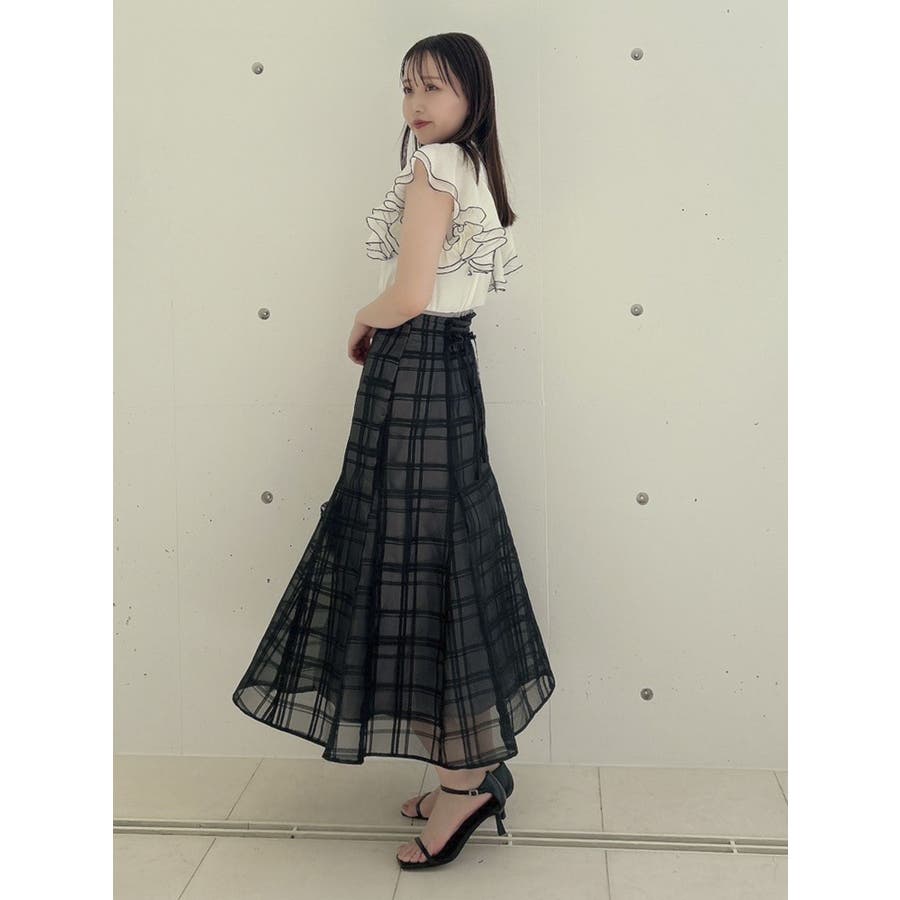 大胆なシアーチェック柄が印象的で存在感を発揮するスカート。計算尽くしたこだわりの切り替えラインでスタイルアップが叶います。厚手のニットやアウターを合わせても程よい透け感で重くなりづらく、コーデを軽やかに彩ります。【スタイリング】きれいめなハイゲージニットやミニシャギー系ニットと合わせたエレガントなスタイリングがおすすめ。足元はブーツやパンプスを合わせて上品な合わせがかわいいです。