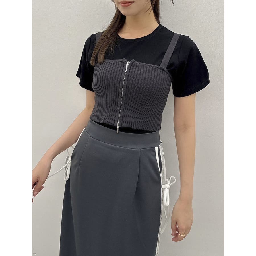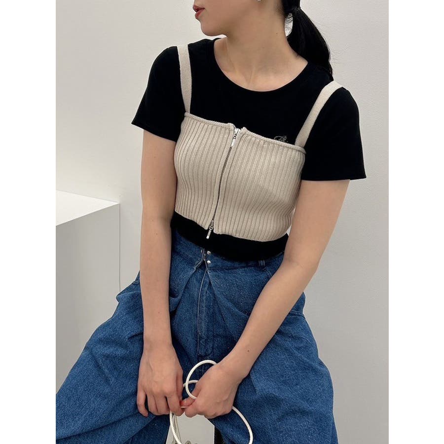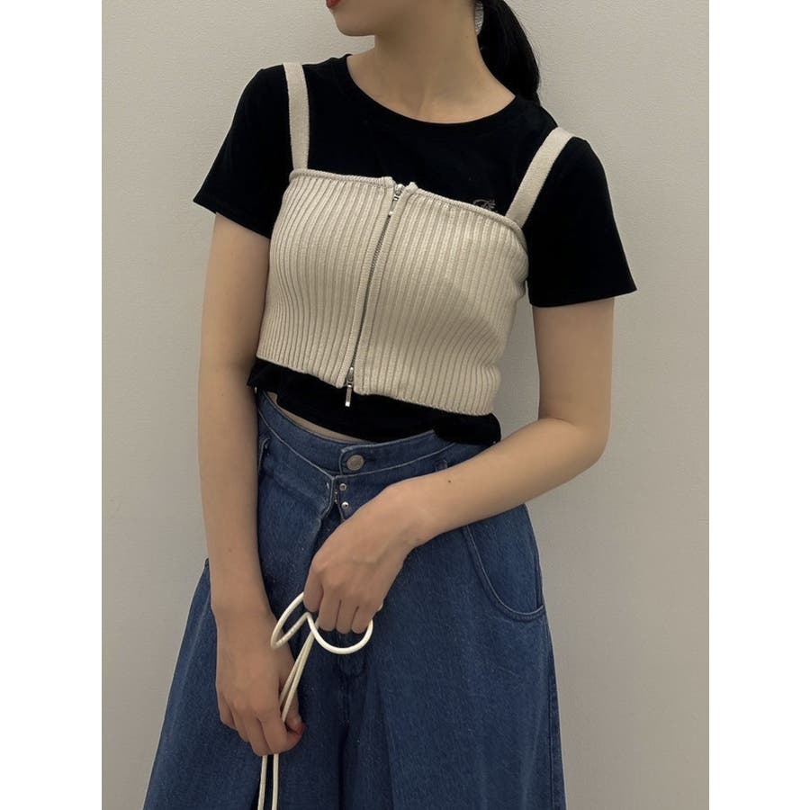 ダブルジップリブニットビスチェ