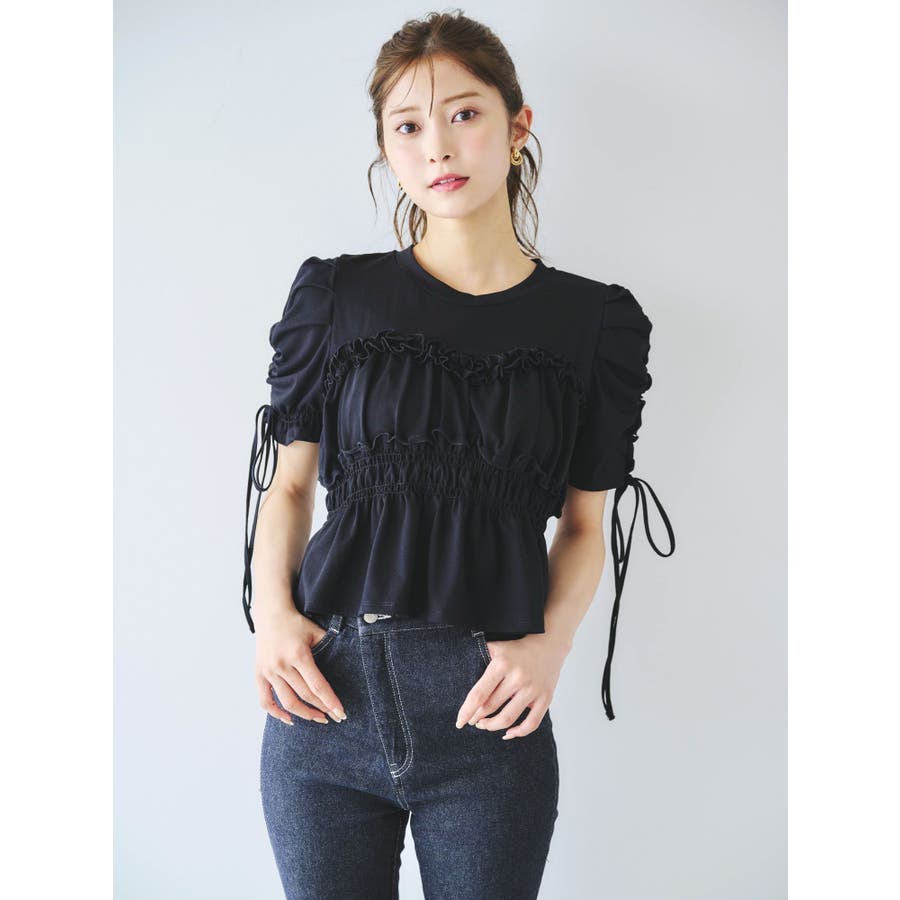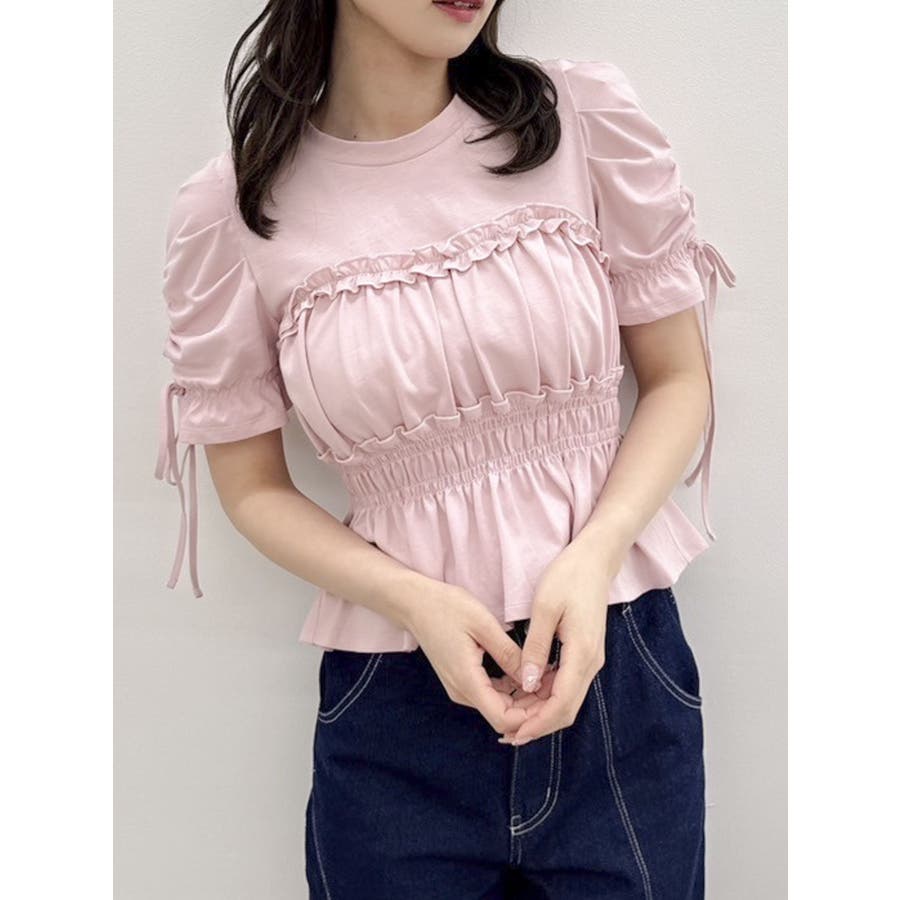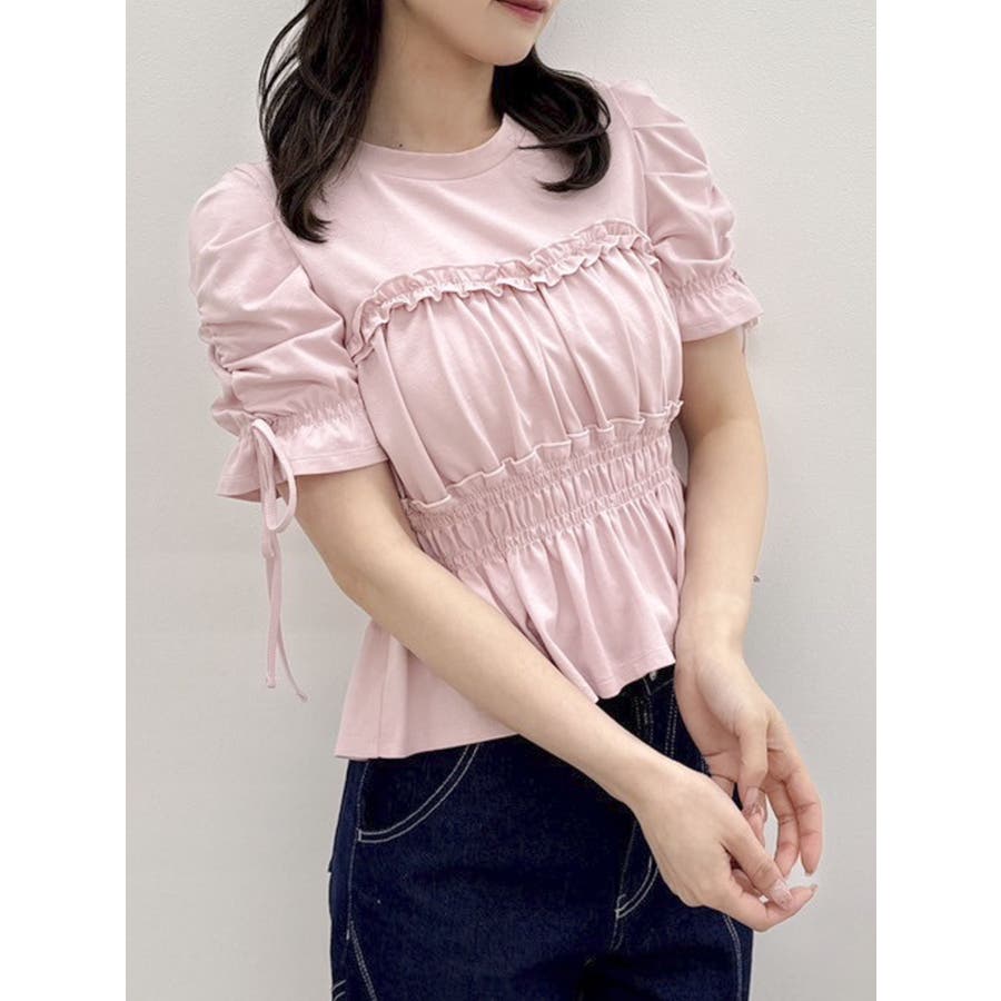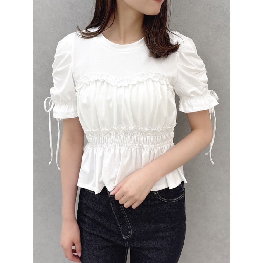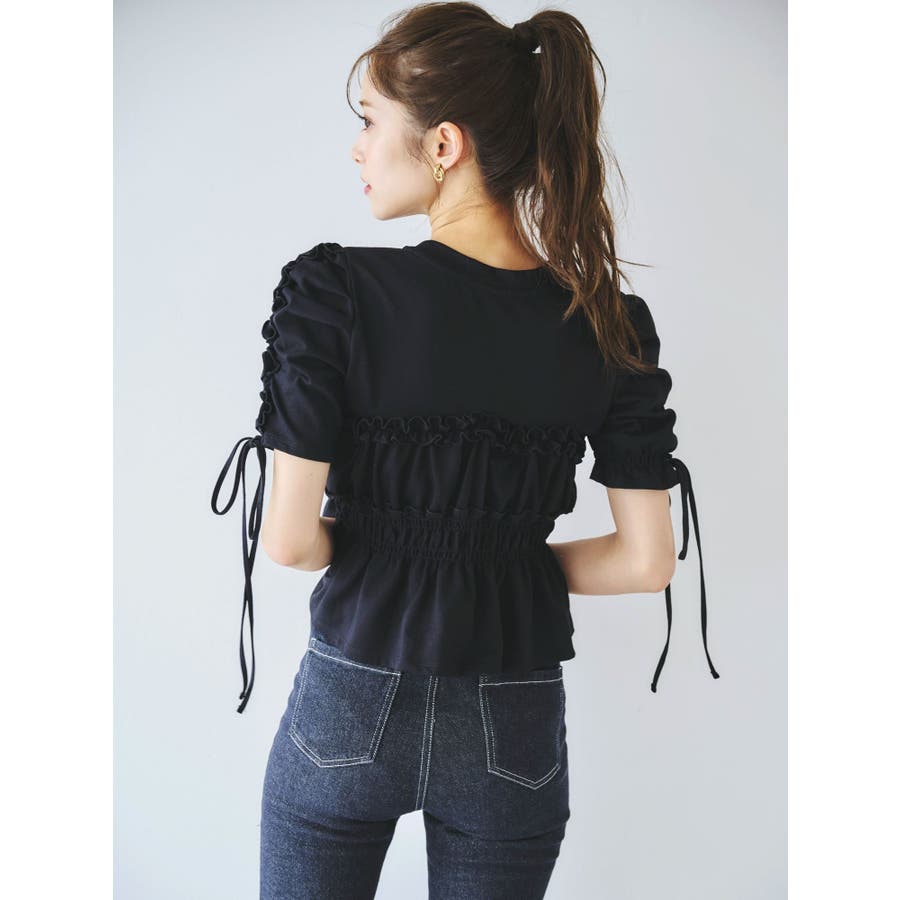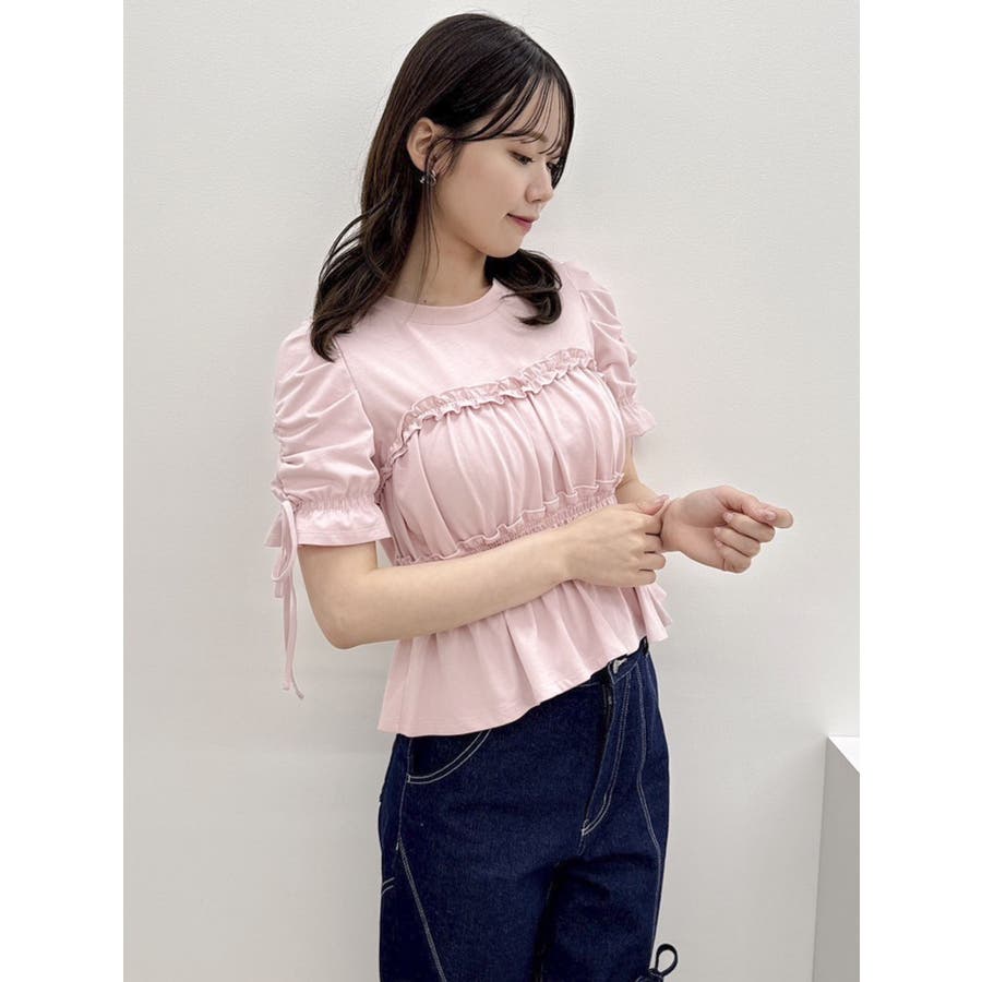 フリルギャザーデザインTシャツ