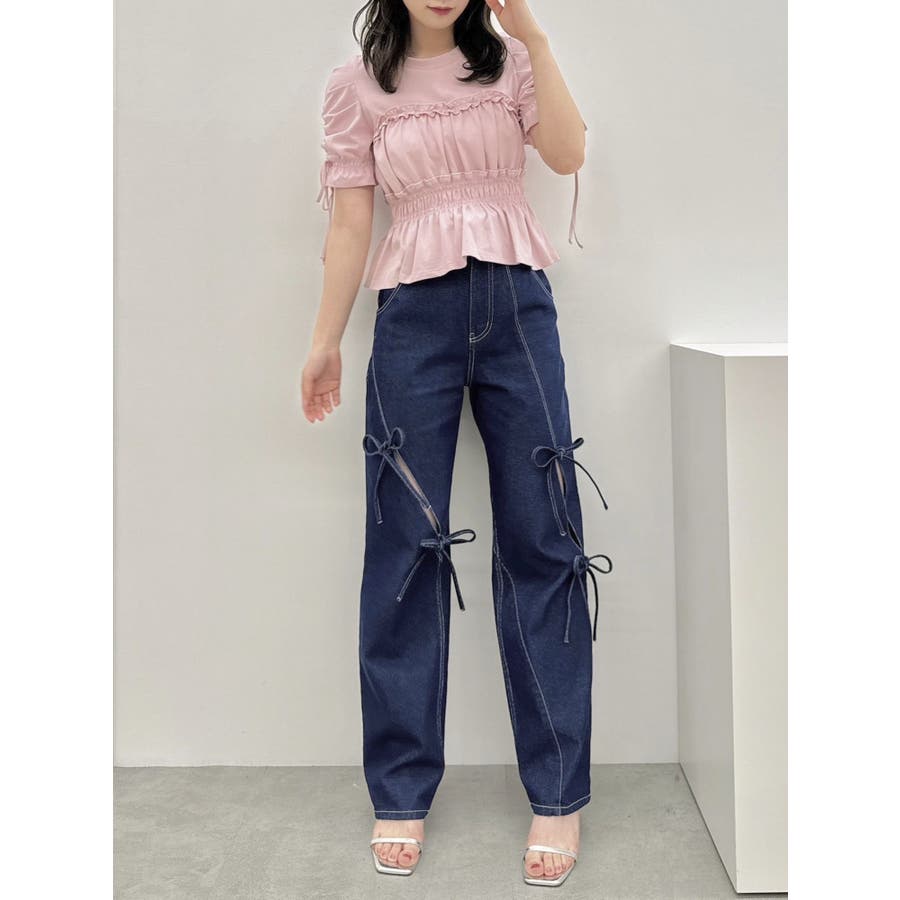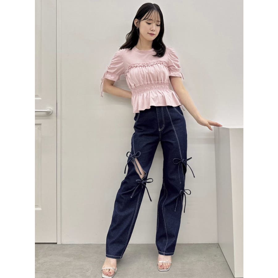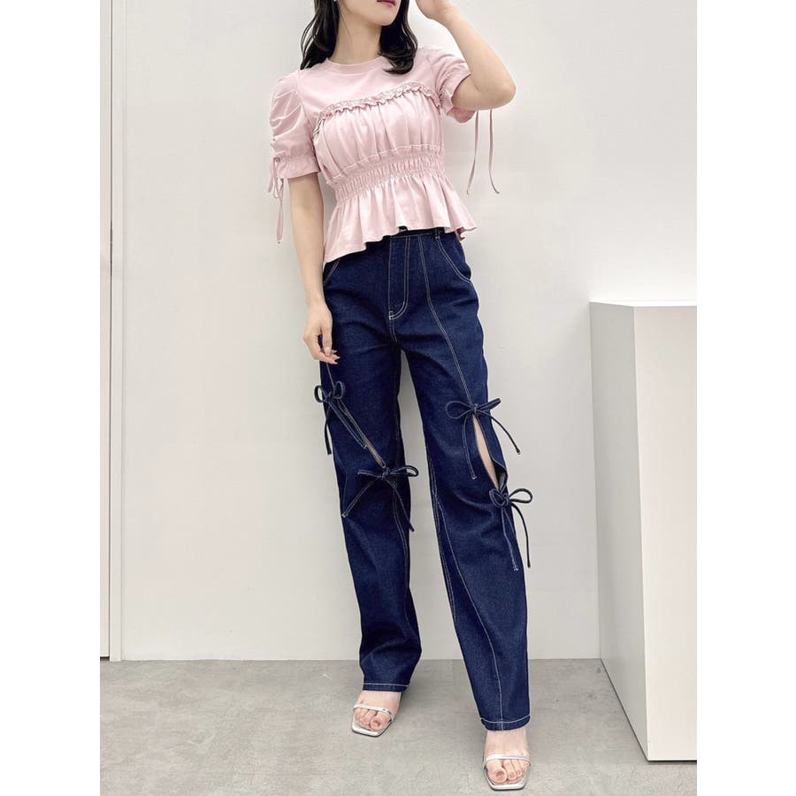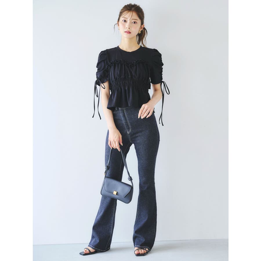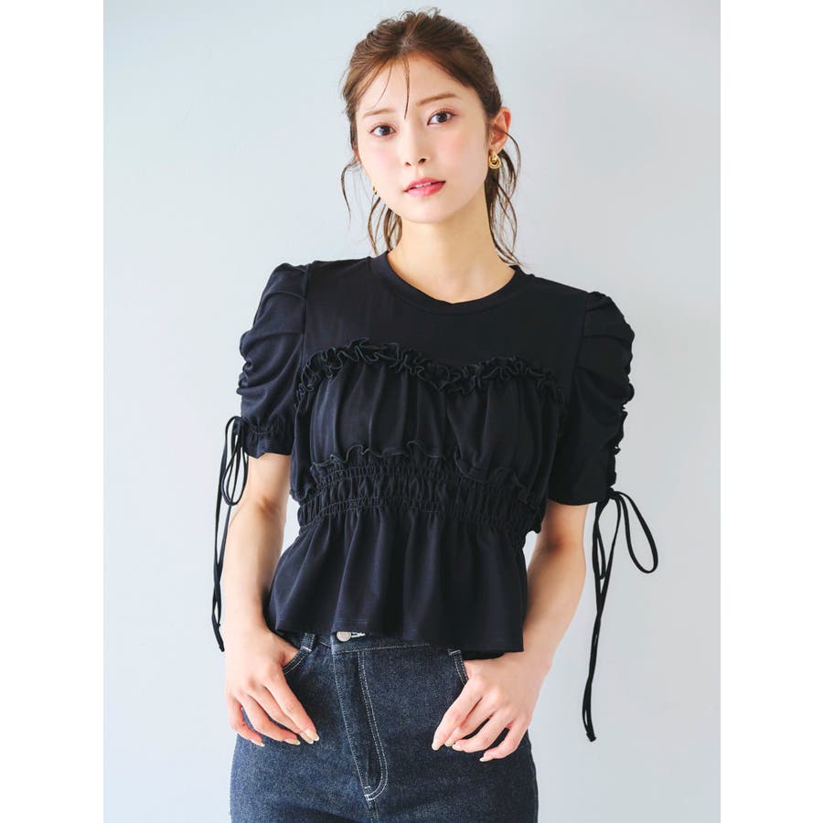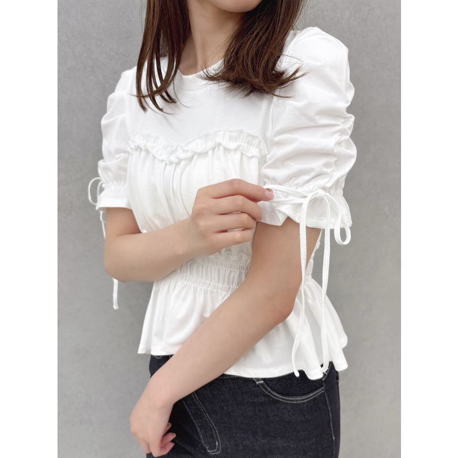 フリルギャザーデザインTシャツ