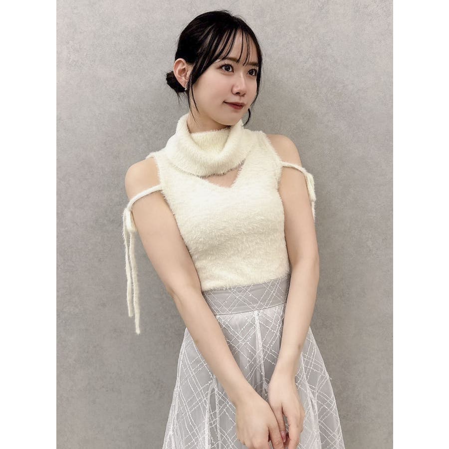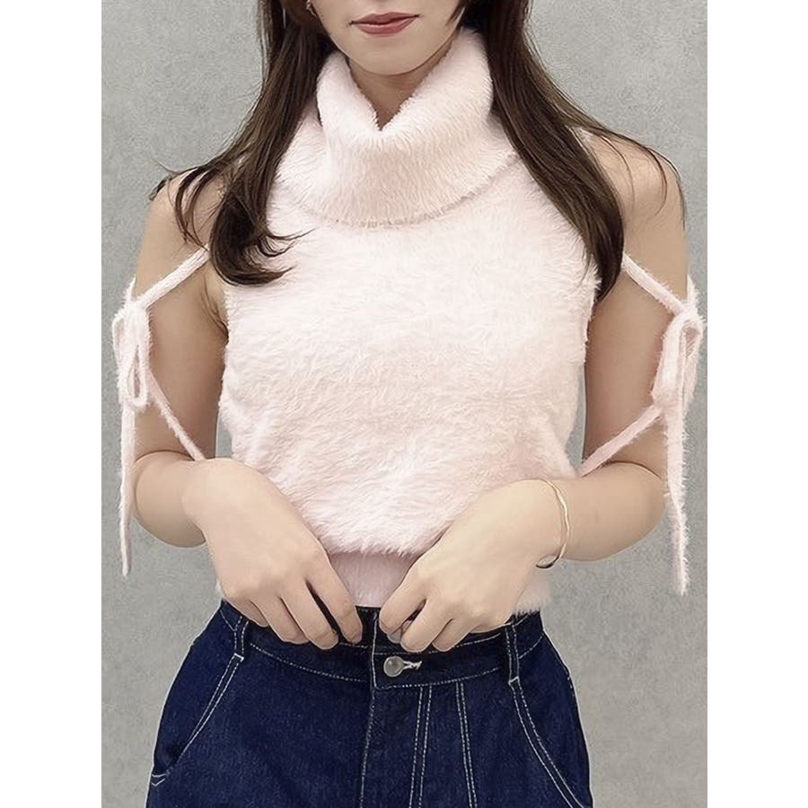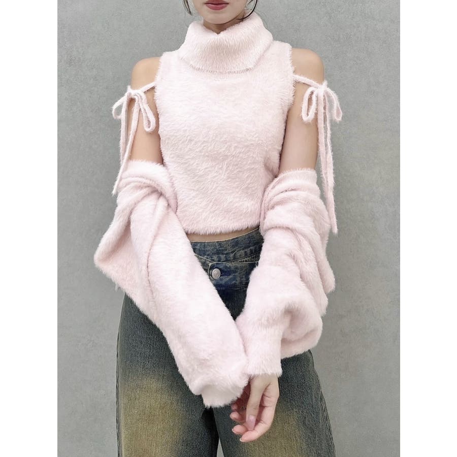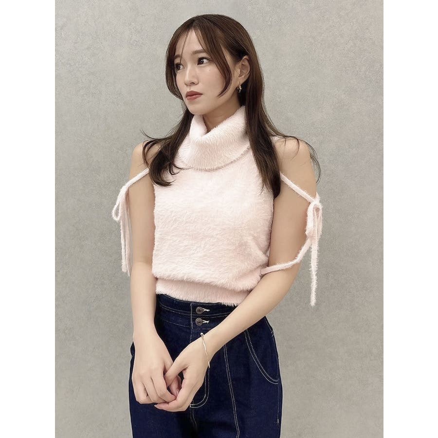 触りたくなるふわふわ あざとニット? 肌触りの良いミニシャギー糸を使用したニットトップス。 サイドのリボンで甘さを加えながら、ヘルシーなアメリカンスリーブでバランス良く仕上げました。 前後2WAYの着用が可能でミニマルなデザインがデイリーに使いやすいアイテムです。 【スタイリング】 Vネックのカーディガンをレイヤードして肩出しするとデザイントップス見えも可能。 きれいめなマーメイドスカートやミニスカートでフェミニンな合わせはもちろん、 レザーやデニム等の羽織やボトムス合わせでヘルシーなスタイリングも楽しめます。 ▼これと合わせるのがオススメ・コンパクトミニシャギーカーディガン▼シャギーニットはこちら・2wayシャギーミニトップス・2wayシャギーハーフスリーブトップス▼気になるアイテムはお気に入り登録がおすすめ 入荷情報やラスト1点、お得なプライスダウンの情報をいち早くお届け! ぜひご登録ください◎ ※実際にお届けする商品と仕様やサイズが異なる場合がございます。 また生産の都合上、お届け時期が前後する場合がございます。