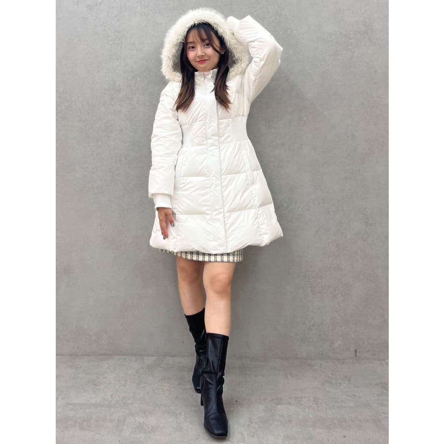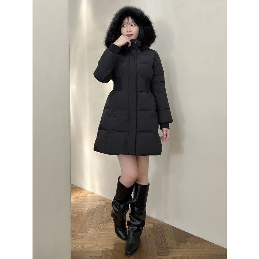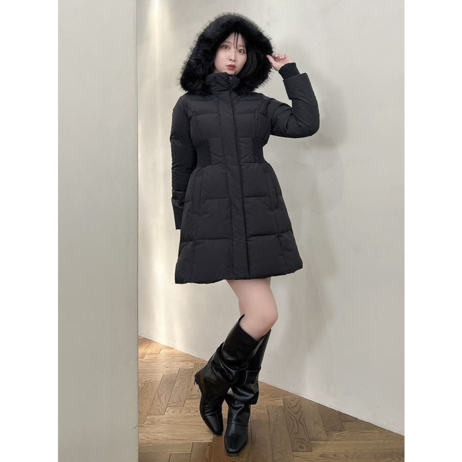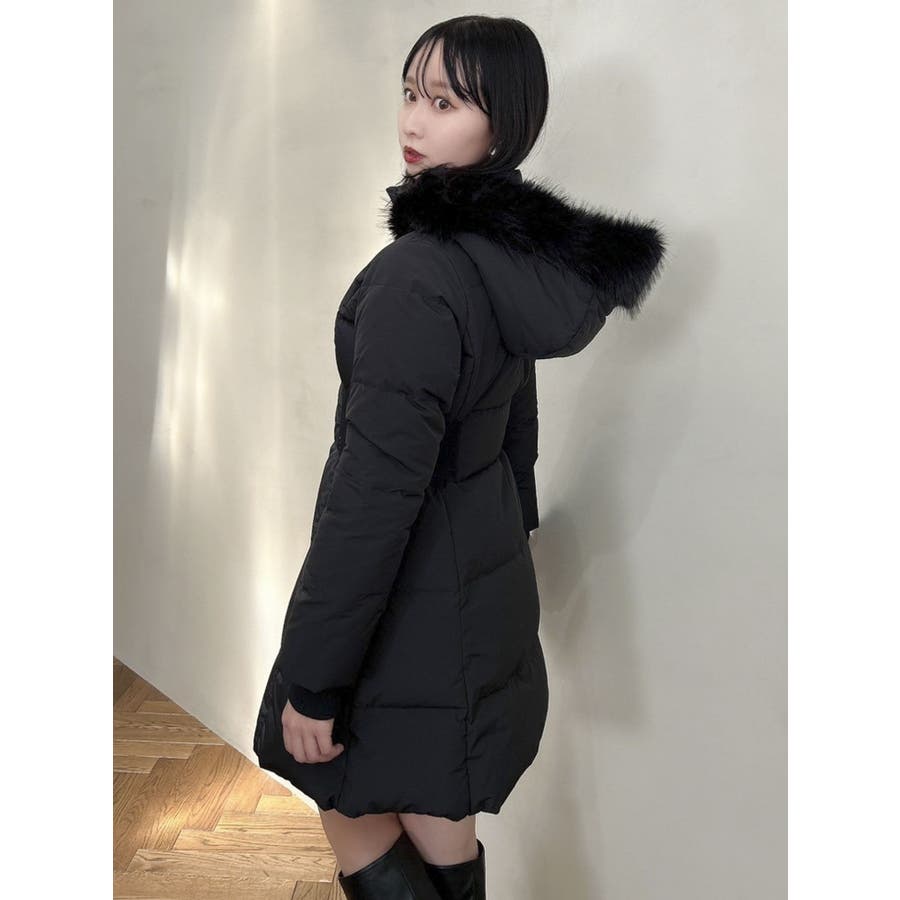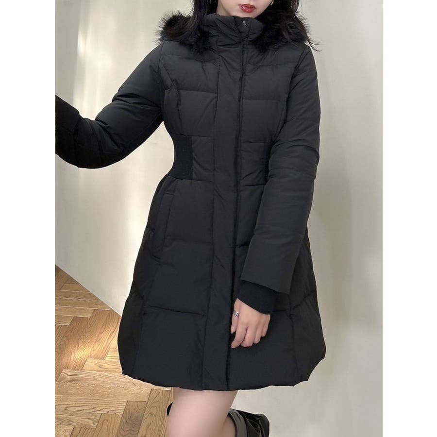 | 素材 | 表地:ポリエステル100% 裏地:ポリエステル100% 詰物:ダウン80% フェザー20% リブ:ポリエステル97% ポリウレタン3% ファー部分:ポリエステル100% |