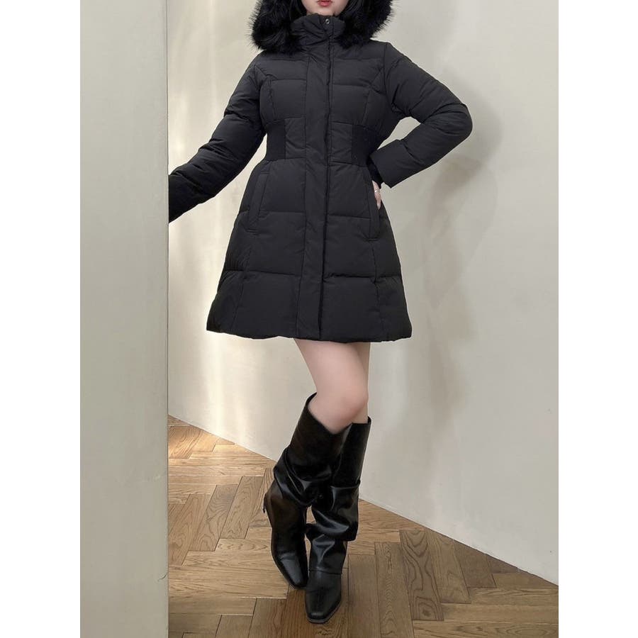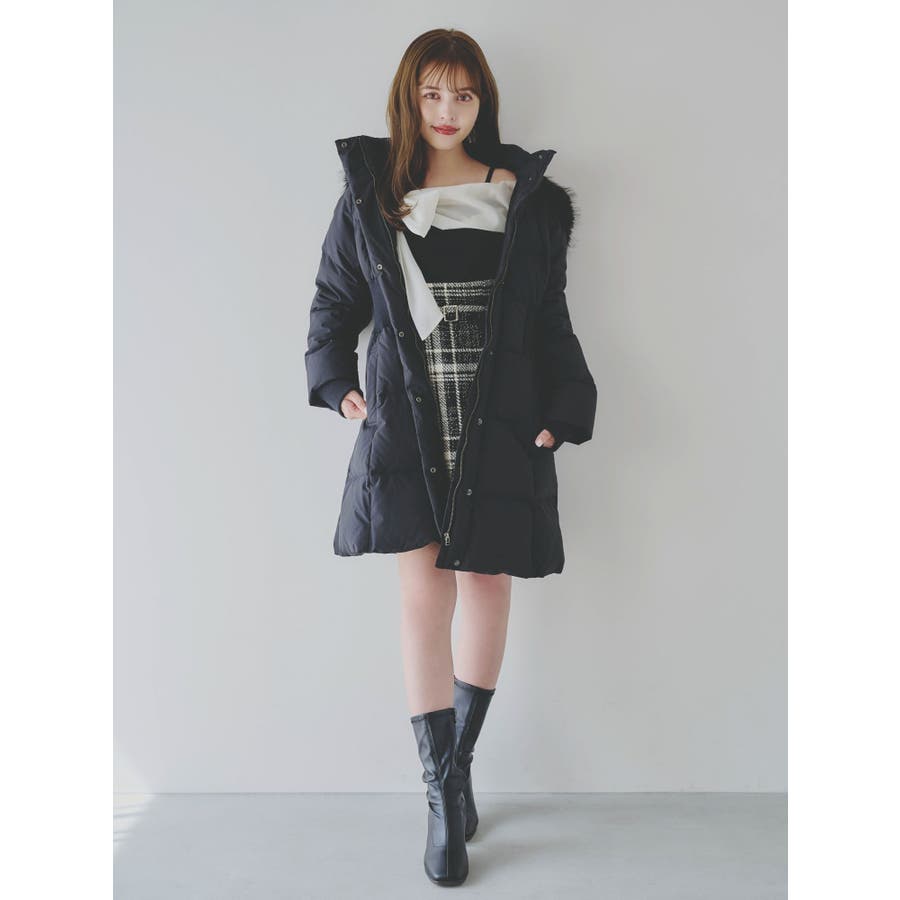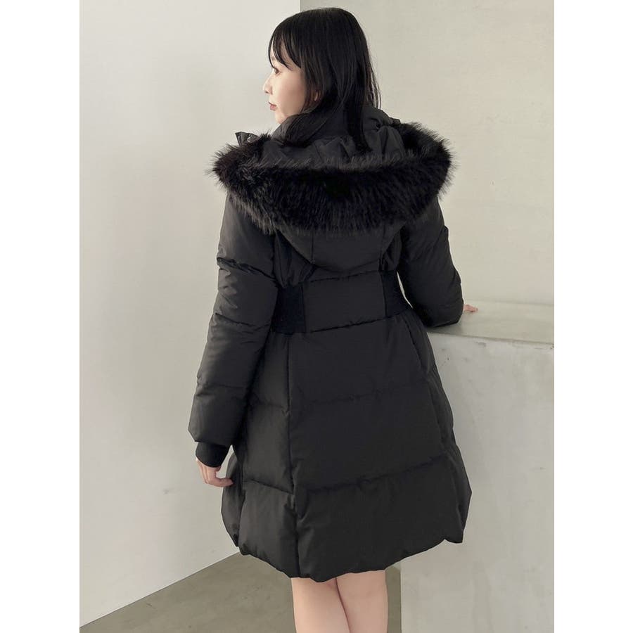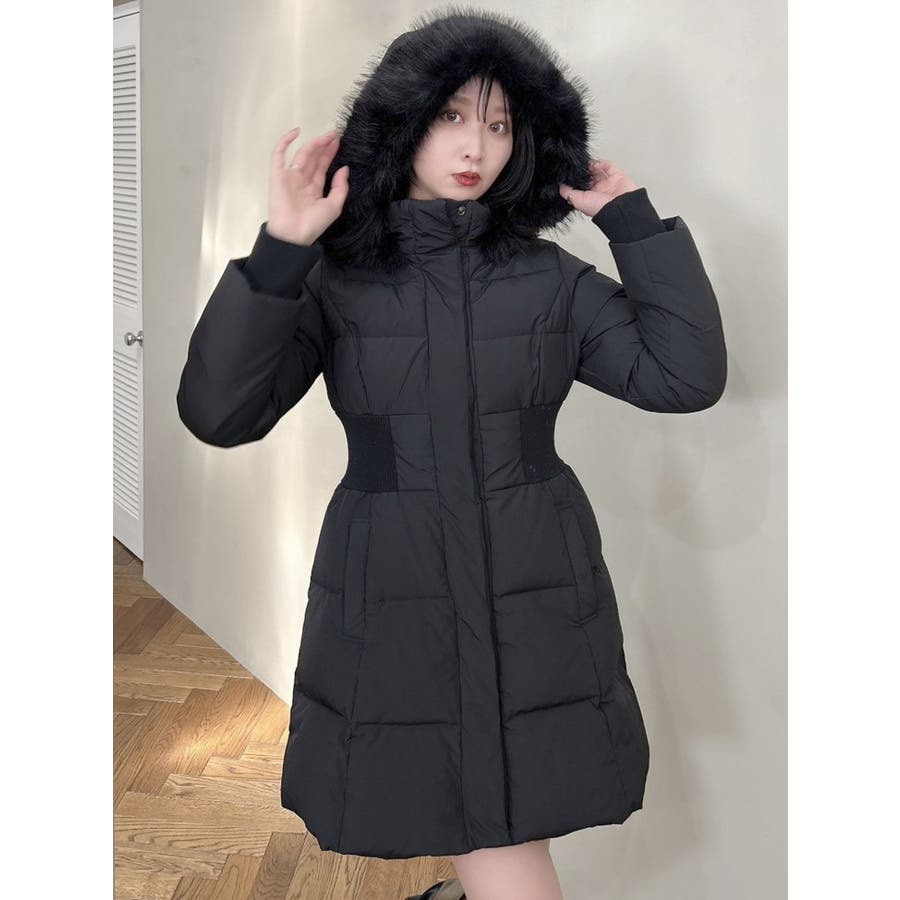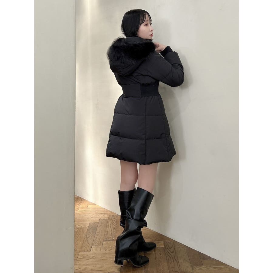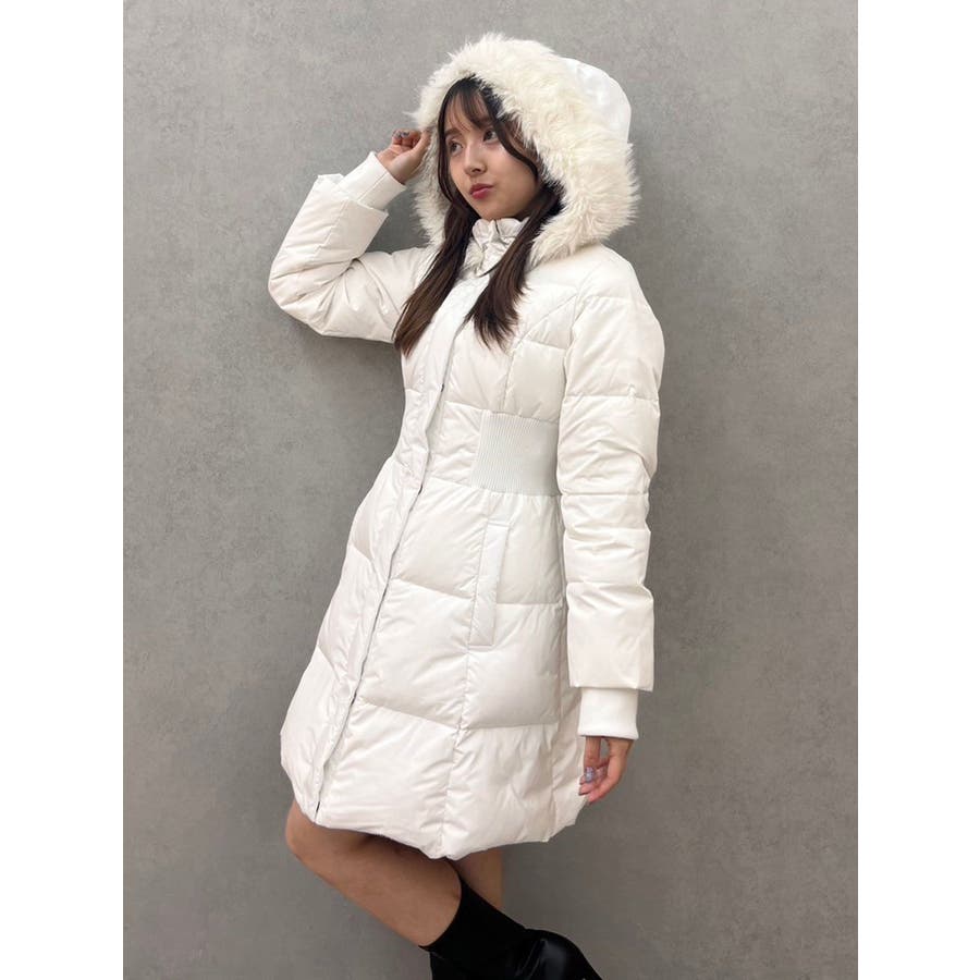| 素材 | 表地:ポリエステル100% 裏地:ポリエステル100% 詰物:ダウン80% フェザー20% リブ:ポリエステル97% ポリウレタン3% ファー部分:ポリエステル100% |