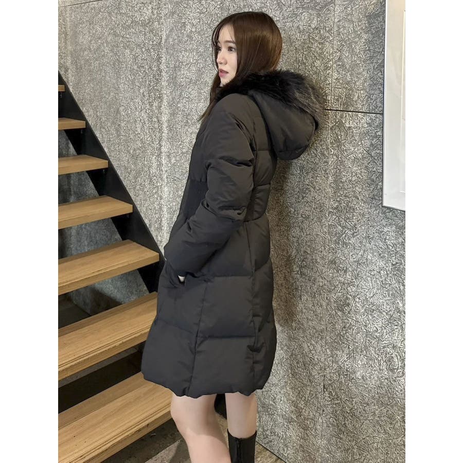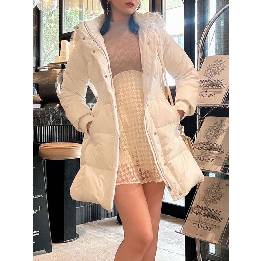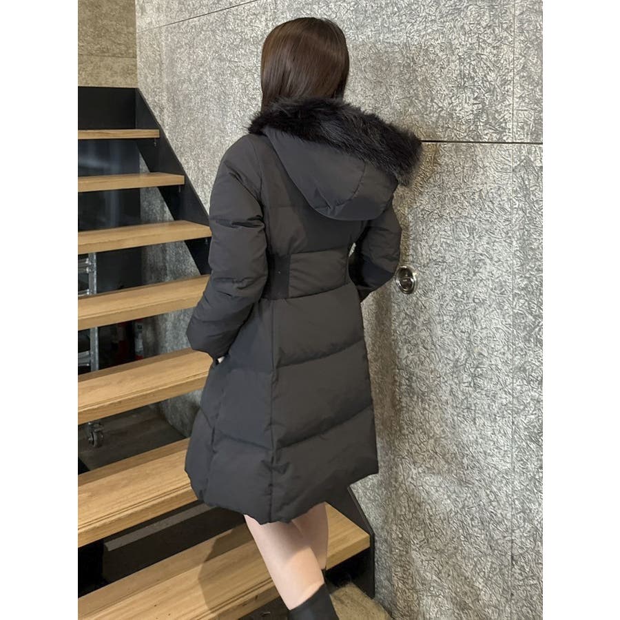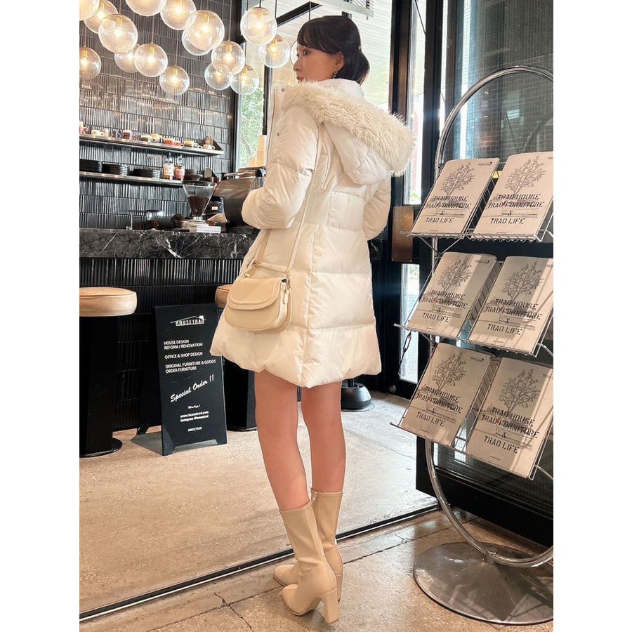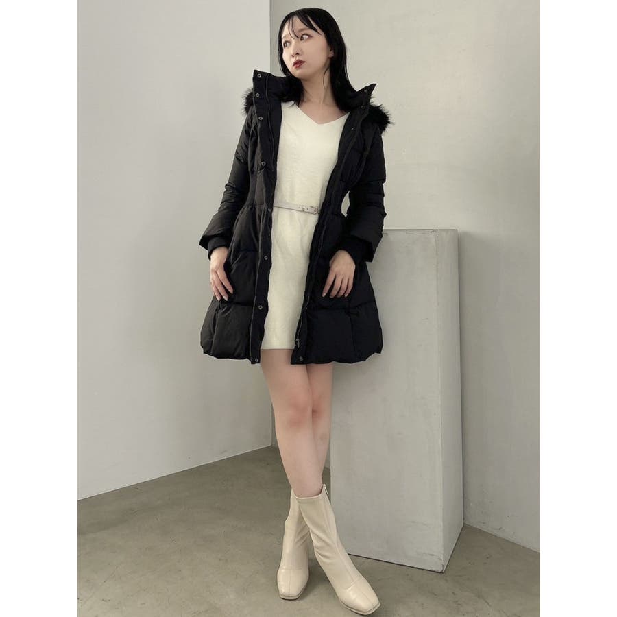 | 素材 | 表地:ポリエステル100% 裏地:ポリエステル100% 詰物:ダウン80% フェザー20% リブ:ポリエステル97% ポリウレタン3% ファー部分:ポリエステル100% |