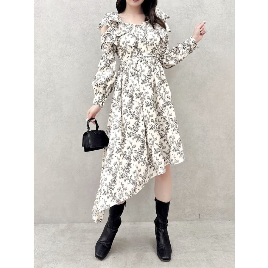 リボンショルダーアシンメトリーワンピース