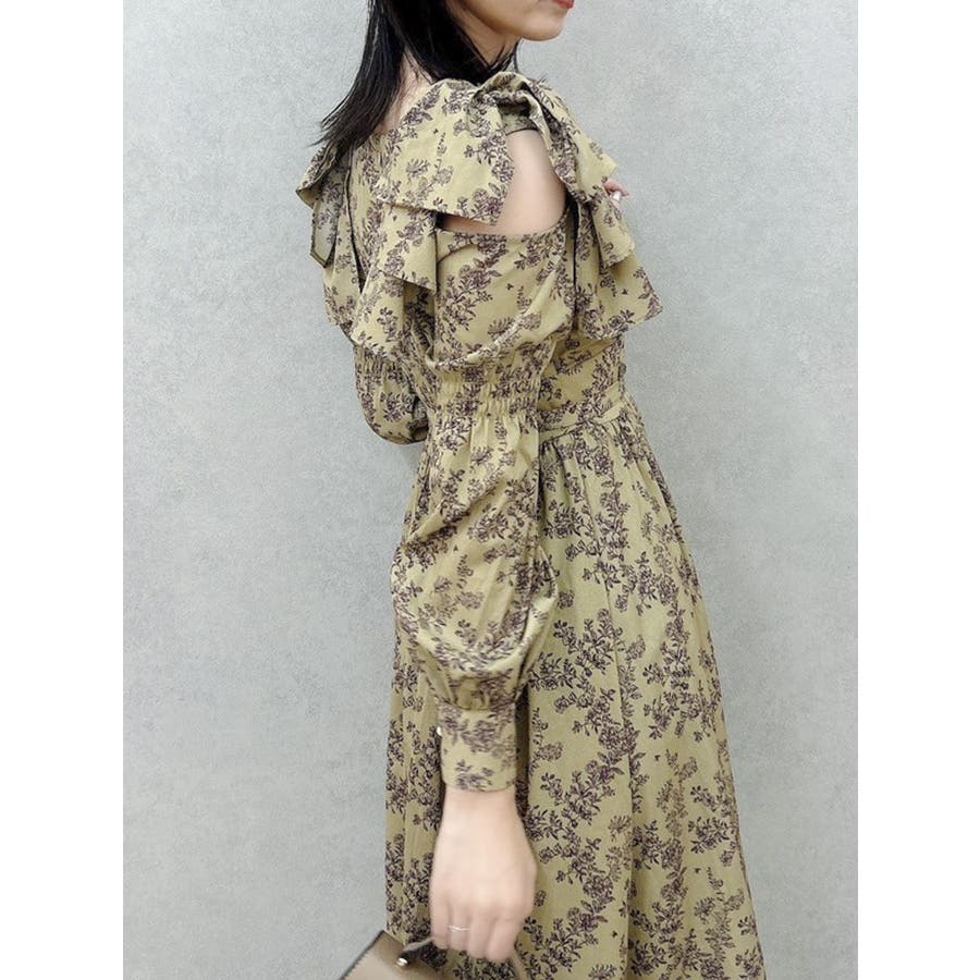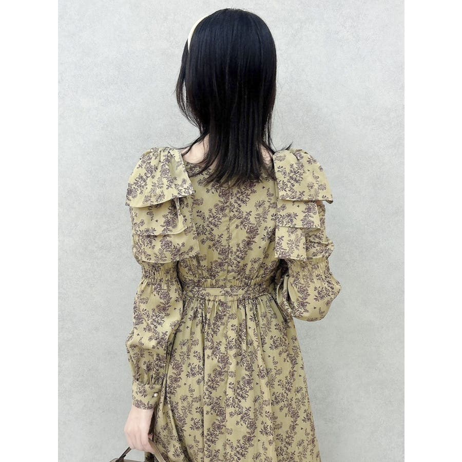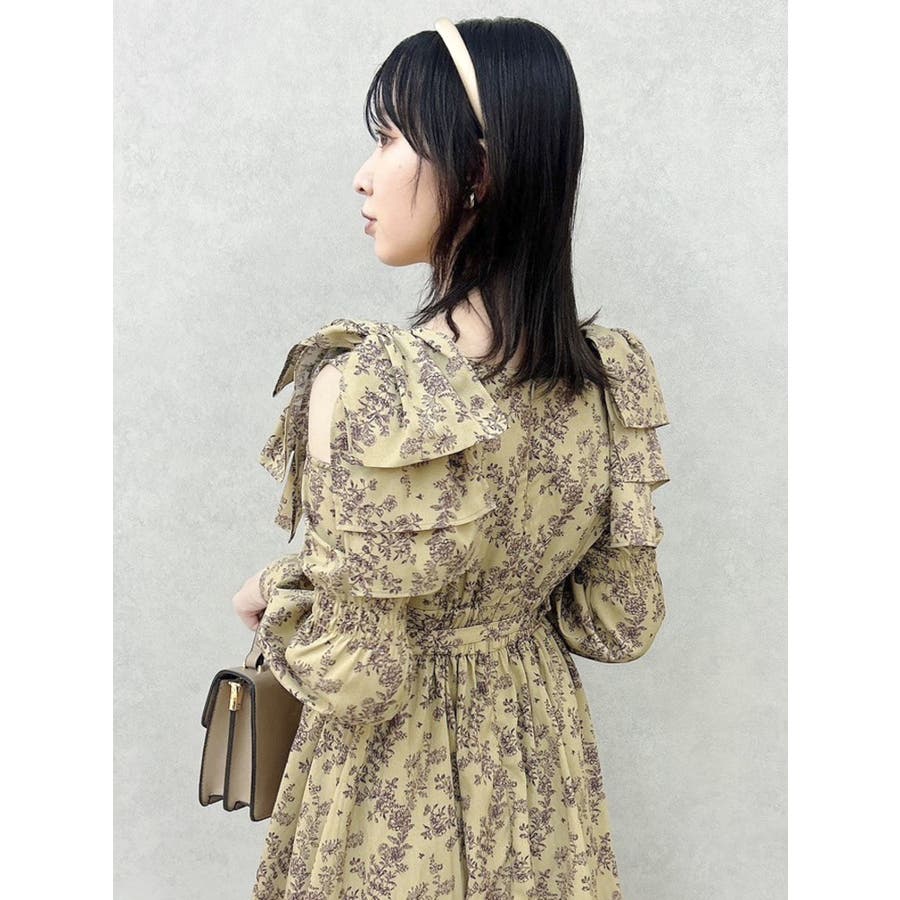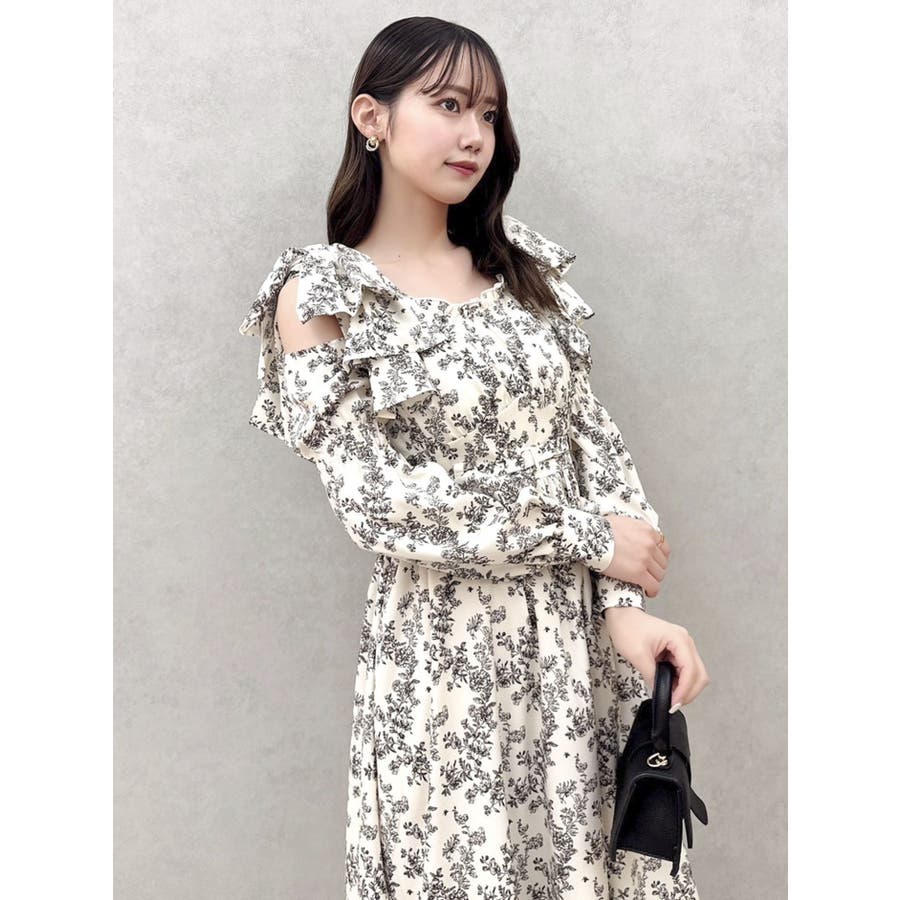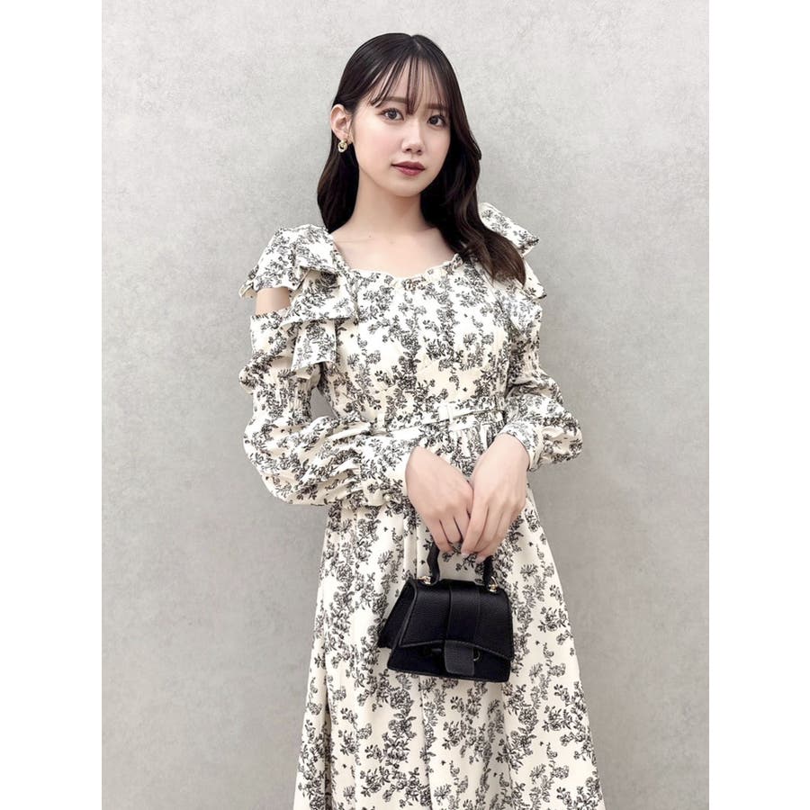 【商品】肩部分のリボンでSWEETな印象に仕上がったワンピースです。ウエスト部分のベルトマークでスタイルアップ。アシンメトリーになった裾のデザインがdazzlin(ダズリン)らしい遊び心を閉じ込めています。【スタイリング】ライダースジャケットやテーラードジャケットを合わせてマニッシュなコーデがおすすめです。甘辛なスタイリングが楽しめます。