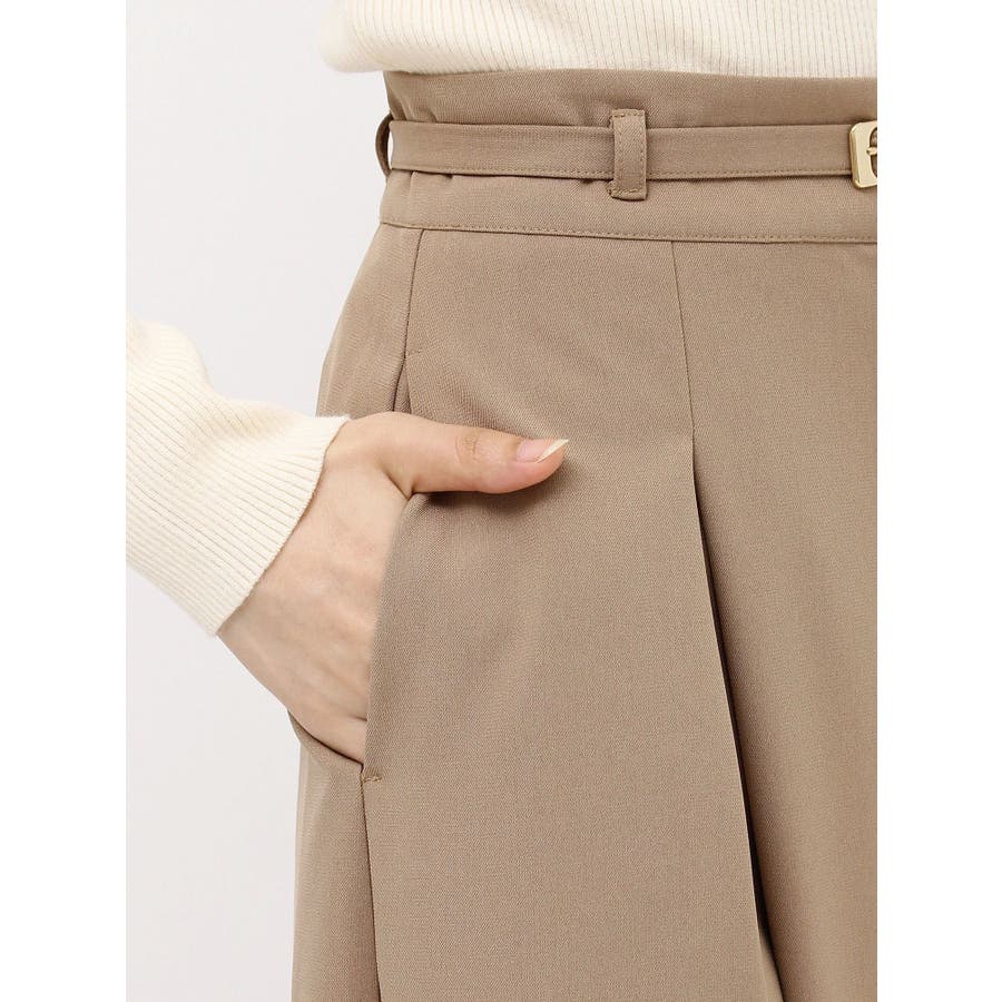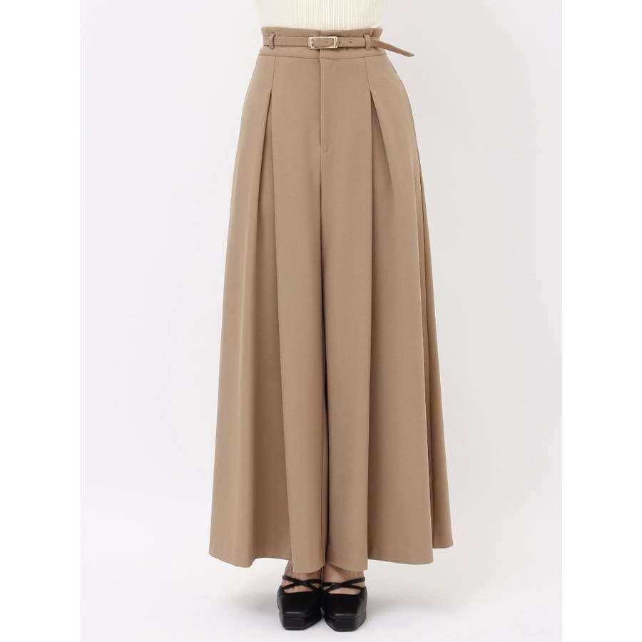 【商品】トロンとした落ち感のある合繊生地を使用してエレガントな着こなしが楽しめるアイテム。裾にかけて広がるダイナミックなシルエットでインパクトを演出します。細めのバックルパーツも上品さを加速させるポイントに。【スタイリング】フリルブラウスやニットなど甘さのあるアイテムを合わせてフェミニンなスタイルに。ウールアウターもショート丈のもので重さを出しすぎないのが好バランスさをキープするポイントです。