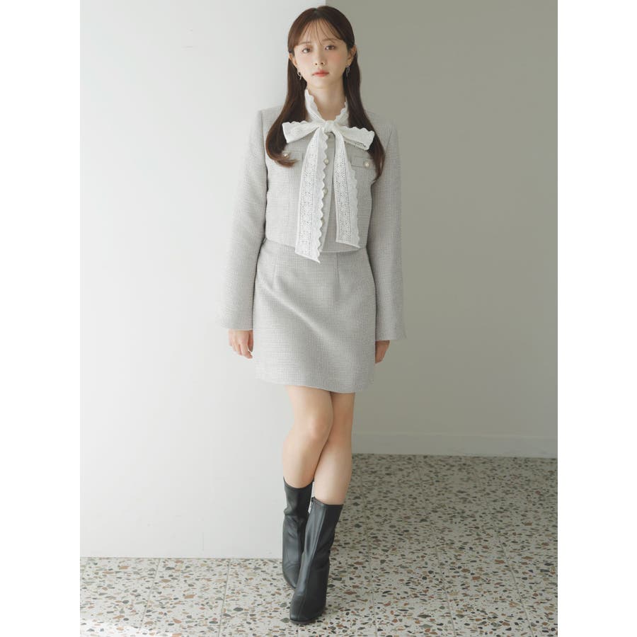 森香澄 × dazzlin(ダズリン)コラボアイテム【アイテム】 コンパクトでミニマルなデザインが愛らしいスカート。 ウエストをくびれさせたハイウエストシルエットによって目線が上に上がり、スタイルアップが叶います。 安心のインナーパンツ付きで1枚でスタイリングに取り入れやすいのも魅力です。 【スタイリング】 同素材のジャケットを合わせるとワンピース見えして、クラシカルな印象に。 単体でブラウス合わせできれいめなコーデはもちろん、韓国ライクにカットソー合わせでエッジを効かせてもカワイイです。 ▼気になるアイテムはお気に入り登録がおすすめ 入荷情報やラスト1点、お得なプライスダウンの情報をいち早くお届け! ぜひご登録ください◎ ※実際にお届けする商品と仕様やサイズが異なる場合がございます。 また生産の都合上、お届け時期が前後する場合がございます。 ▼森香澄さん他コラボアイテムはこちら・【森香澄コラボ】メッセージロゴショートプルオーバー・【森香澄コラボ】ベルスリーブショートジャケット・【森香澄コラボ】リボンモチーフボアコート・【森香澄コラボ】レースドッキングボウタイブラウス・【森香澄コラボ】ディープネックレイヤードワンピース