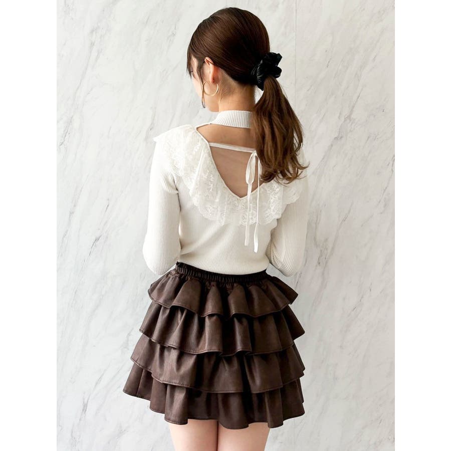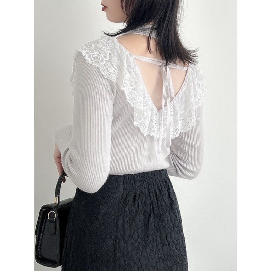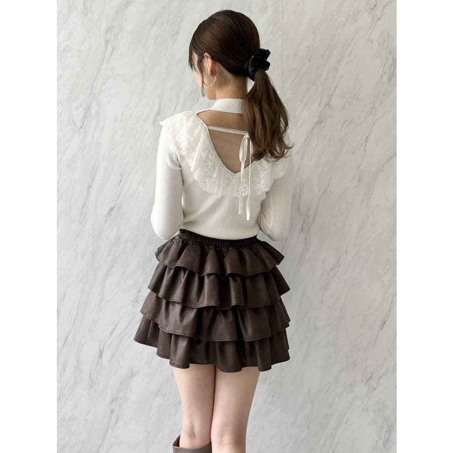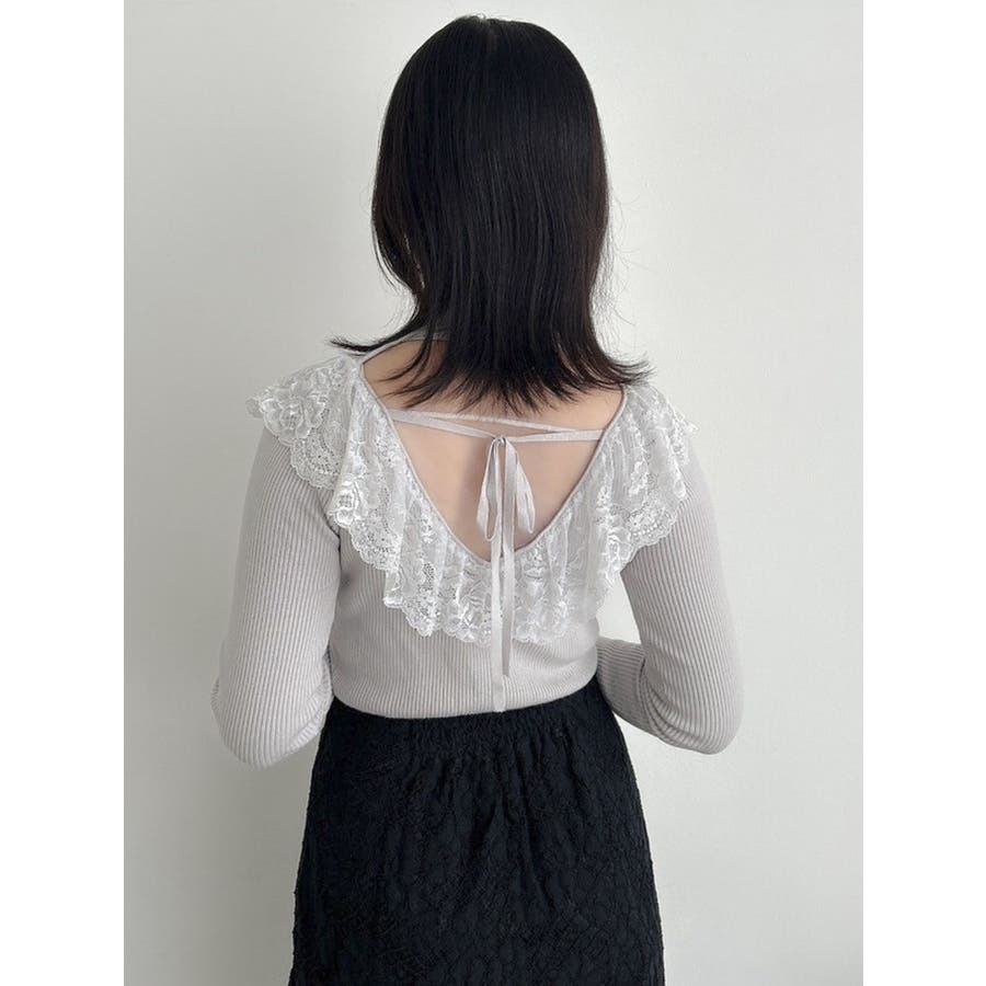 バックオープンフリルニットプルオーバー