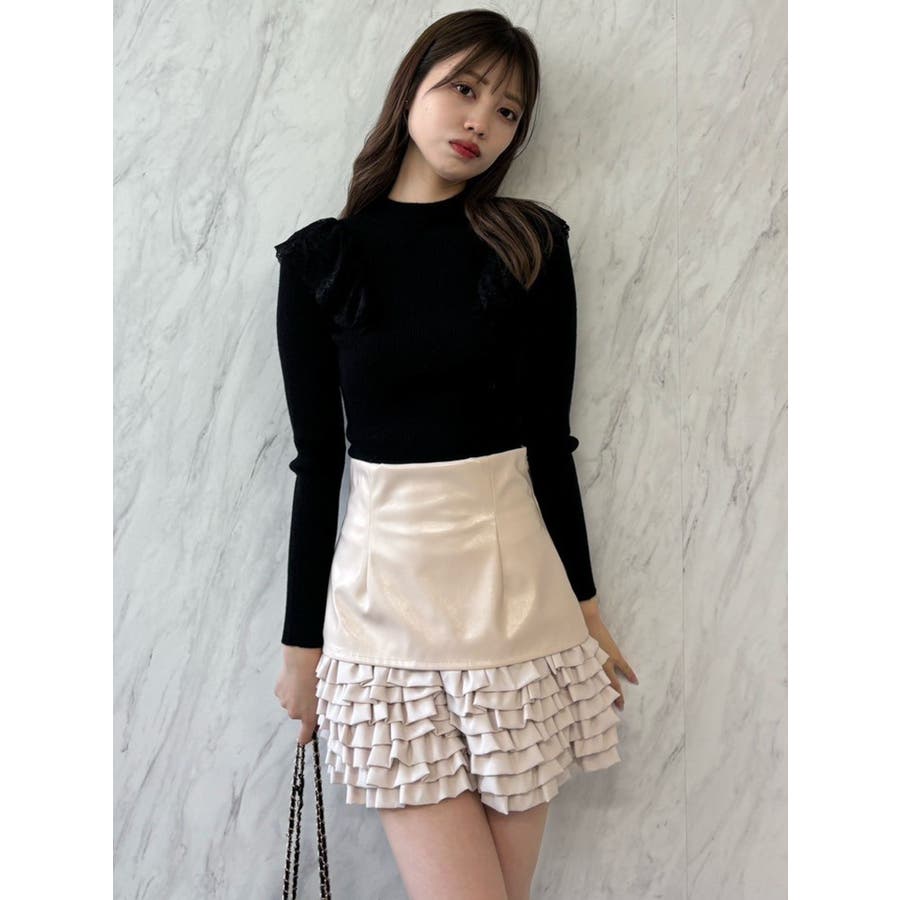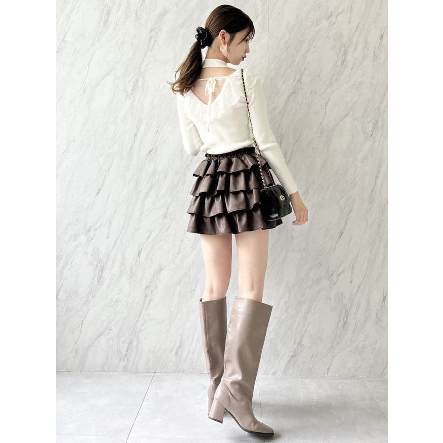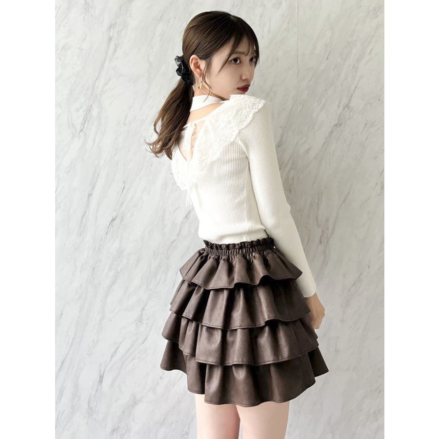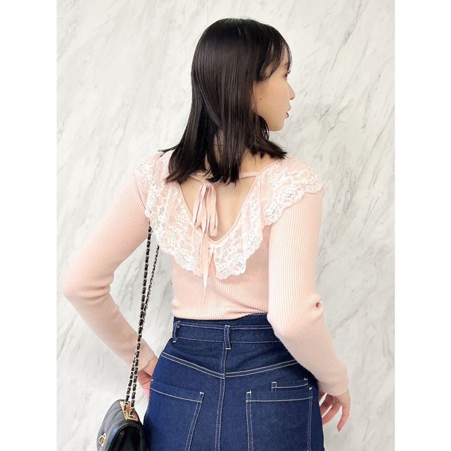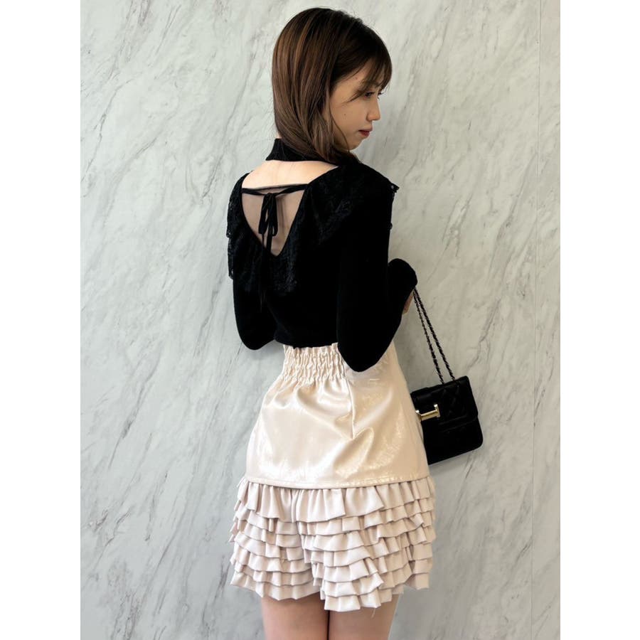 バックオープンフリルニットプルオーバー
