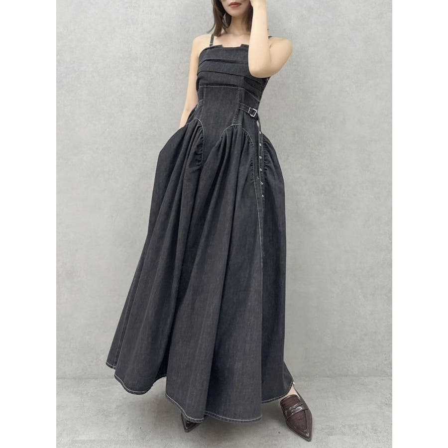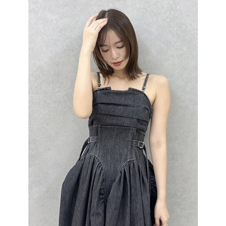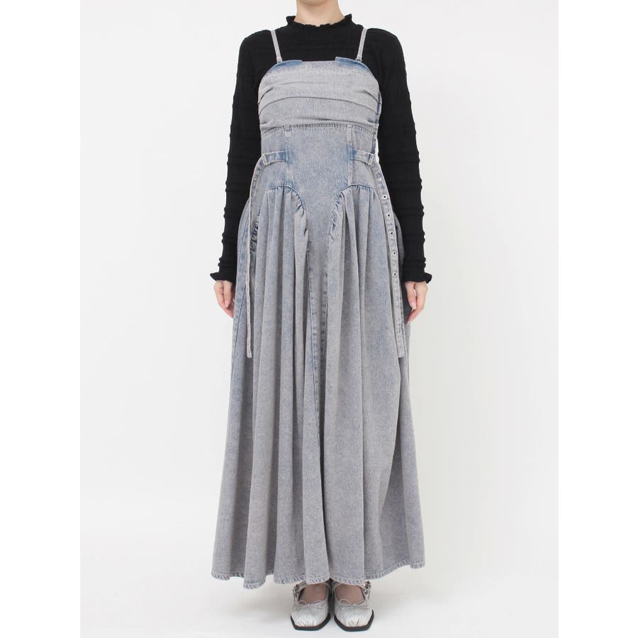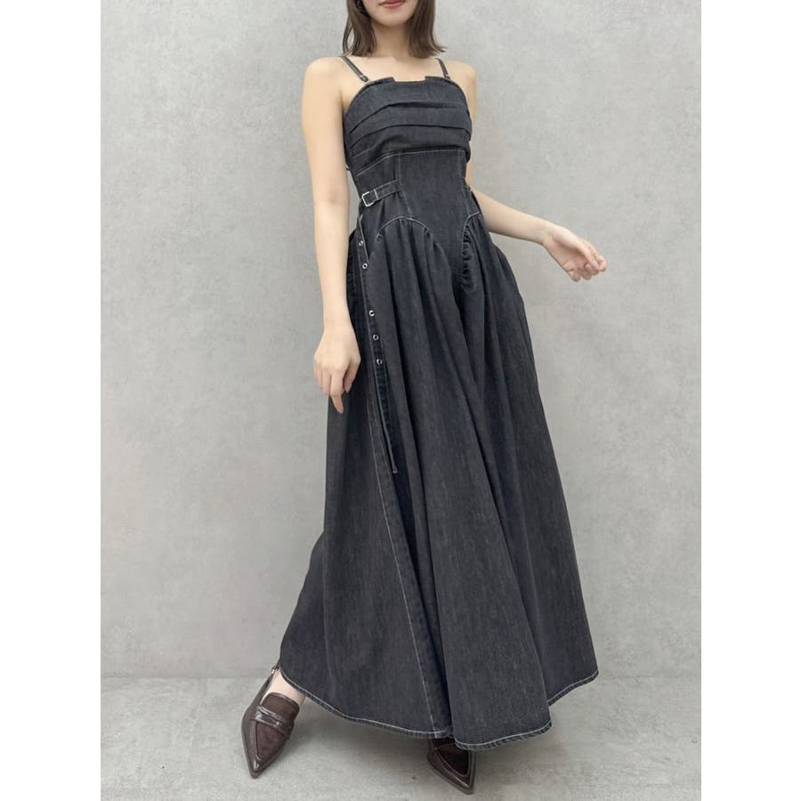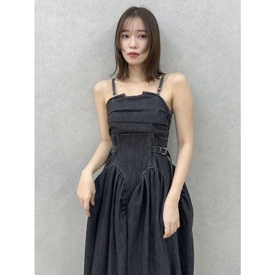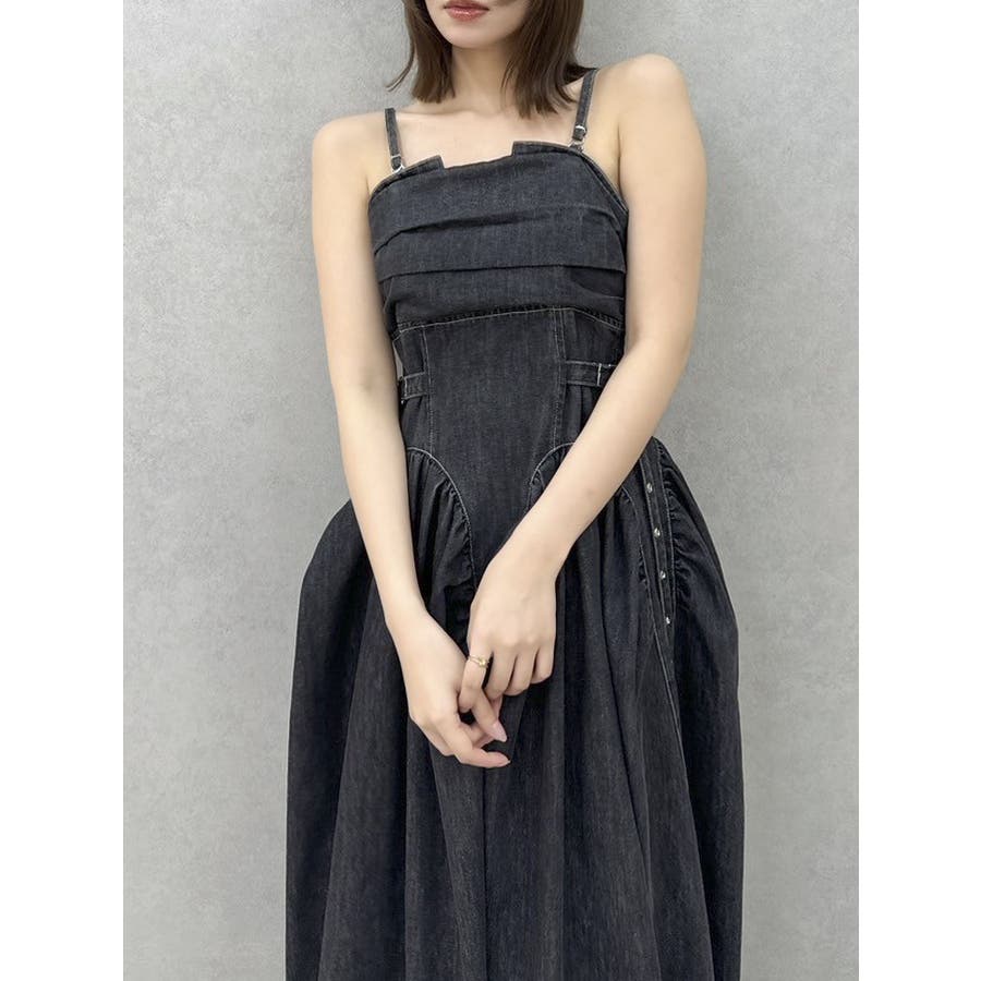 デニムベルトギャザーキャミワンピース