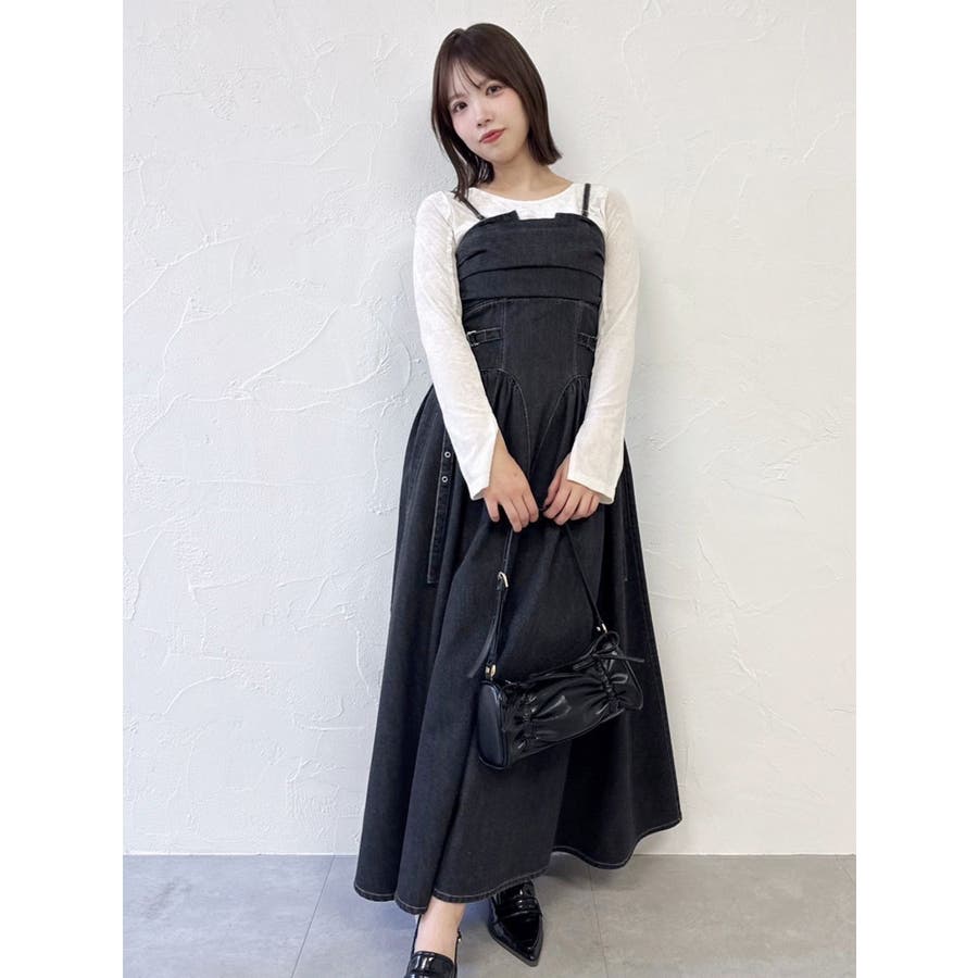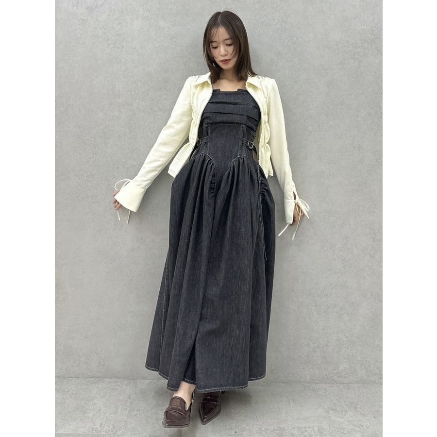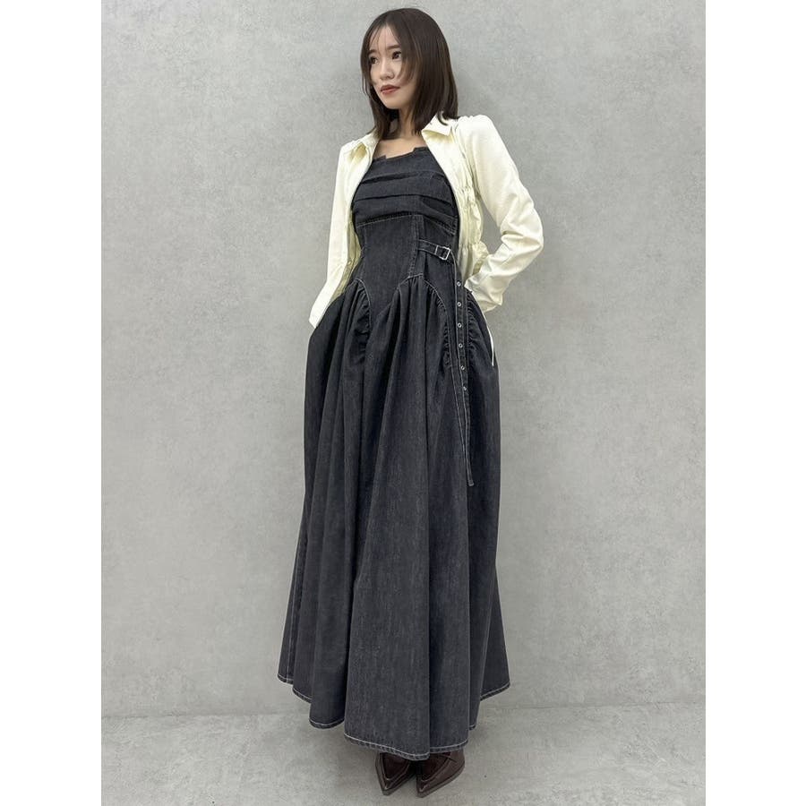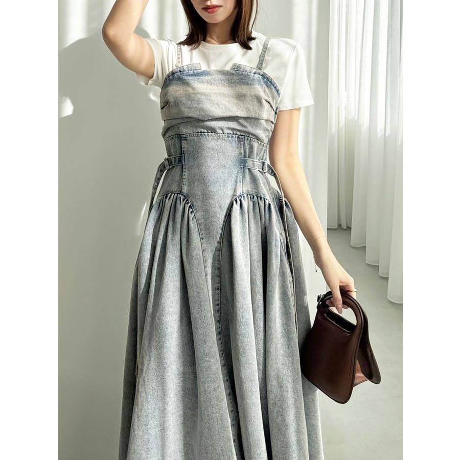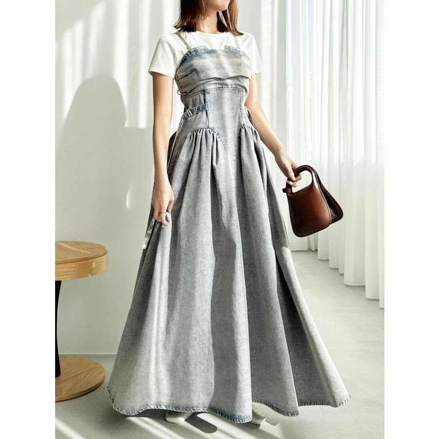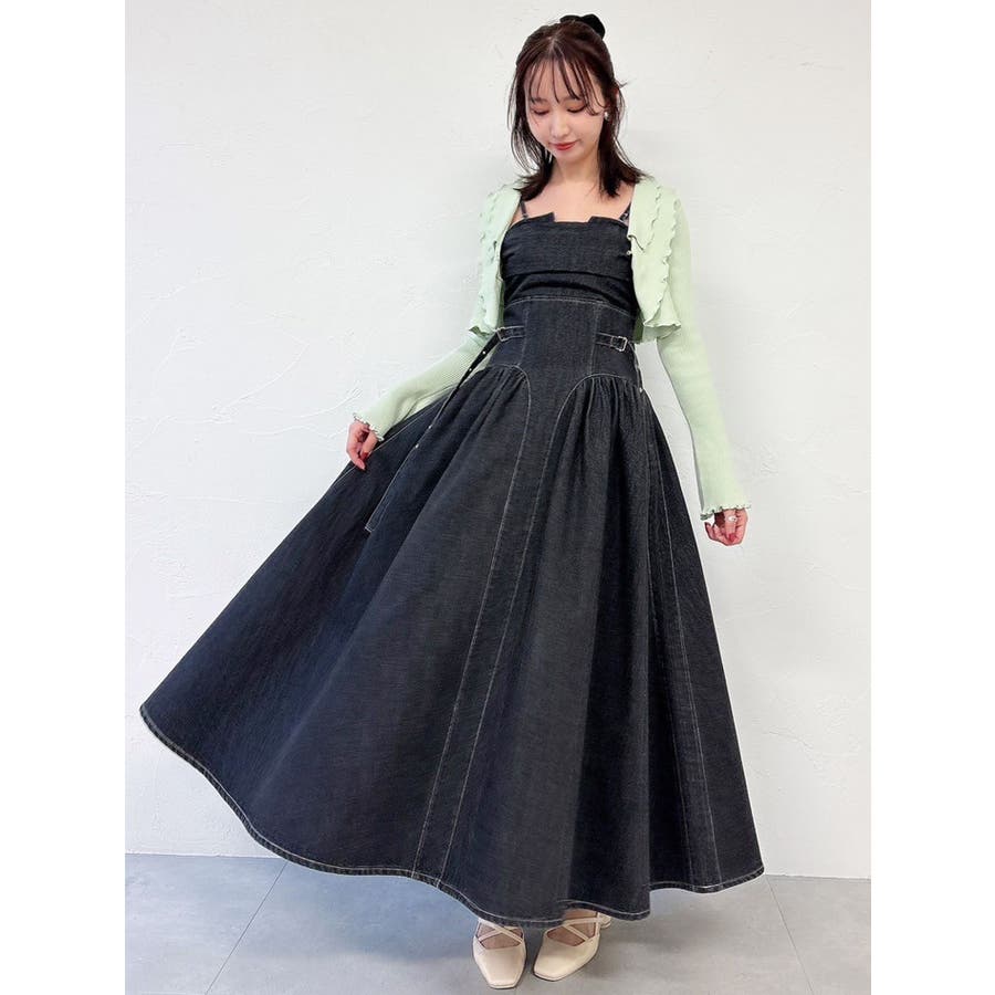 デニムベルトギャザーキャミワンピース