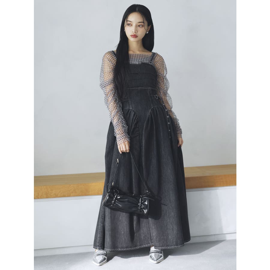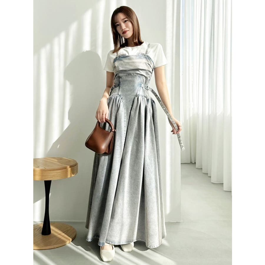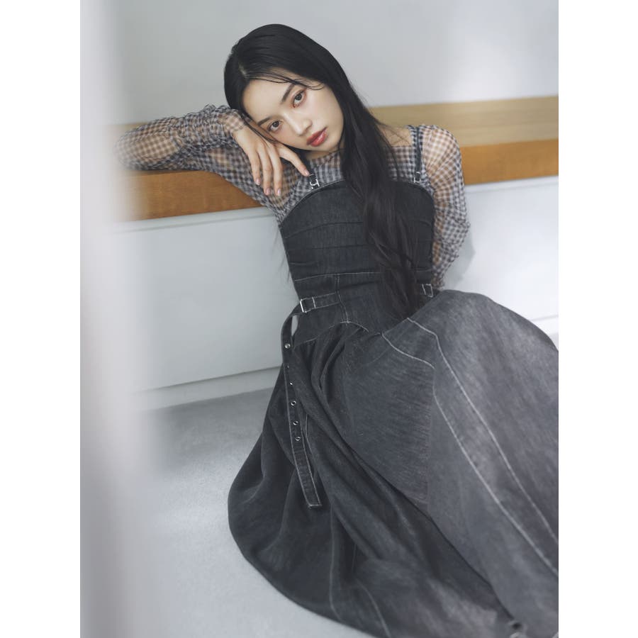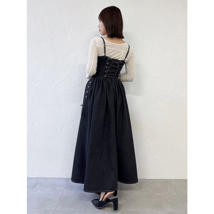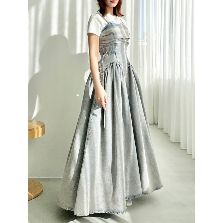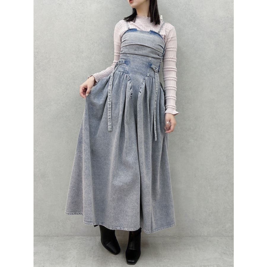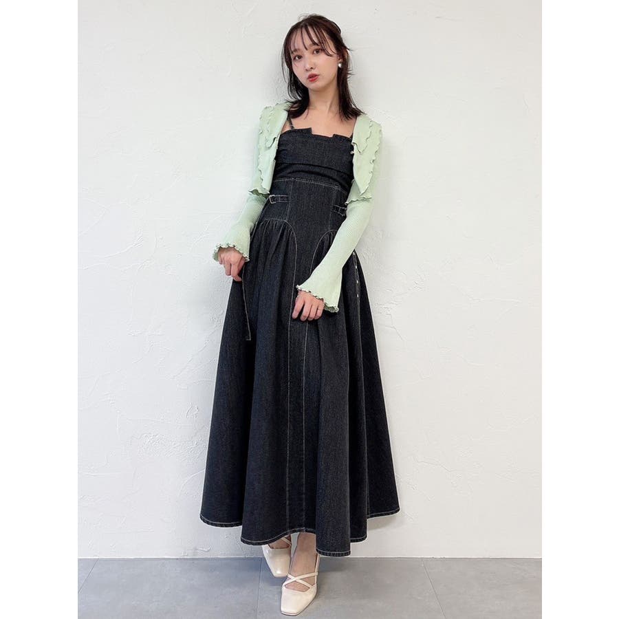デニムベルトギャザーキャミワンピース
