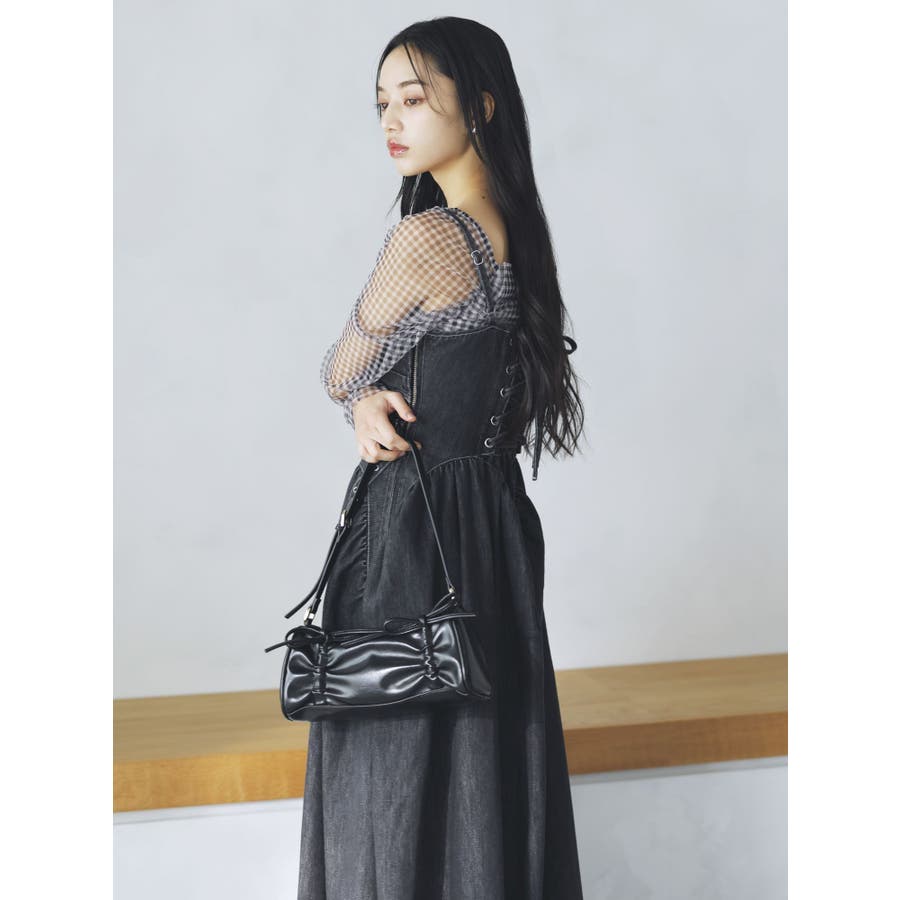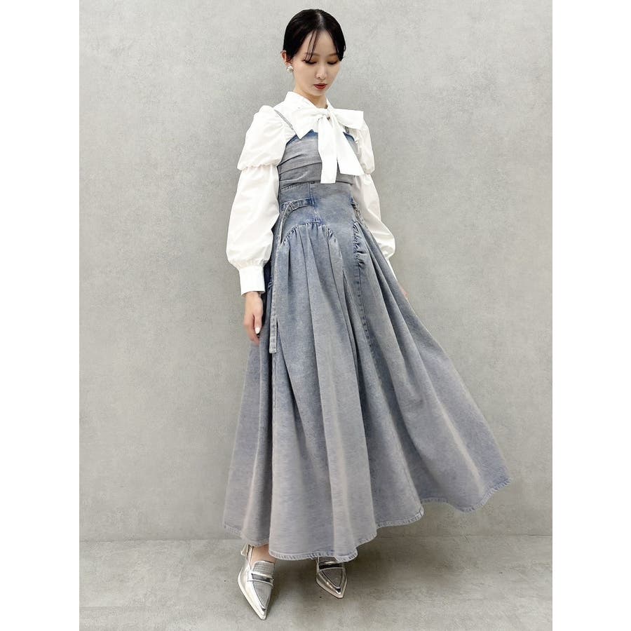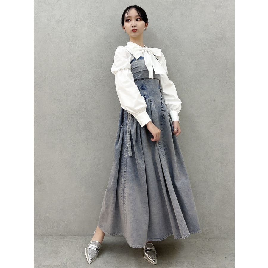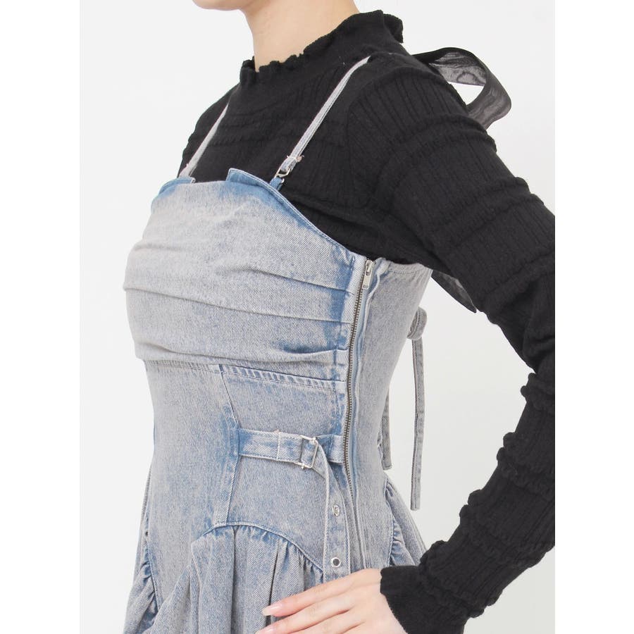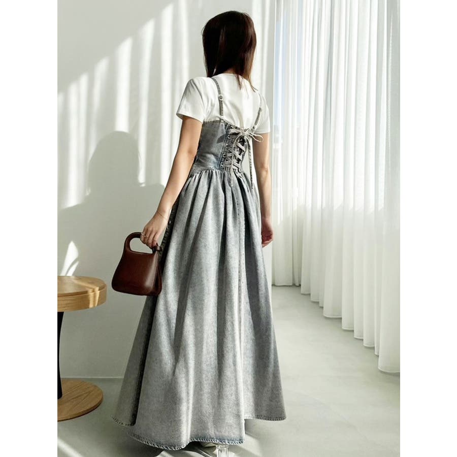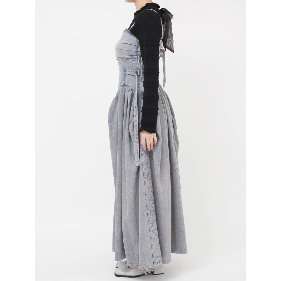 デニムベルトギャザーキャミワンピース