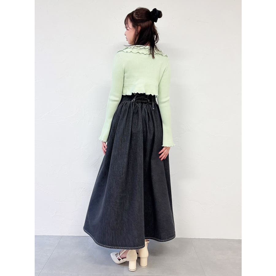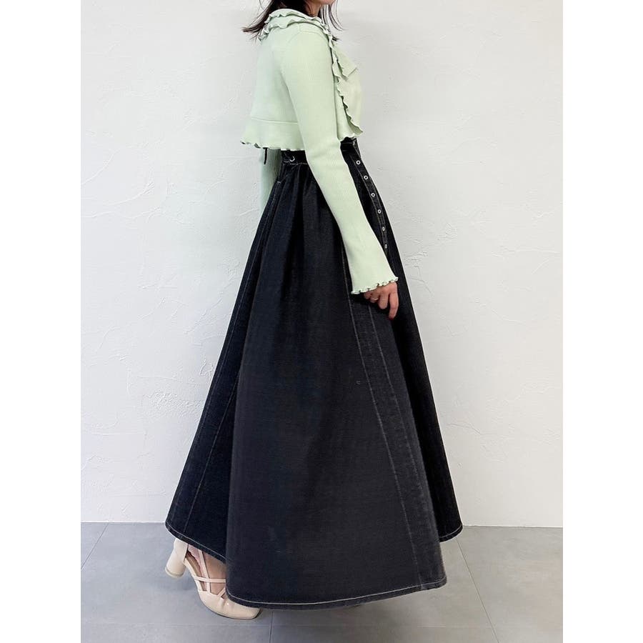 【商品】オーバーダイ加工を施し、フレア切り替えをローライズに入れ込んだシルエット。抜け感があり1枚で躍動感あるシルエットが叶います。ベルトも長めのデザインで動きを作り今季らしさのあるシルエットが特徴です。【スタイリング】インナーにTシャツを合わせたり、シアートップスを重ねたりと着回し万能です。シャツやカーディガンとの羽織コーデもおすすめです。