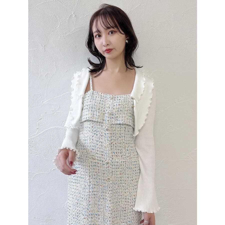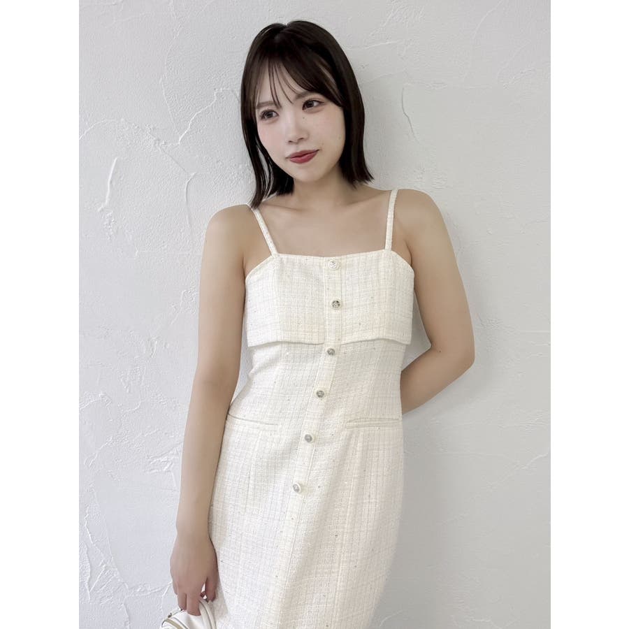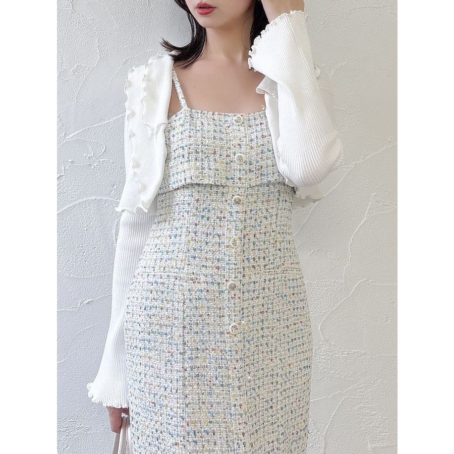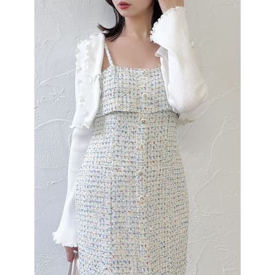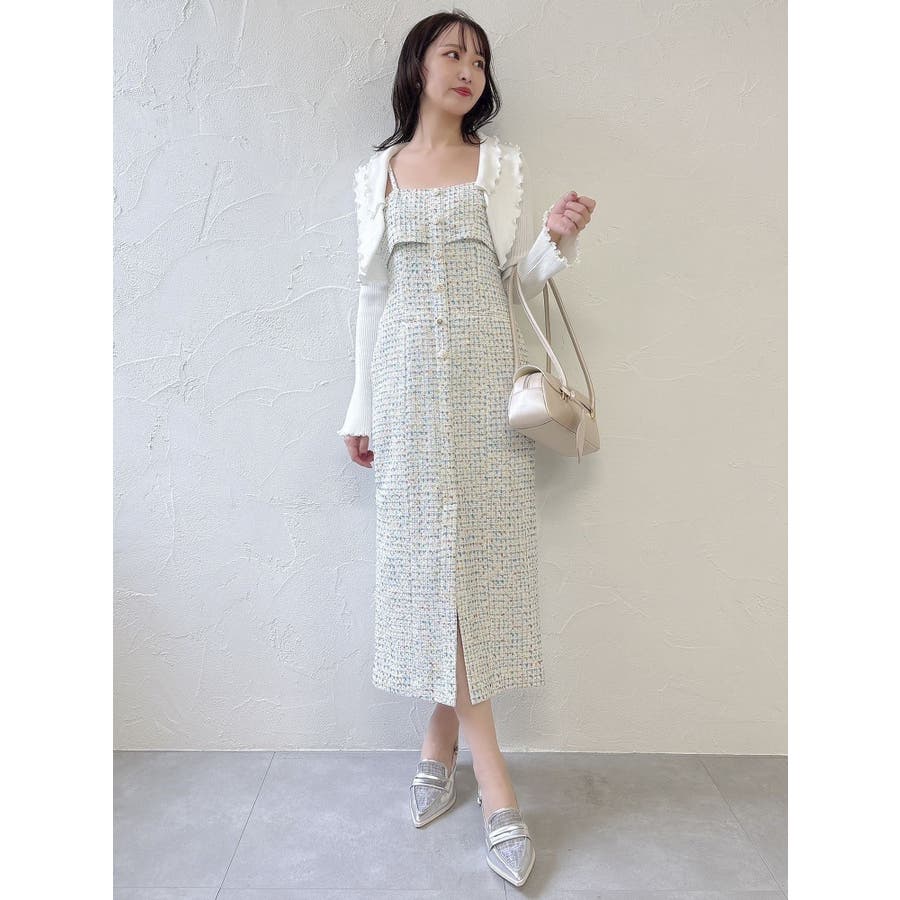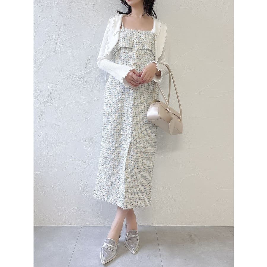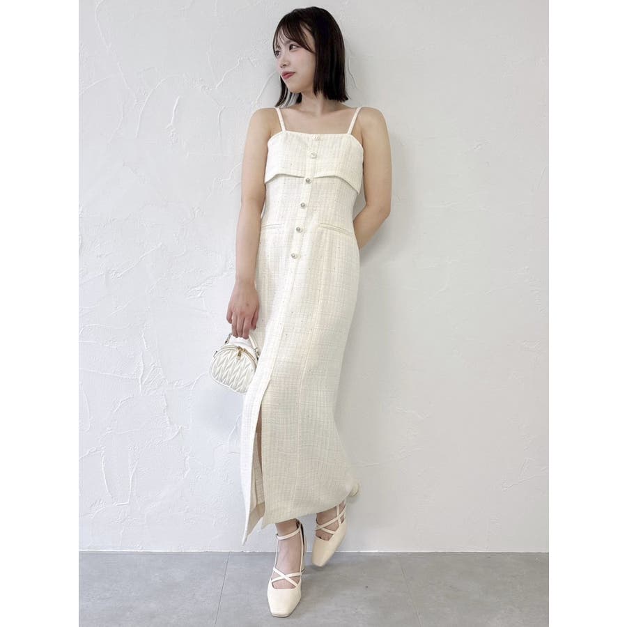 【セットアップ対応】ツイードレイヤードIラインキャミワンピース