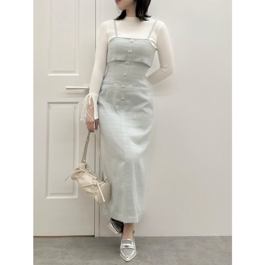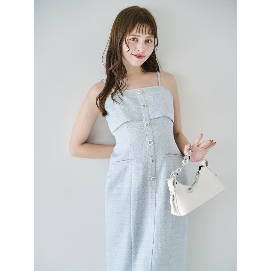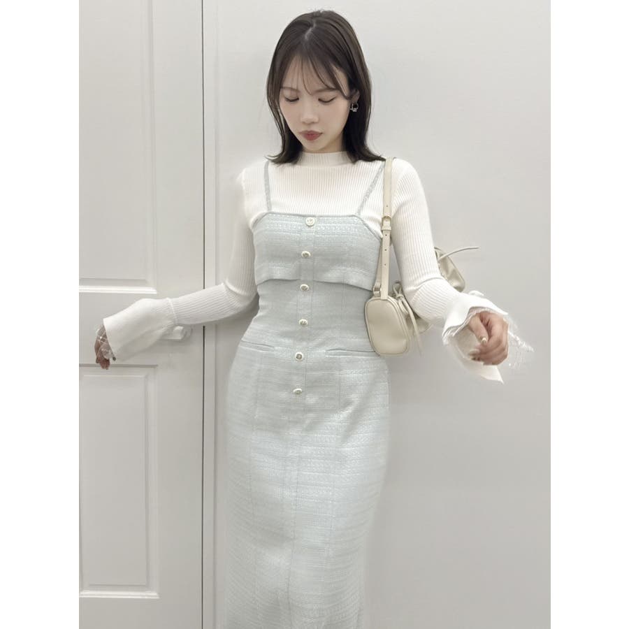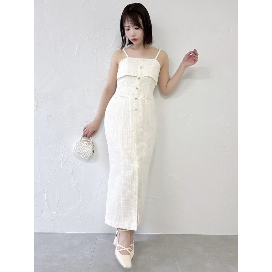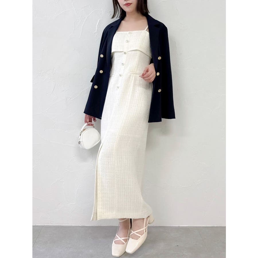 【セットアップ対応】ツイードレイヤードIラインキャミワンピース