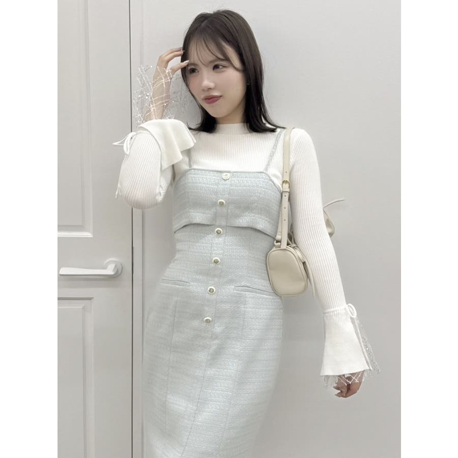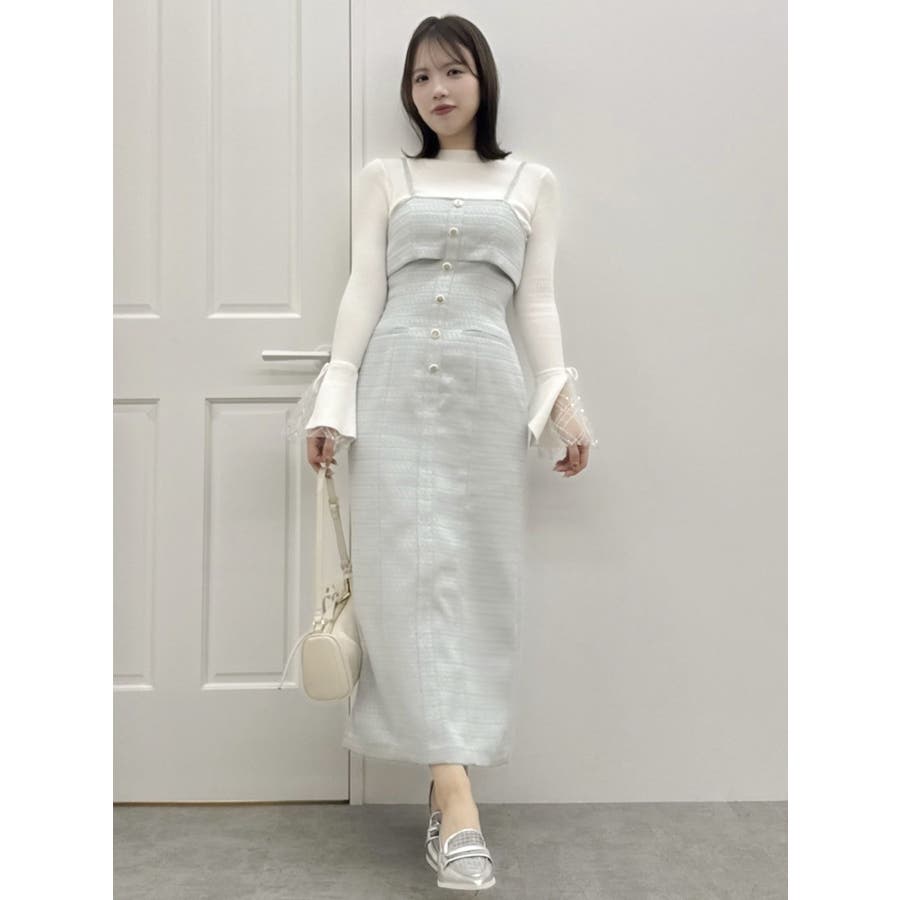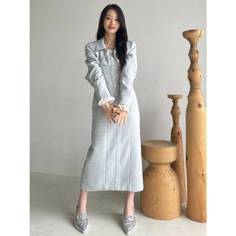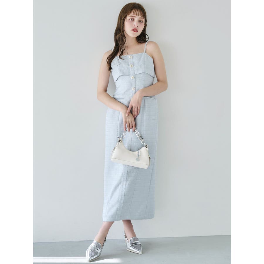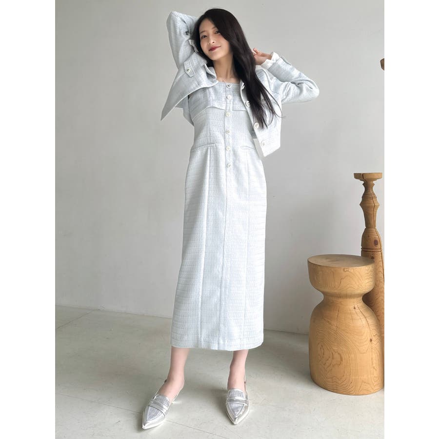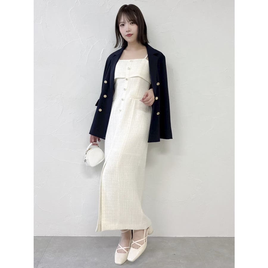 【セットアップ対応】ツイードレイヤードIラインキャミワンピース