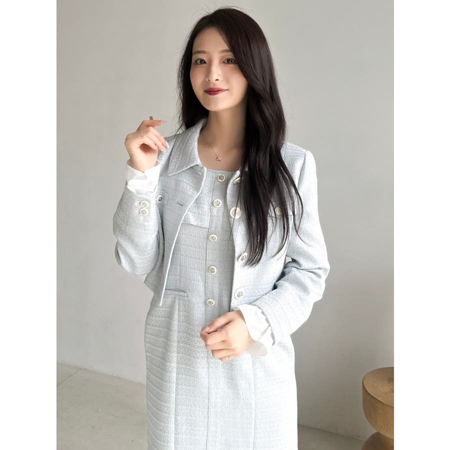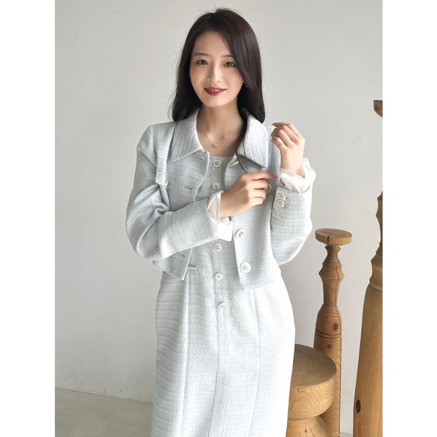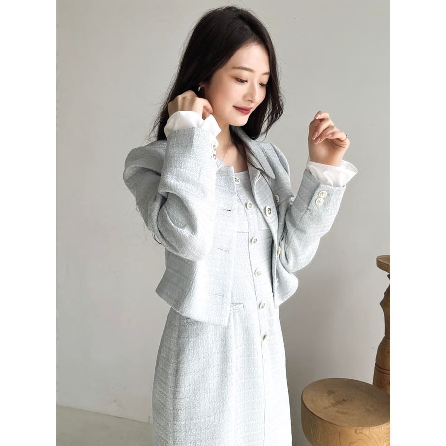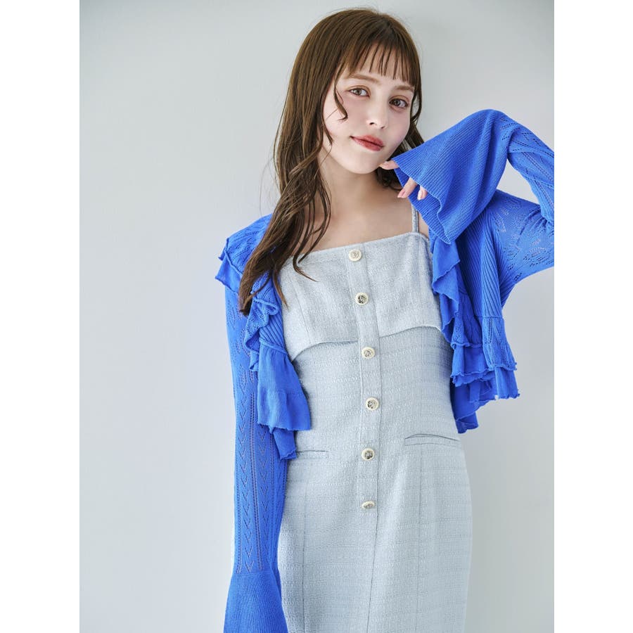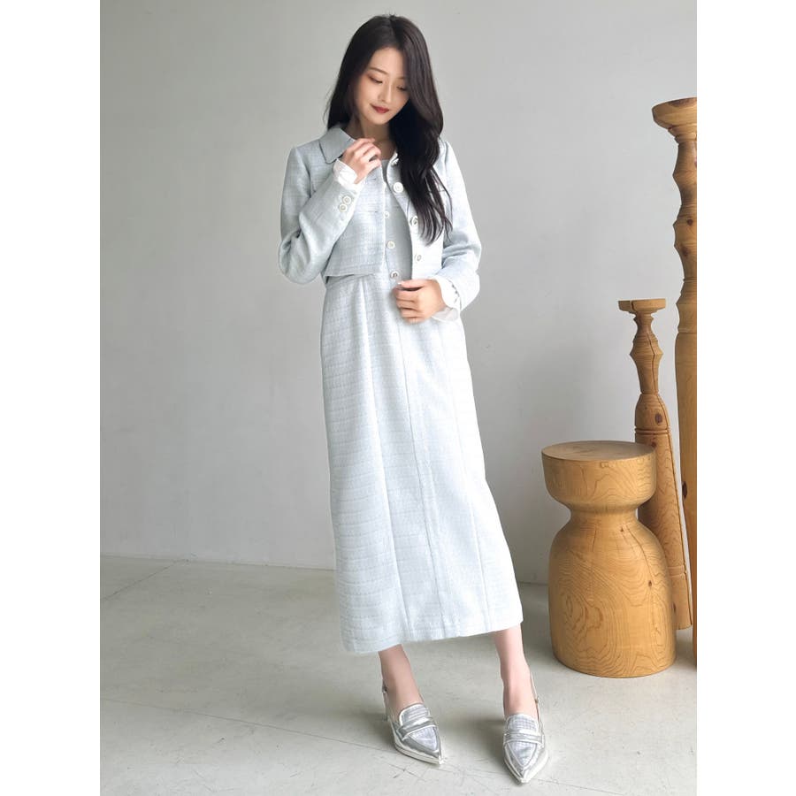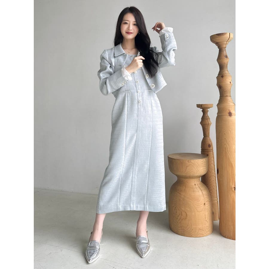 【セットアップ対応】ツイードレイヤードIラインキャミワンピース