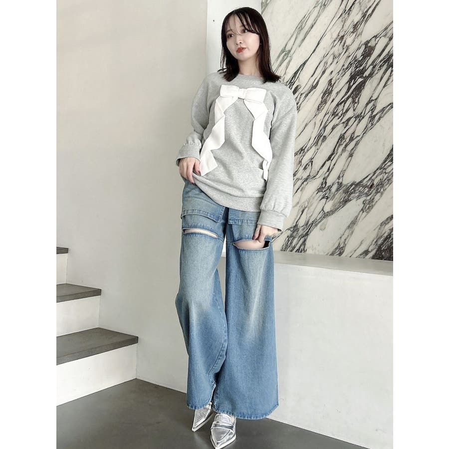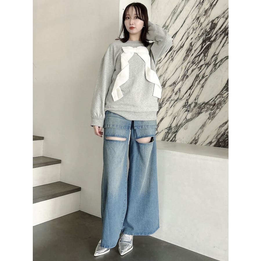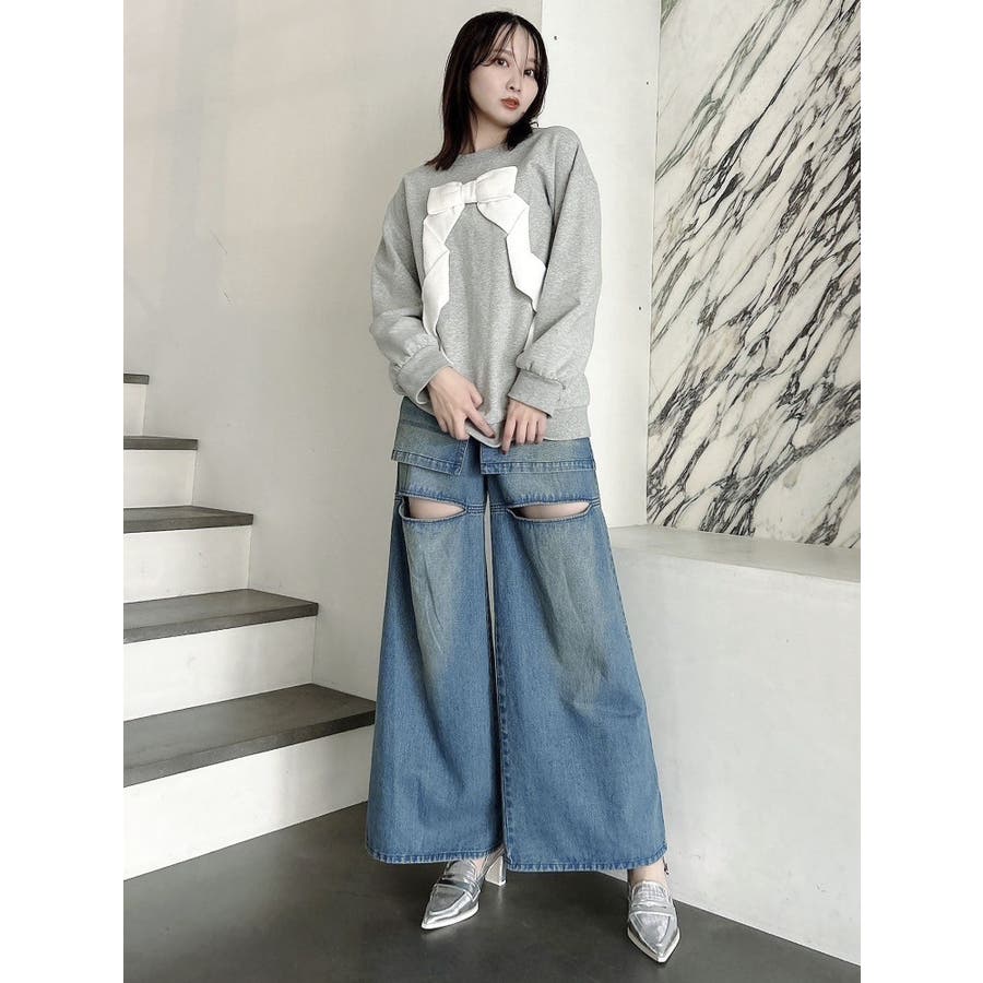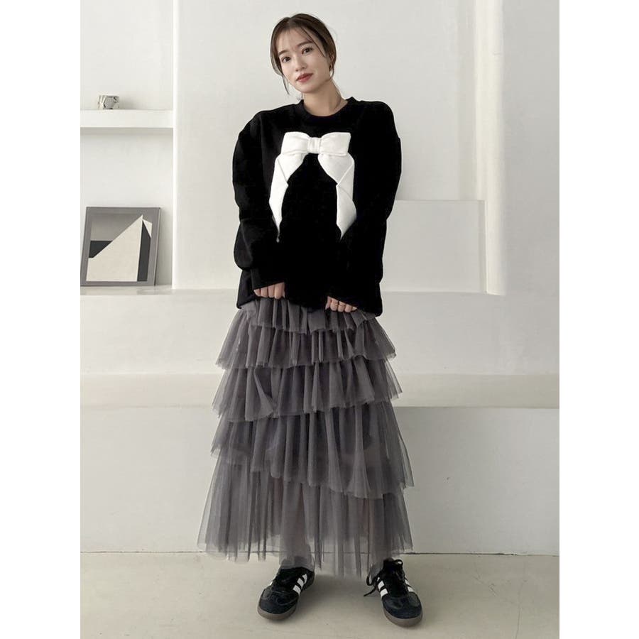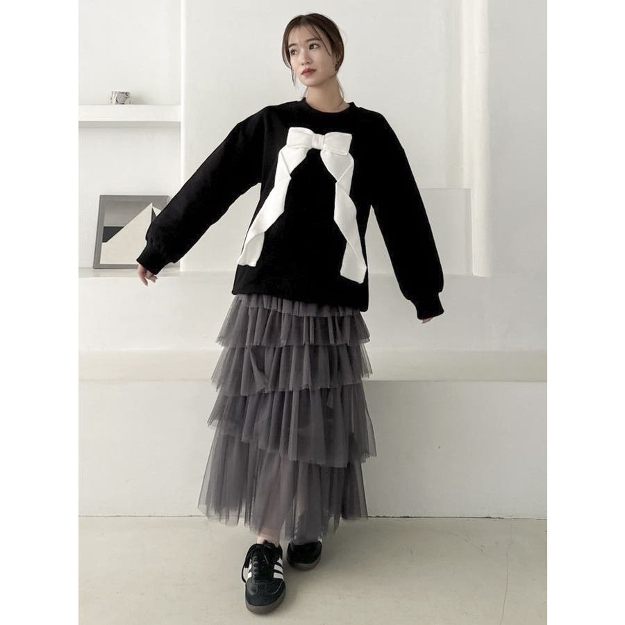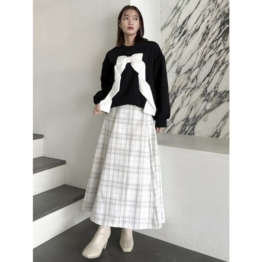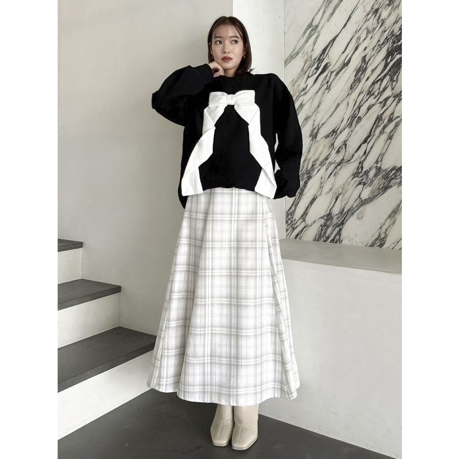 【商品】トレンドのリボンディテールを大胆にニットで表現した遊び心あふれる1枚。ボディは裏起毛のカットソー素材を使用することで、立体感のある構築的なシルエットを実現しながら保温性もプラスさせました。モノトーンなカラバリで大人っぽく韓国ライクな装いに。【スタイリング】ショートボトムスをちらみせさせたスタイリングが今っぽくおすすめ。シャツをレイヤードさせたり、ソックスやタイツを合わせたりすると甘さが抑えられ、プレッピームードなスタイリングにも昇華します。