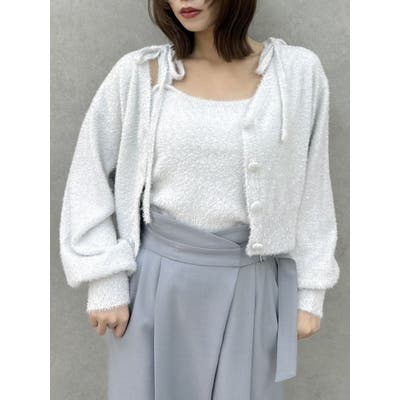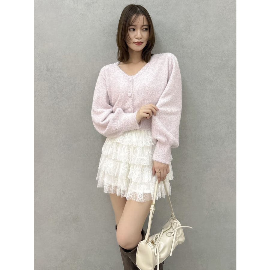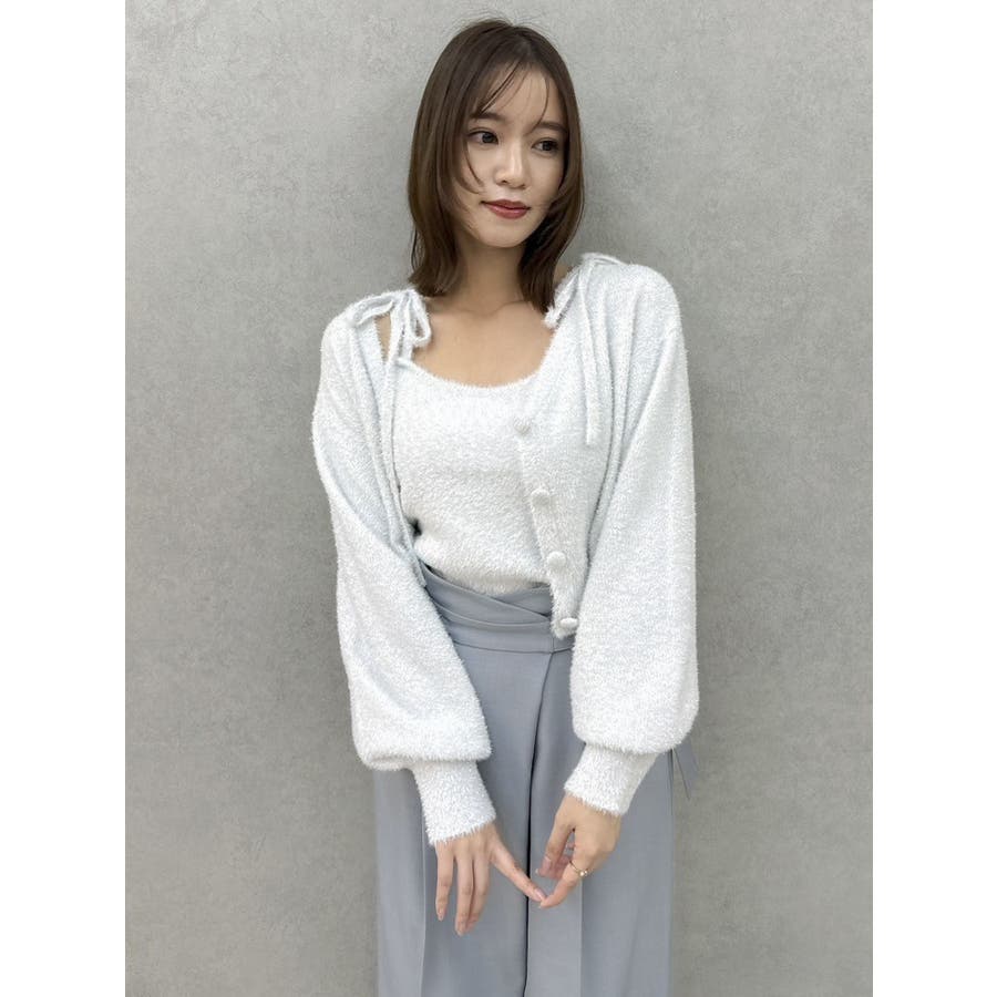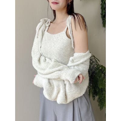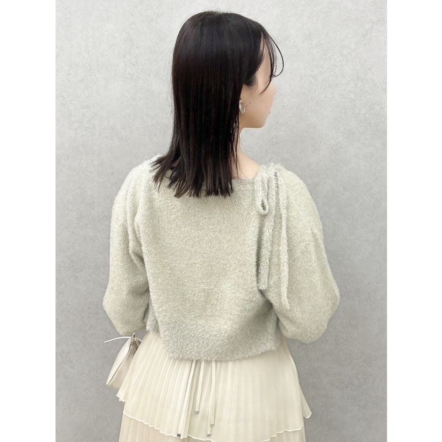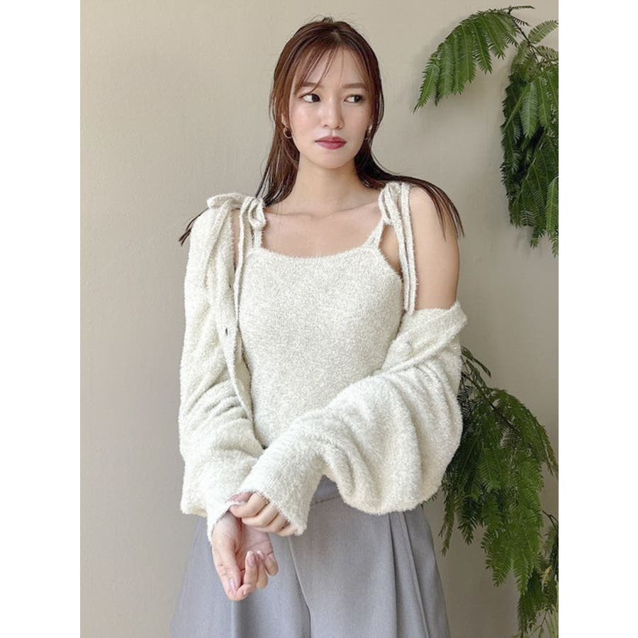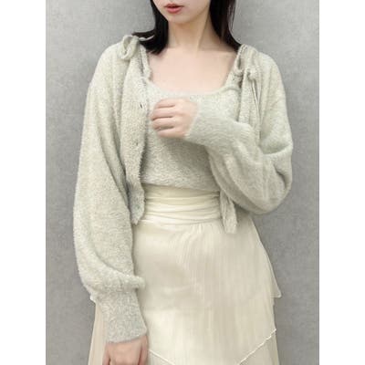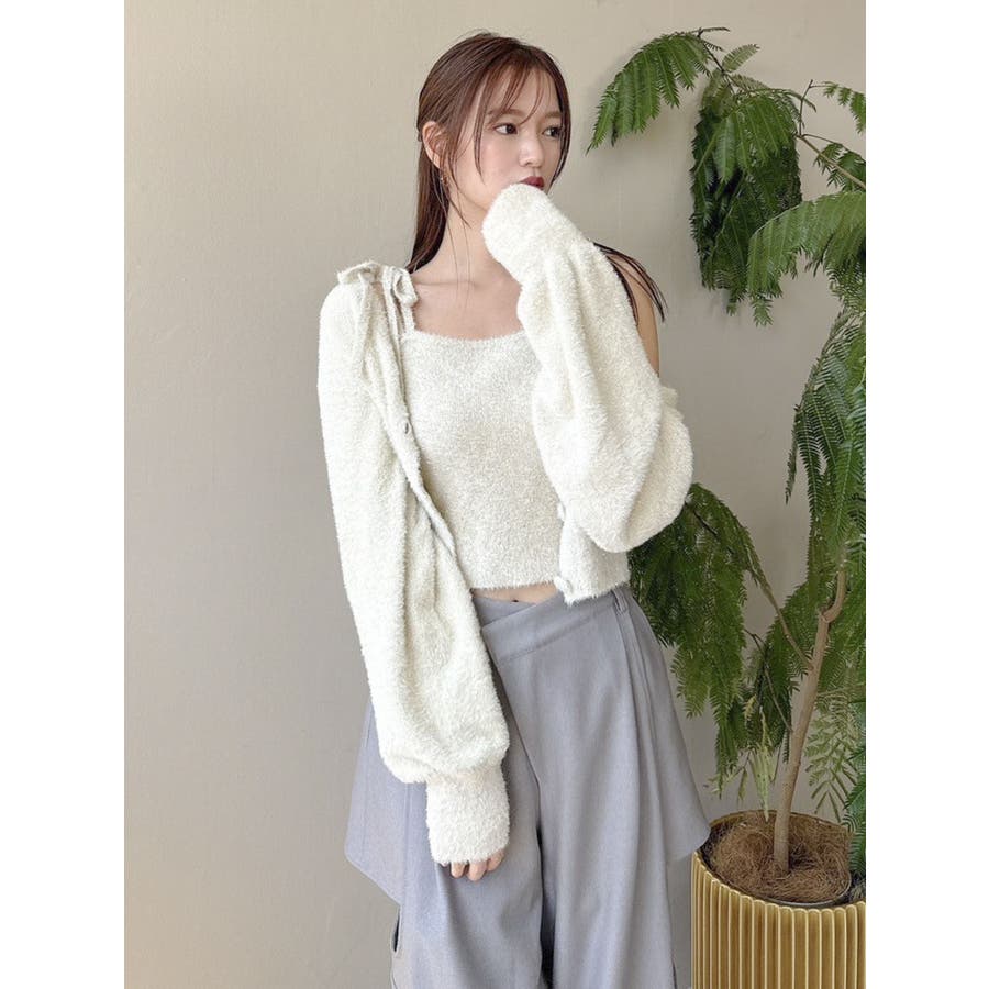 【商品】柔らかな毛足の糸を使ってフェミニンに仕上げ、1枚で主役級の華やかさをプラスします。ショート丈なので、手軽に羽織りやすくしわにもなりづらいので持ち運びにもおすすめ。温かみのある雰囲気を演出します。【スタイリング】同素材キャミで着こなすアンサンブルスタイル合わせがおすすめです。ワンピースに羽織ったりと着方も多彩です。