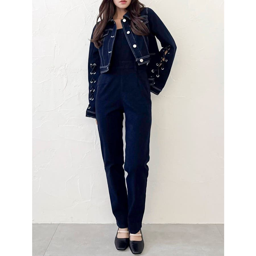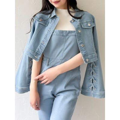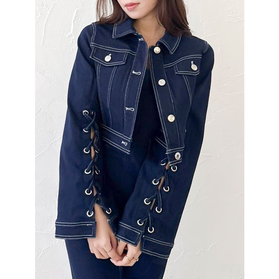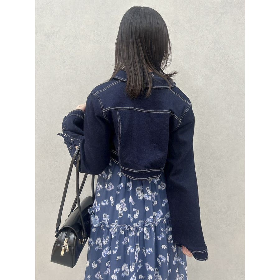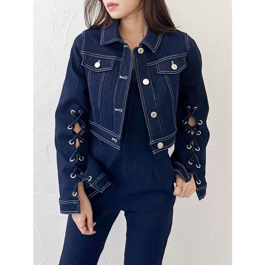 【商品】※量産時、袖のレースアップ部分の裾にスリットが入ります。クロップド丈でスタイルアップを約束するジャケット。短丈は存在感が強くなりすぎるのを防いでくれるのでインナーアイテムを引き立ててくれます。柔らかさのあるデニム生地を使用しており、体に優しくフィットします。【スタイリング】同素材のサロペットを合わせてSETUPスタイルに。また袖のレースアップがポイントなので、シンプルなアイテムを合わせてバランスをとるのもおすすめです。