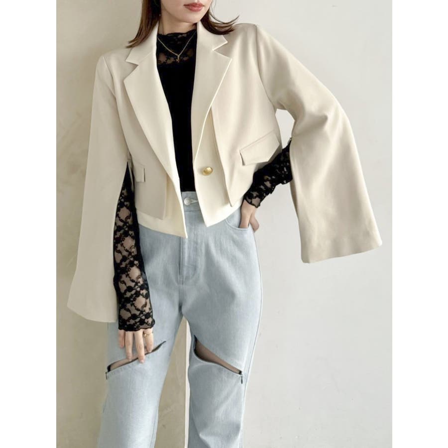 【セットアップ対応】レイヤードライクショートジャケット