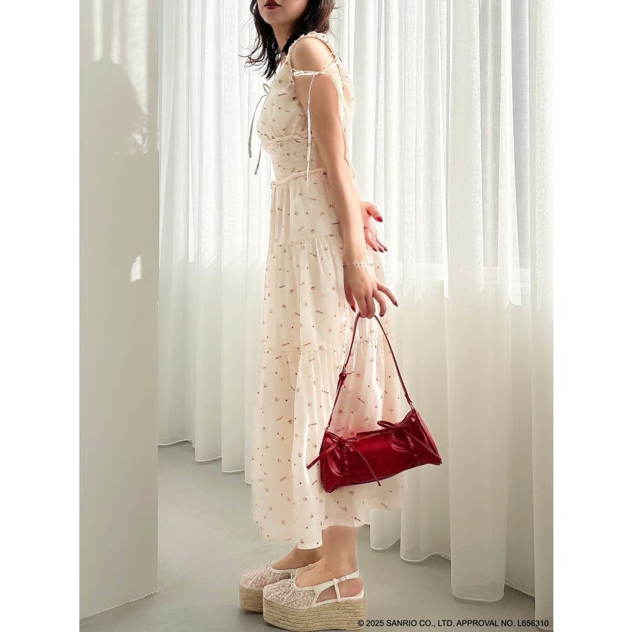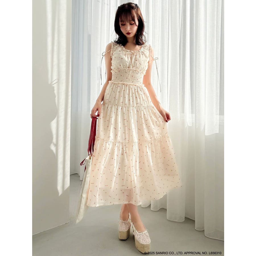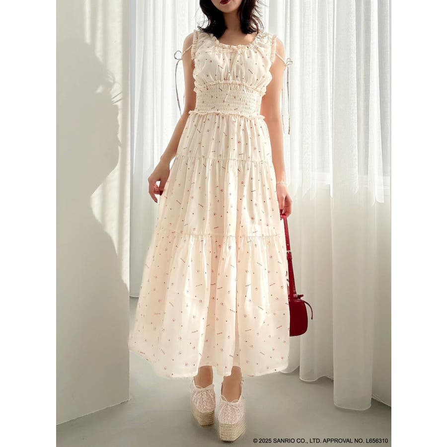 【アイテム】 マイメロディモチーフとブランドロゴを組み合わせたオリジナル柄をオーガンジーにプリントし、他にはない特別感満載のワンピースが完成しました。 ウエストシャーリングゴムでフィット&フレアシルエットを形成します。マイメロディのような女の子らしい愛らしさを表現しながらスタイルアップも叶うワンピースです? 【スタイリング】羽織はニットカーディガンできれいめな合わせの他、デニムのジャケットやオーバーシャツ等で甘辛MIXコーデも好相性でおすすめです。 ▼変更点 1 肩、袖ぐり部分細くなります。2 本生産時、ウエストフリルの上側が下向きに、下側が上向きになります。※詳細画像が正規の商品となります。 ※実際にお届けする商品と仕様やサイズが異なる場合がございます。 また生産の都合上、お届け時期が前後する場合がございます。 【 マイメロディ × クロミ × RUNWAY channel 】 あどけない表情と優しい心で、いつでもほがらかなマイメロディ。 自分の心に正直で、前に進む強さを教えてくれるクロミ。 それぞれの「かわいい」でみんなを笑顔にしてきたメロクロと、RUNWAY channelがスペシャルコラボ。 今年50周年を迎えるマイメロディと、20周年を迎えるクロミのアニバーサリーイヤーをRUNWAY channelの人気ブランドが祝います?・こちらの商品は5月上旬納期の【メロクロコラボ】商品以外と、同時にご注文いただくことはできません。※【メロクロコラボ】商品以外をカートに入れていただいた場合、カートごとにご注文番号が発行され、ご注文番号ごとに送料と決済手数料(代引き・後払いのみ)がかかります。・・【メロクロコラボ】商品以外の商品との同時決済はできません。