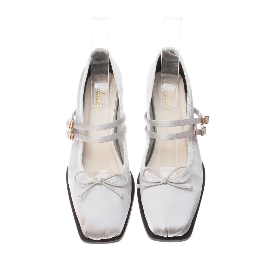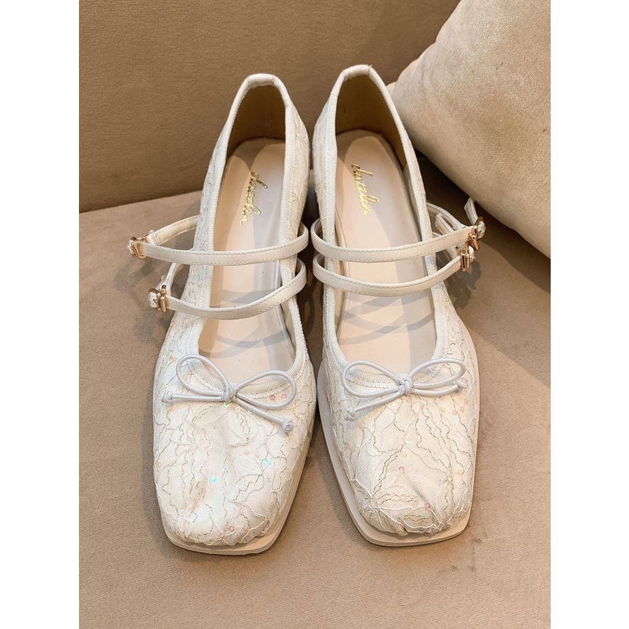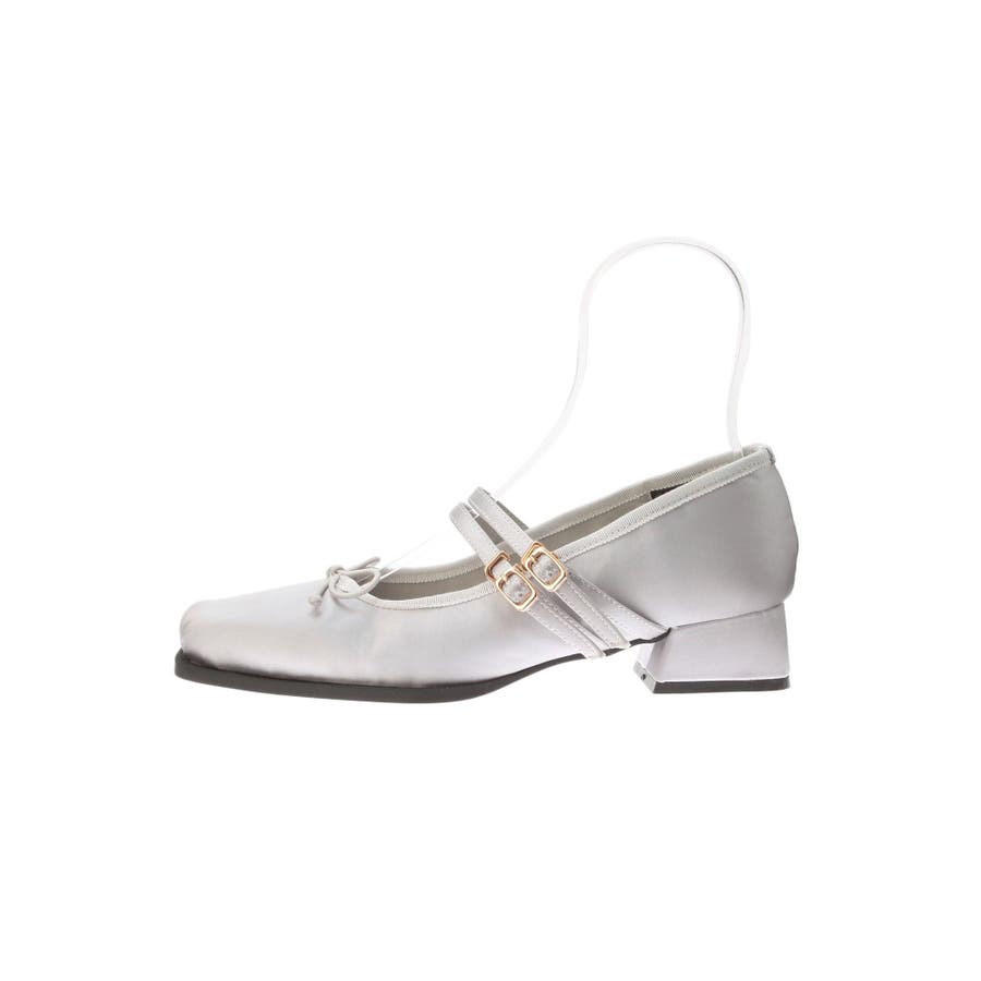 アッパーにストラップをあしらったバレエシューズをカジュアルダウンさせてモダンに仕上げました。 フィット感も向上し歩きやすさをフォローします。 華奢なリボンとスクエアトゥもおしゃれなアクセントをプラス。素足合わせからソックス、タイツ合わせまで多彩にスタイリング可能です。