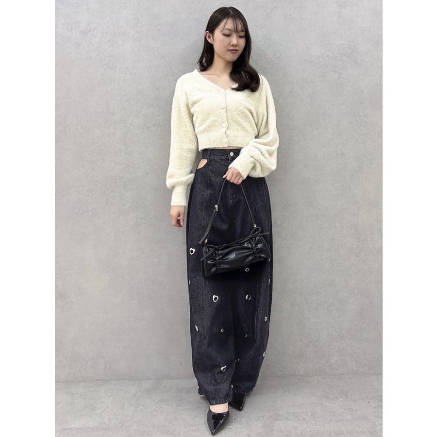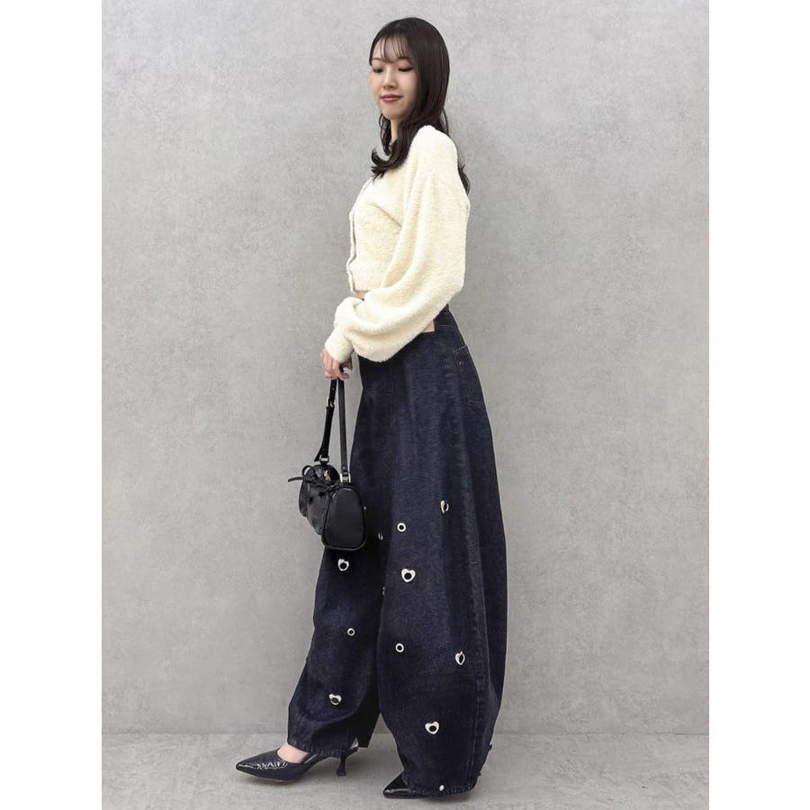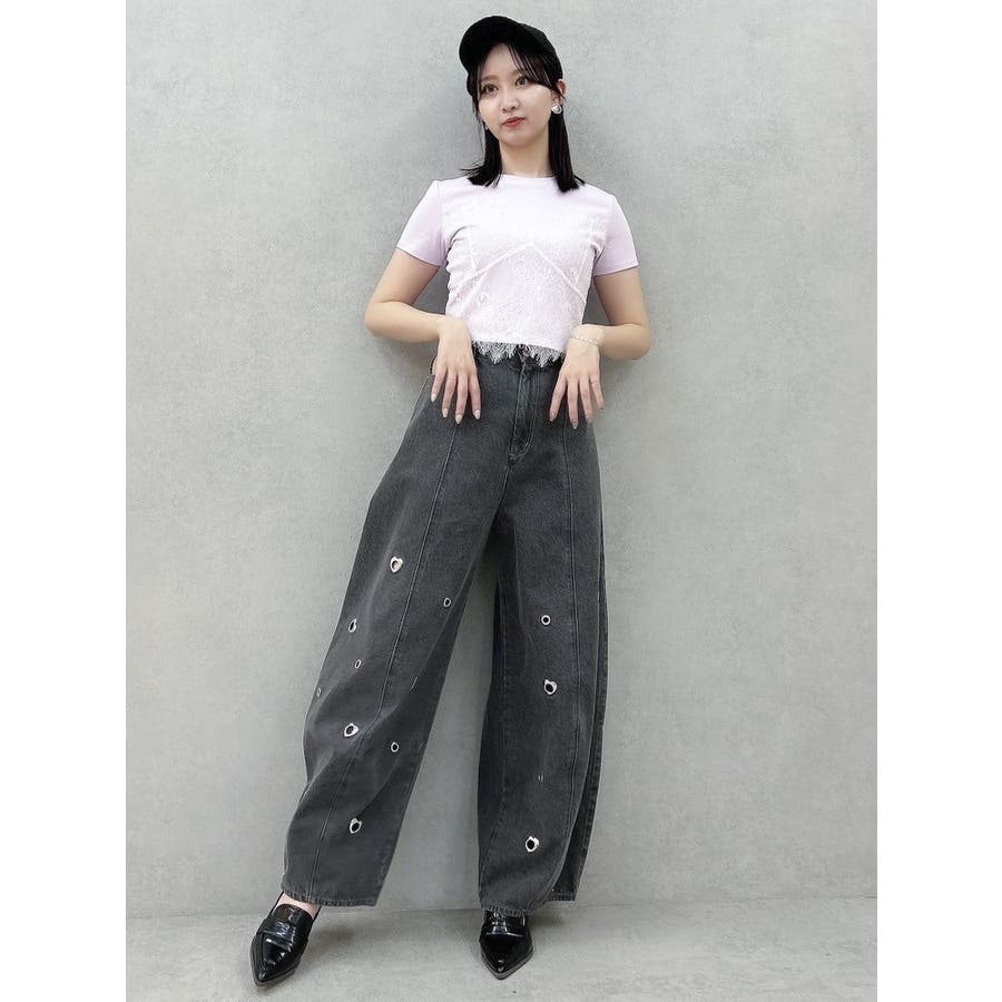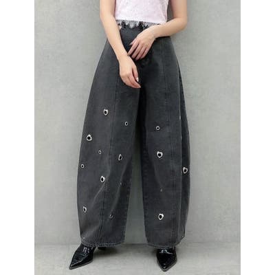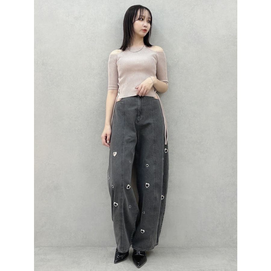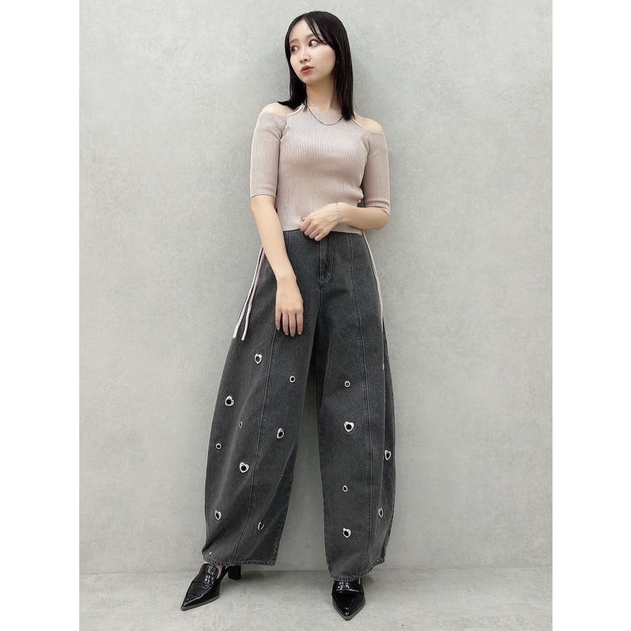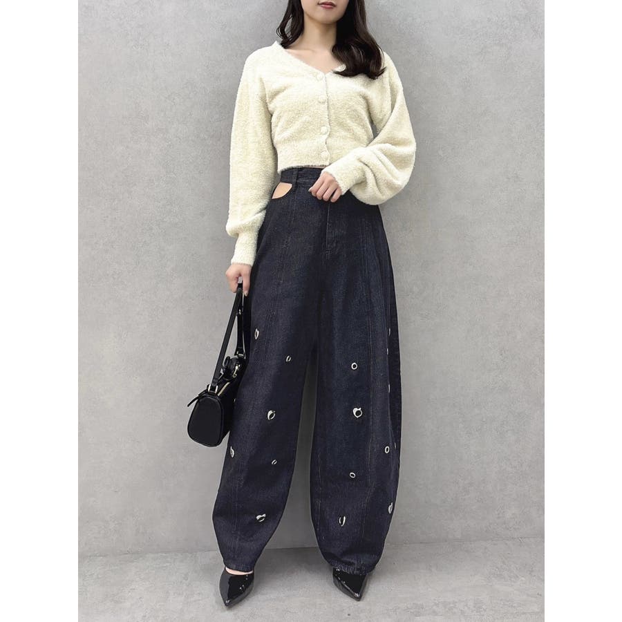※量産時、はと目の個数が増えます。※詳細画像が正規の商品となります。【商品】腰回りに開きを作り、抜け感を作って着やせポイントを作ります。カービーな弧を描く立体的なワイドストレートシルエットに仕上げたデザインで、メンズサイズをベルトでぎゅっと穿くのとはまた違った、女性らしいニュアンスのあるシルエットが魅力。裾のスナップは取り外し可能でカーブ具合を調整できるようになっております。はとめのデザインが遊び心をプラス。【スタイリング】コンパクトアイテムとの組み合わせがおすすめです。肌を出したアイテムを合わせると女性らしさを際立たせてフェミニンに。ルーズなオーバーシャツ合わせなどもこなれた印象になります。