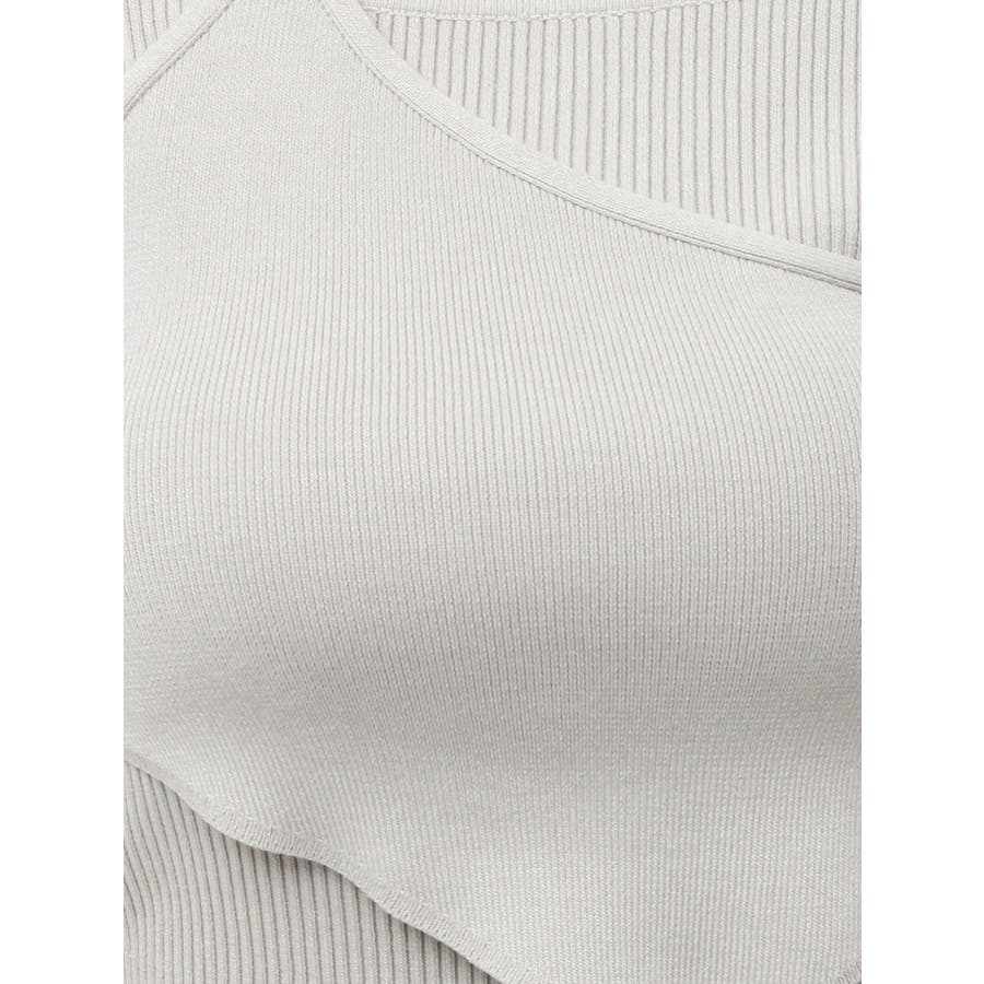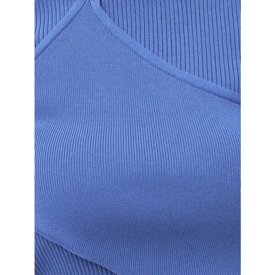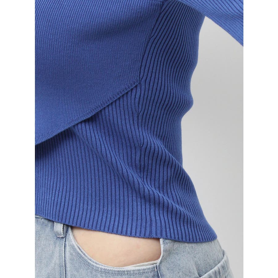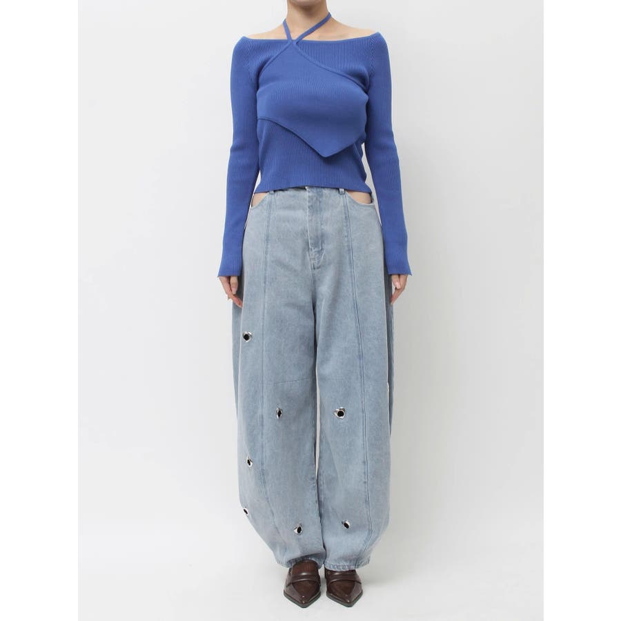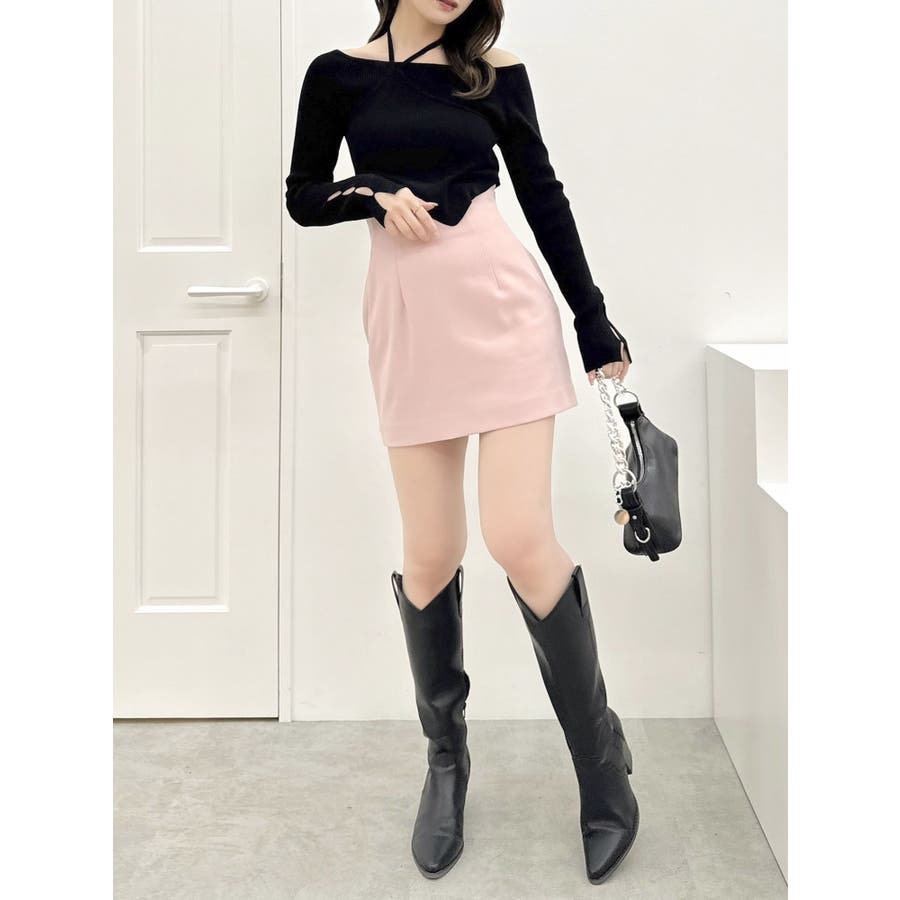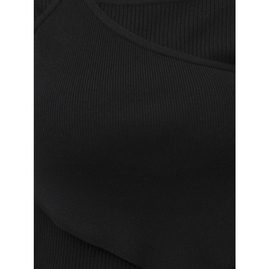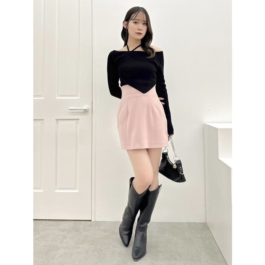 【商品】レイヤードしたデザインでシャープさを演出。身頃部分はリブ編みでボディラインをコンパクトに仕上げます。細目のストラップでネックラインはシャープに見せて華奢見えを叶えます。【スタイリング】デニムパンツを合わせたアウトスタイリングがおすすめ。内側のリブ部分をInしてタイトにまとめて着るとすっきりします。