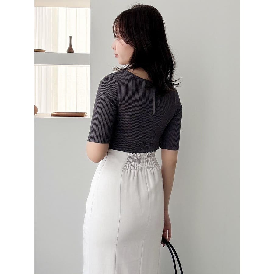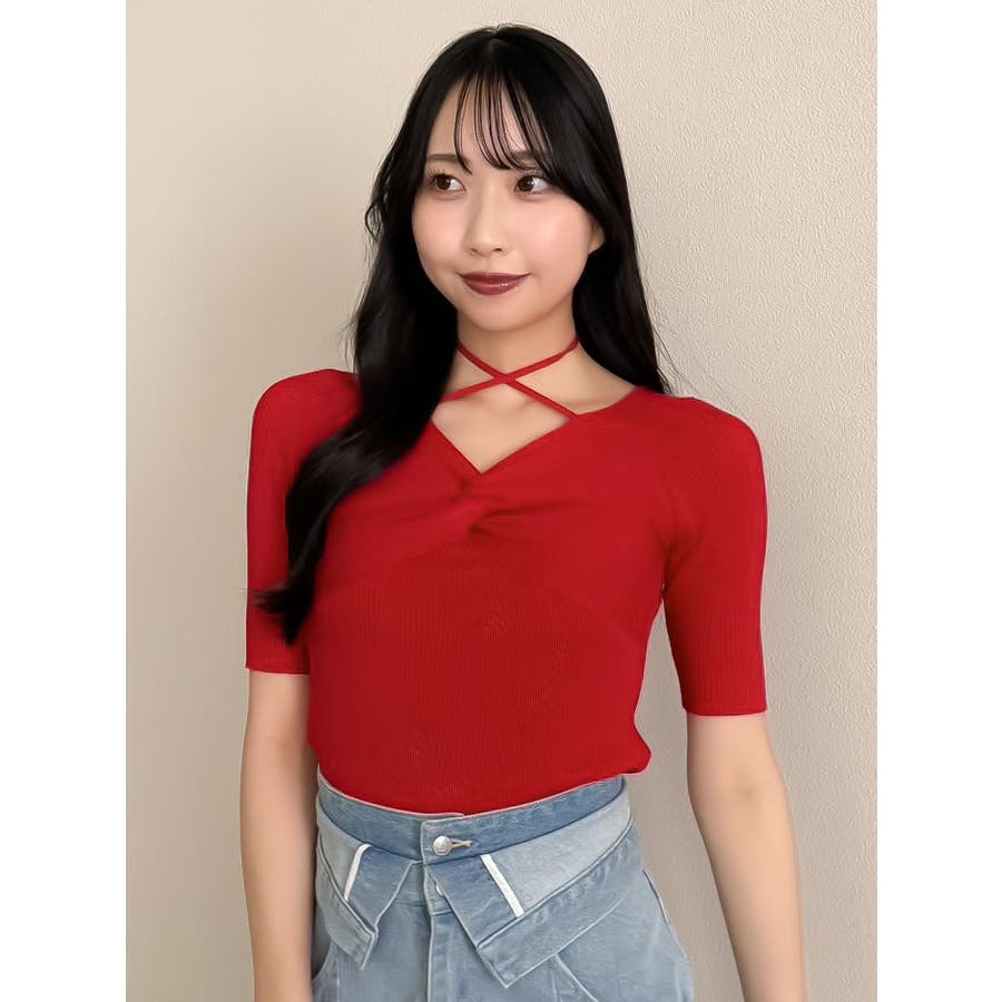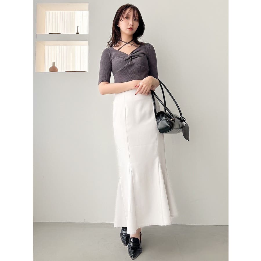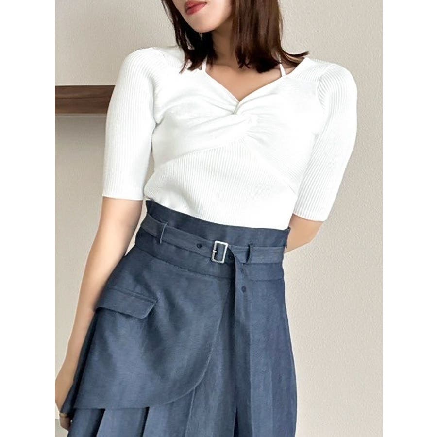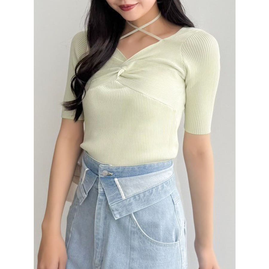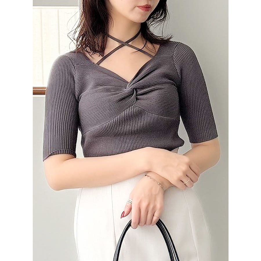 【商品】ホルターネックのディテールのような首元デザインが特徴的なアイテム。リブ編みで体のラインに沿ったシルエットを作り出してくれます。胸元のツイストデザインがバスト部分を立体的にメイク。【スタイリング】マーメイドスカートとの相性が女性らしく着こなせておすすめです。ミニスカート合わせでのスタイリングとも好相性。※実際にお届けする商品と仕様やサイズが異なる場合がございます。また生産の都合上、お届け時期が前後する場合がございます。
