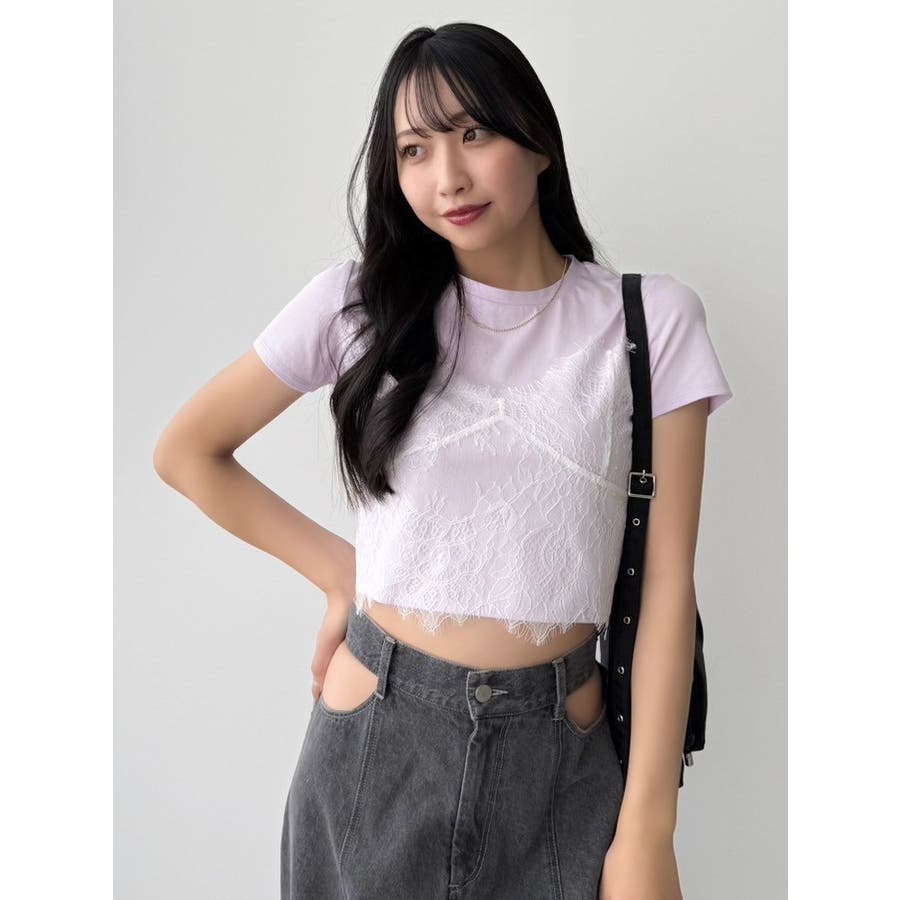 レースキャミレイヤードTシャツ