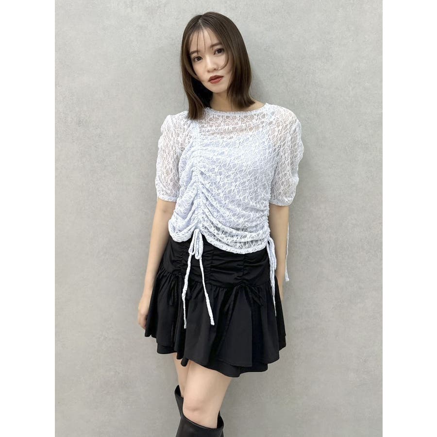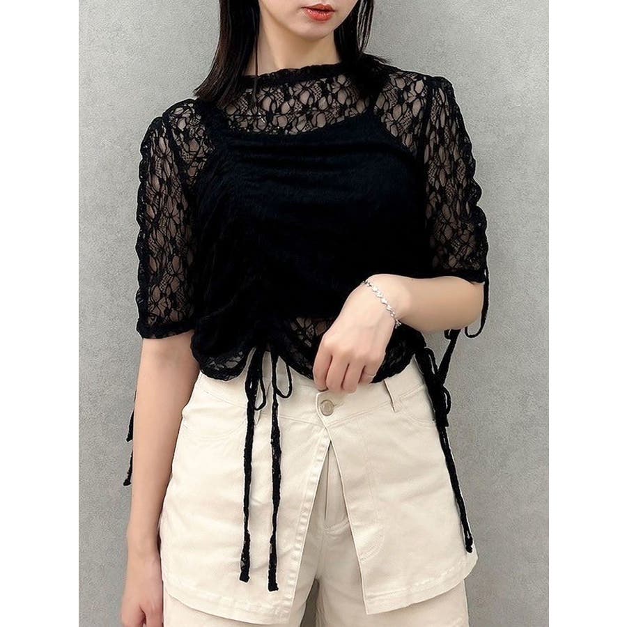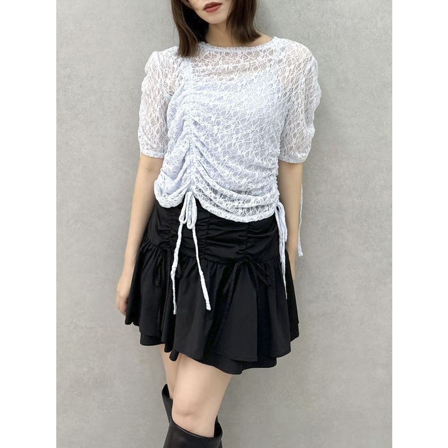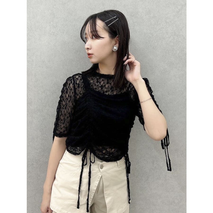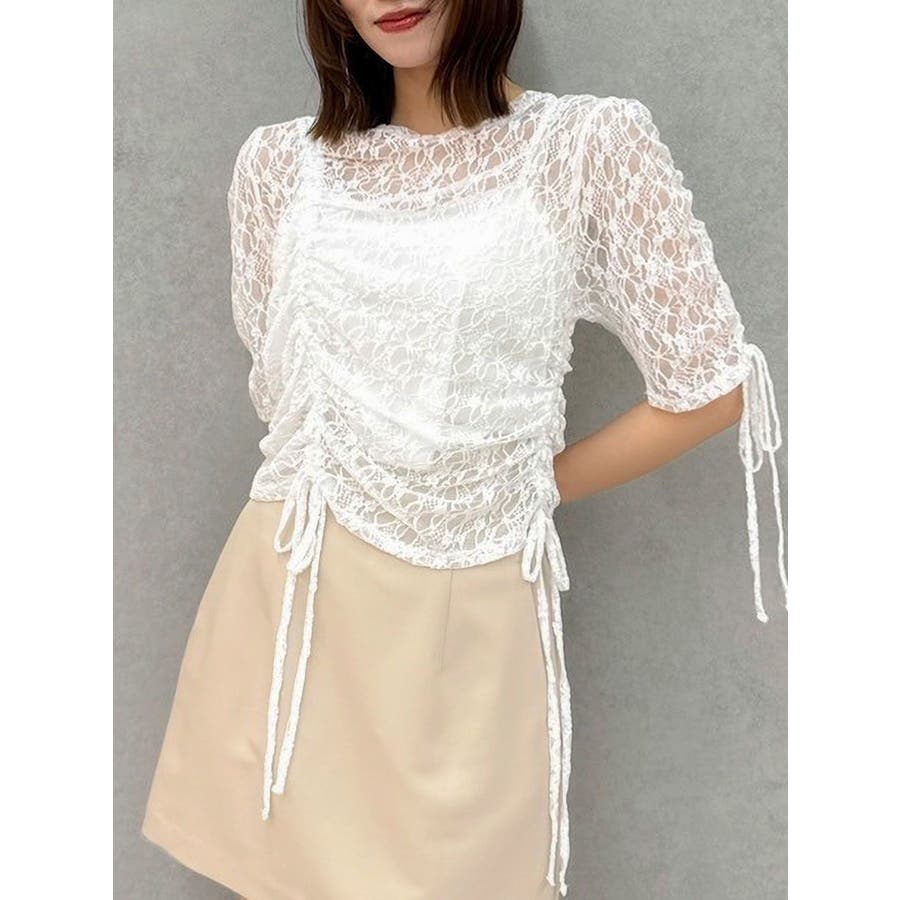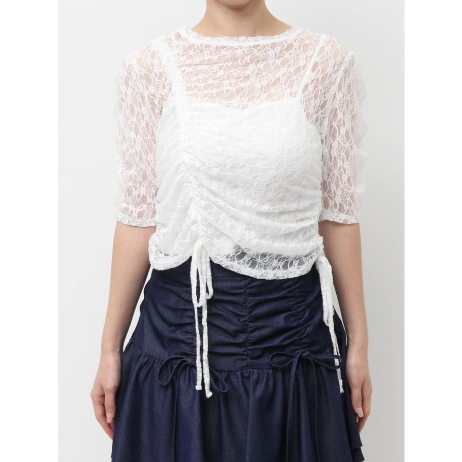 ギャザーリボンレーストップス