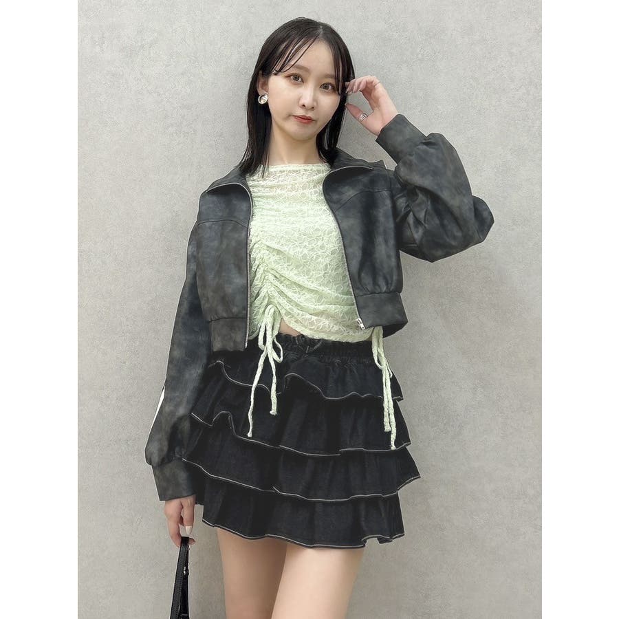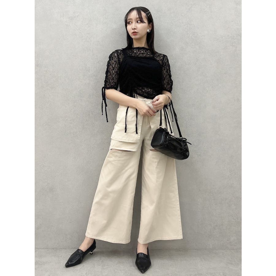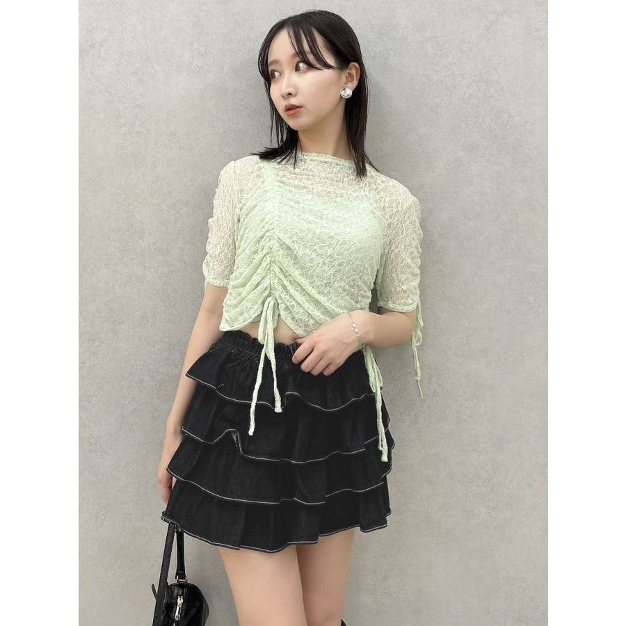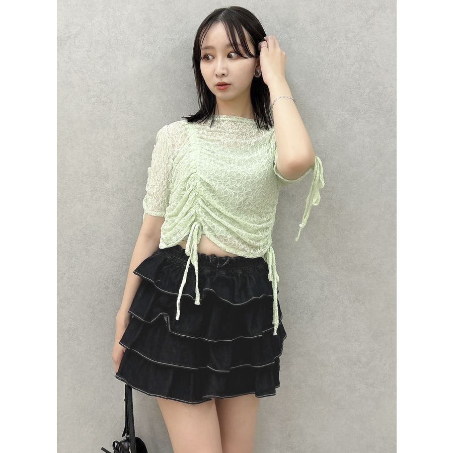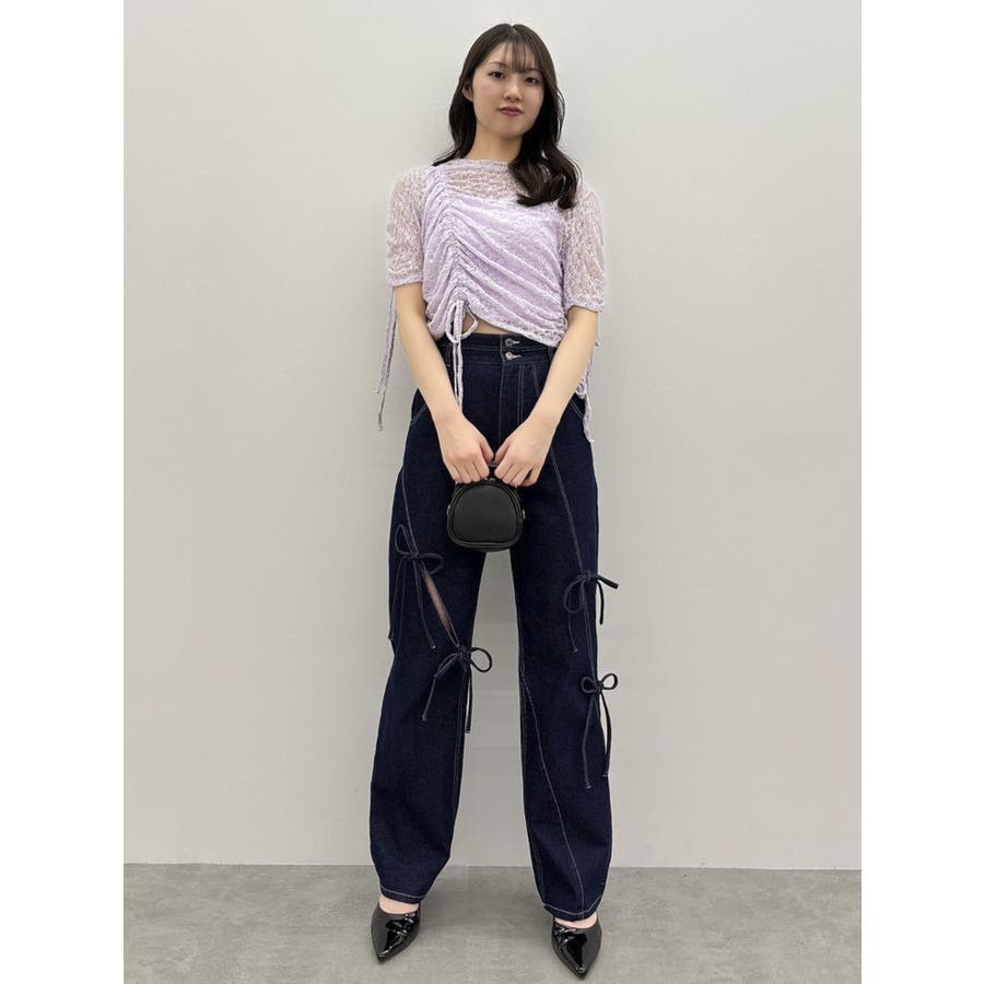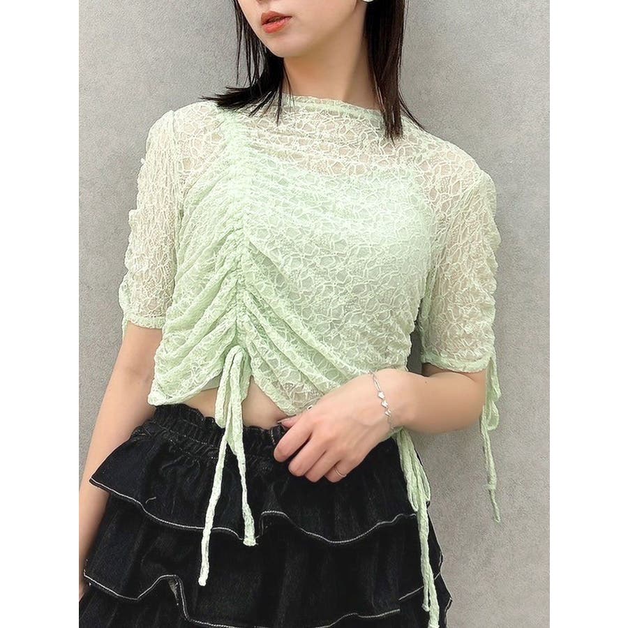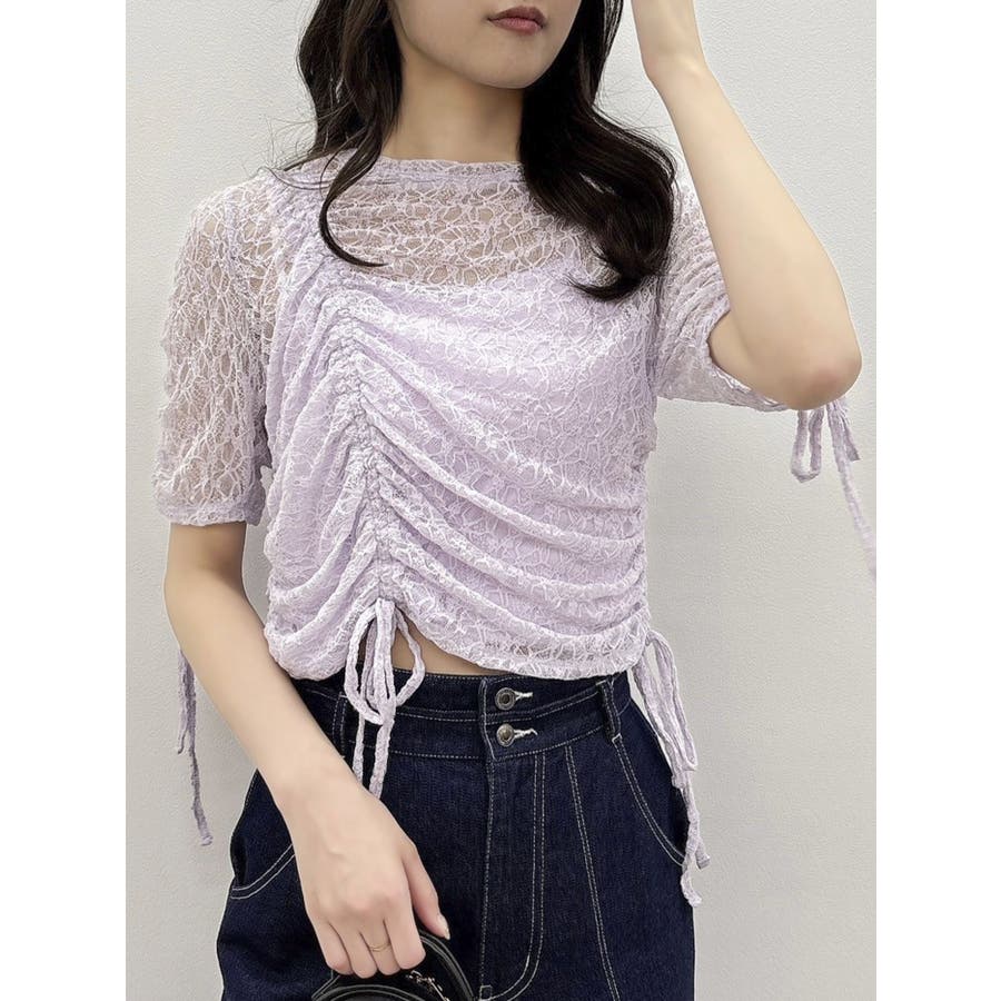 ギャザーリボンレーストップス