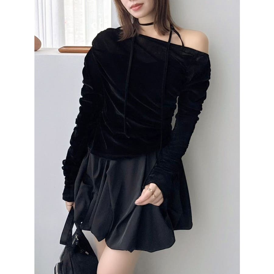 アシメギャザーシアーベロアカットソー