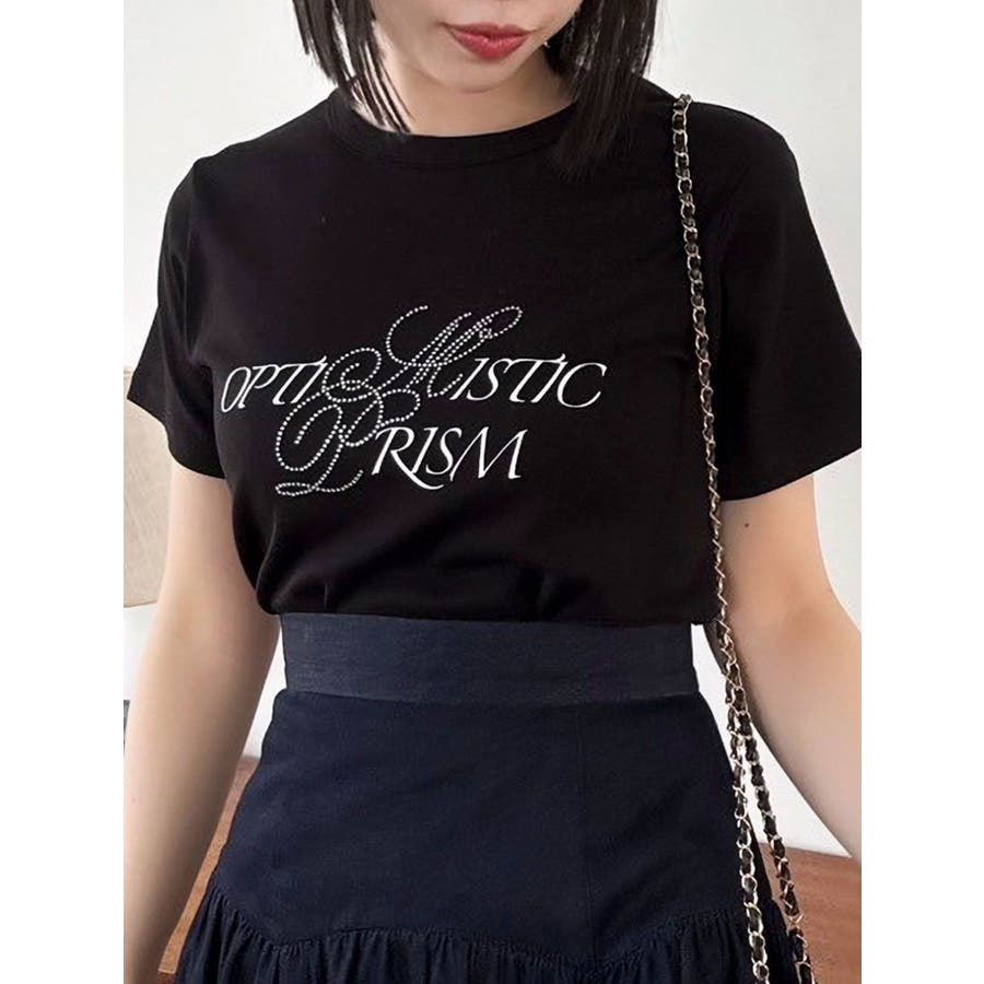 【商品】アートロゴにラインストーンを盛り込み、スタイリングを華やかにしてくれるデザインロゴTシャツです。フェミニンさんでも着やすいよう、キレイ目な生地でコンパクトにフィットさせ美シルエットに仕上げました。【スタイリング】ミニボトムとのコーデやIラインスカートなどベーシックからトレンドアイテムまで幅広く相性抜群です。デニムやカーゴパンツで韓国っぽい辛めのスタイルやスカートできれいめカジュアルなコーデにも。その日の気分で雰囲気を変えていただけます。※実際にお届けする商品と仕様やサイズが異なる場合がございます。また生産の都合上、お届け時期が前後する場合がございます。