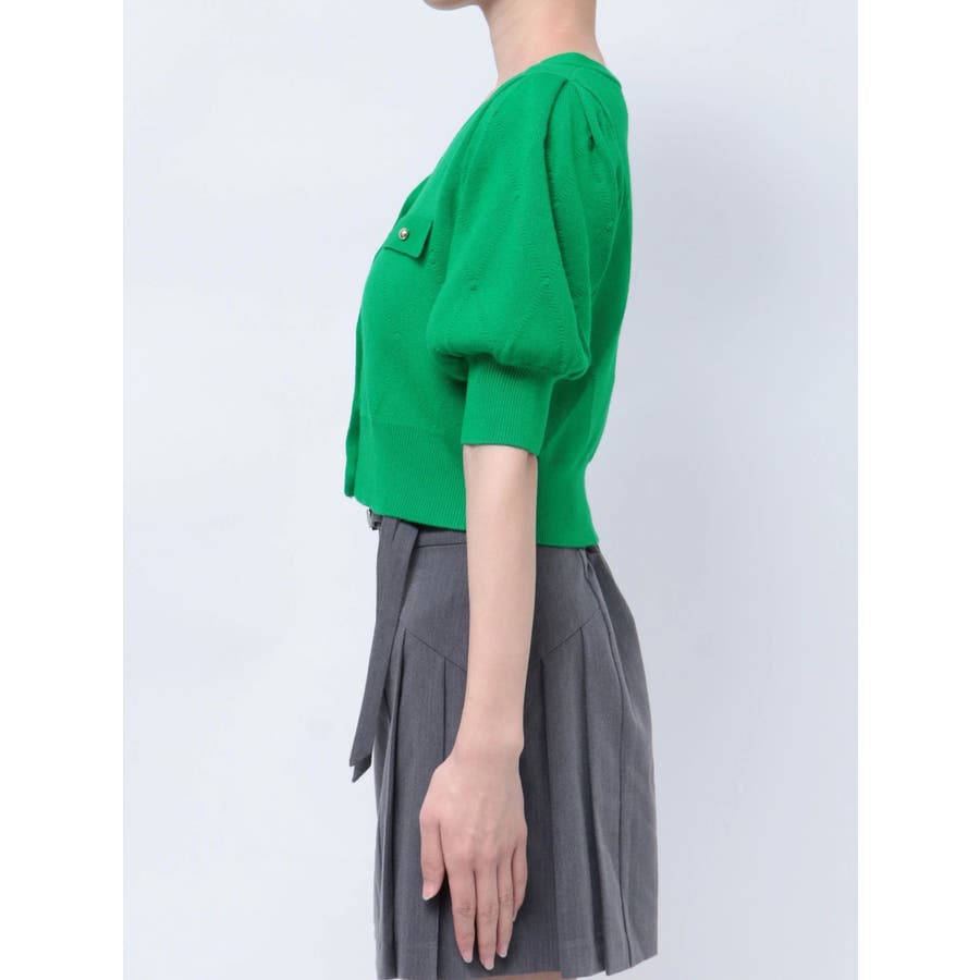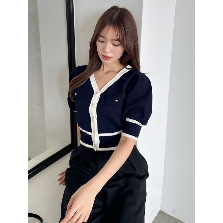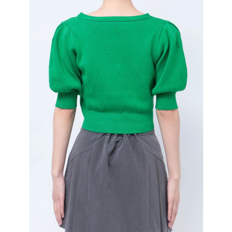 【商品】コンパクトなシルエットで袖ボリュームのデザインが構築的で今季らしさが高まります。軽さのある柔らかい糸を使っており着心地もとても良いのが特徴です。Vネックは今季のトレンド。シャープなネックラインを作り大人っぽさを加速させます。【スタイリング】ワイドパンツやボリュームスカートなどふわっとしたシルエットのアイテムが相性抜群です。ミニスカートなども可愛いです。※実際にお届けする商品と仕様やサイズが異なる場合がございます。 また生産の都合上、お届け時期が前後する場合がございます。