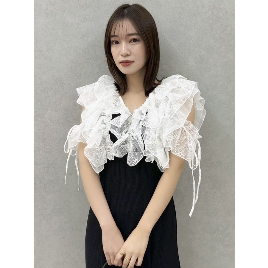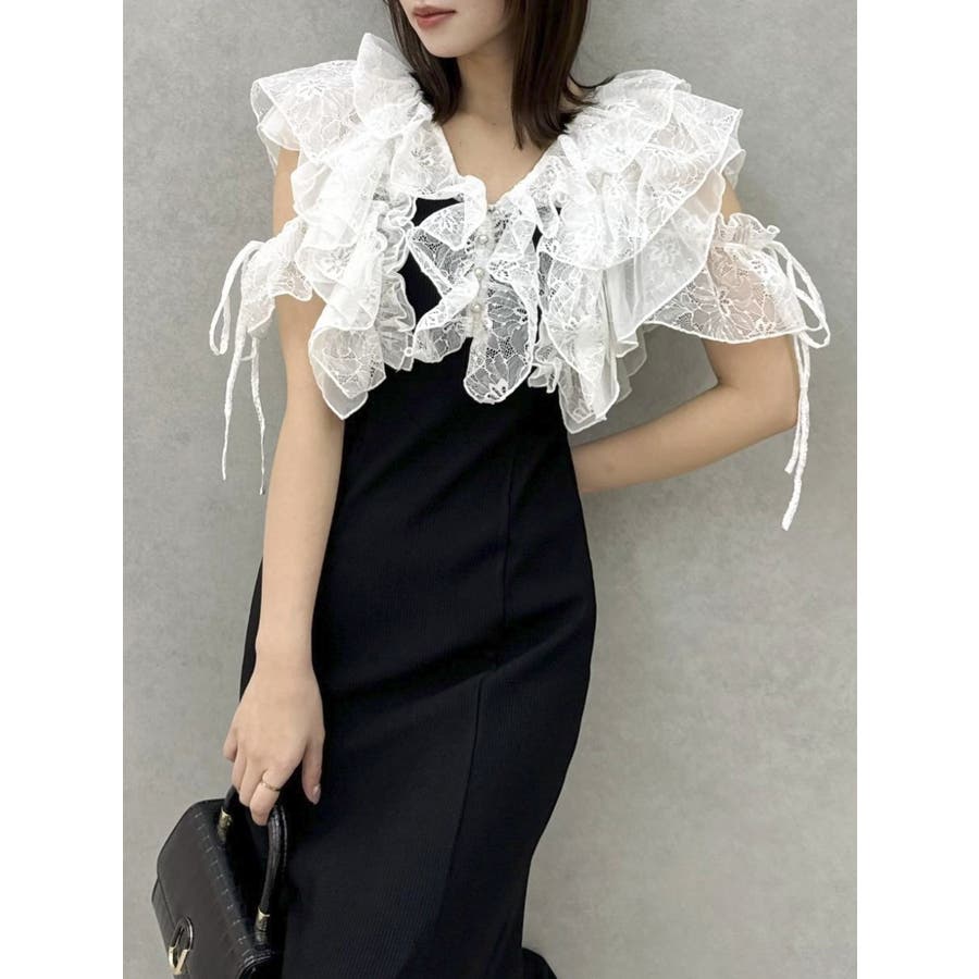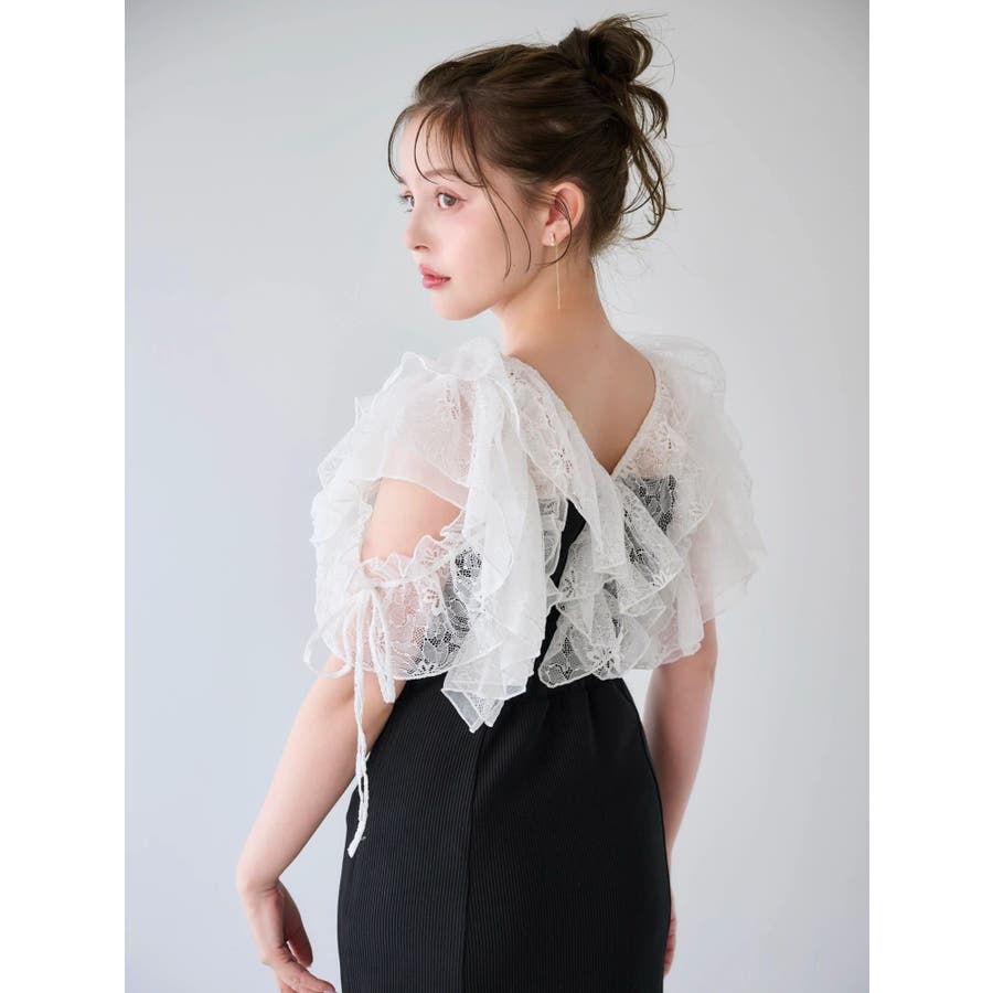 | 素材 | [アイボリー/ブラック]表地:ポリエステル98% ポリウレタン2% レース:ポリエステル100% チュール:ポリエステル100% 裏地:ポリエステル100% [グレー]表地:ポリエステル98% ポリウレタン2% チュール:ポリエステル100% 裏地:ポリエステル100% |